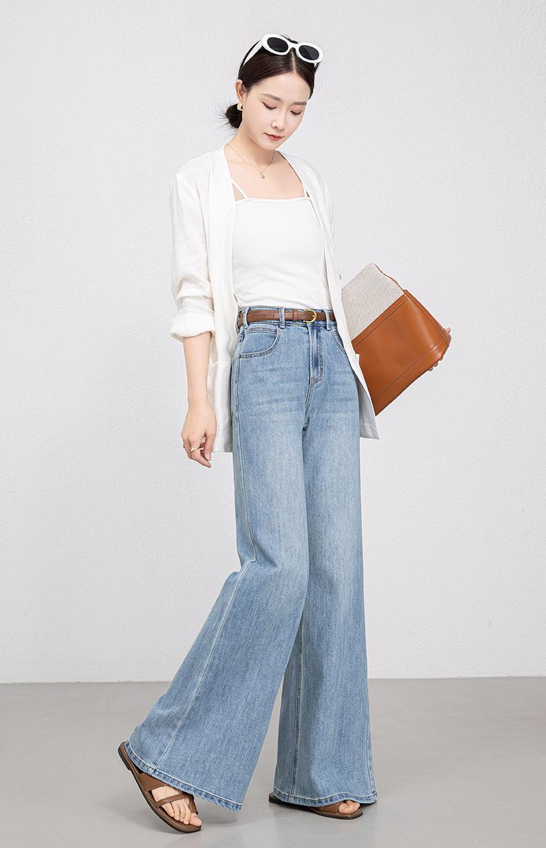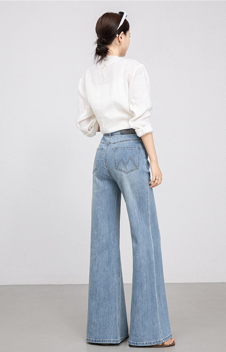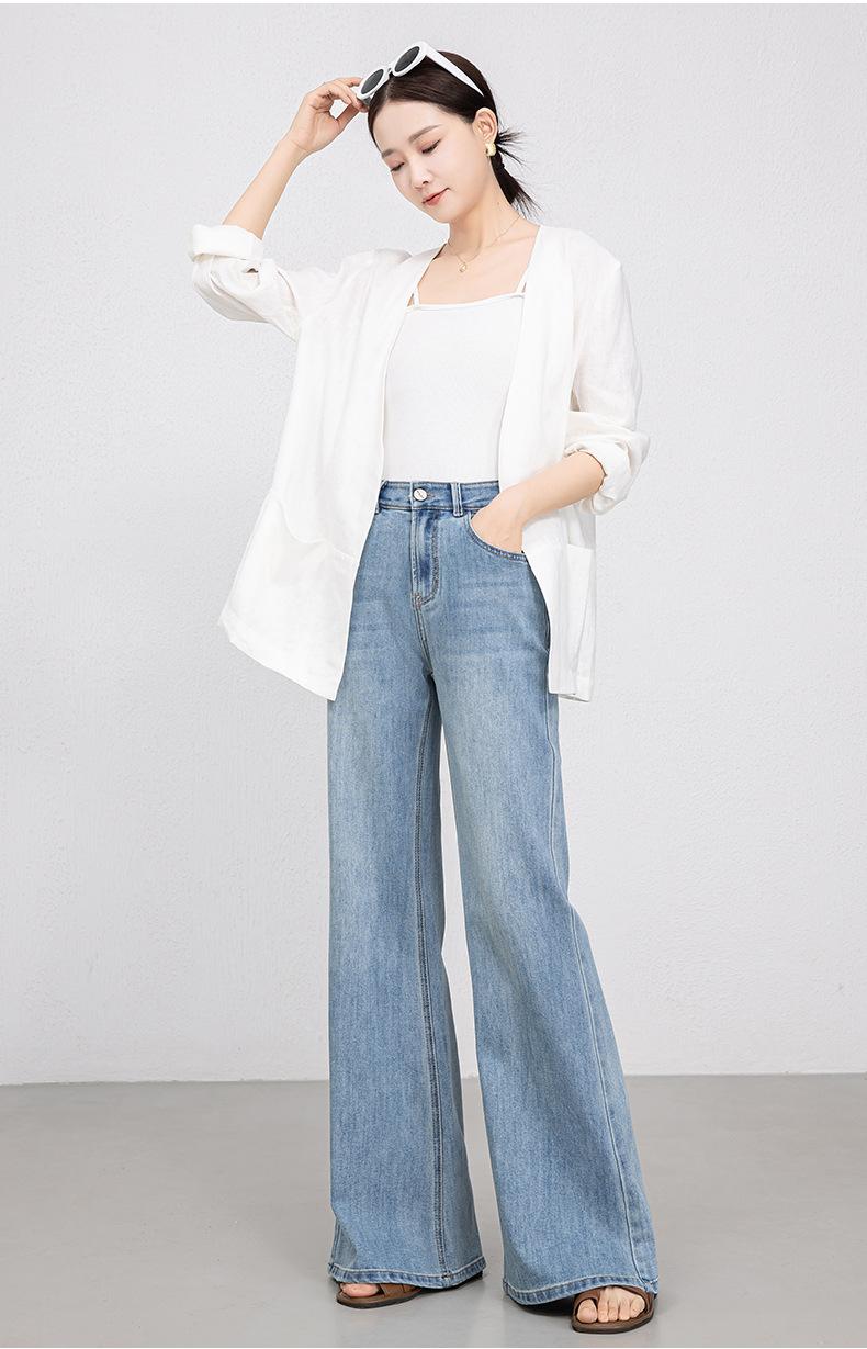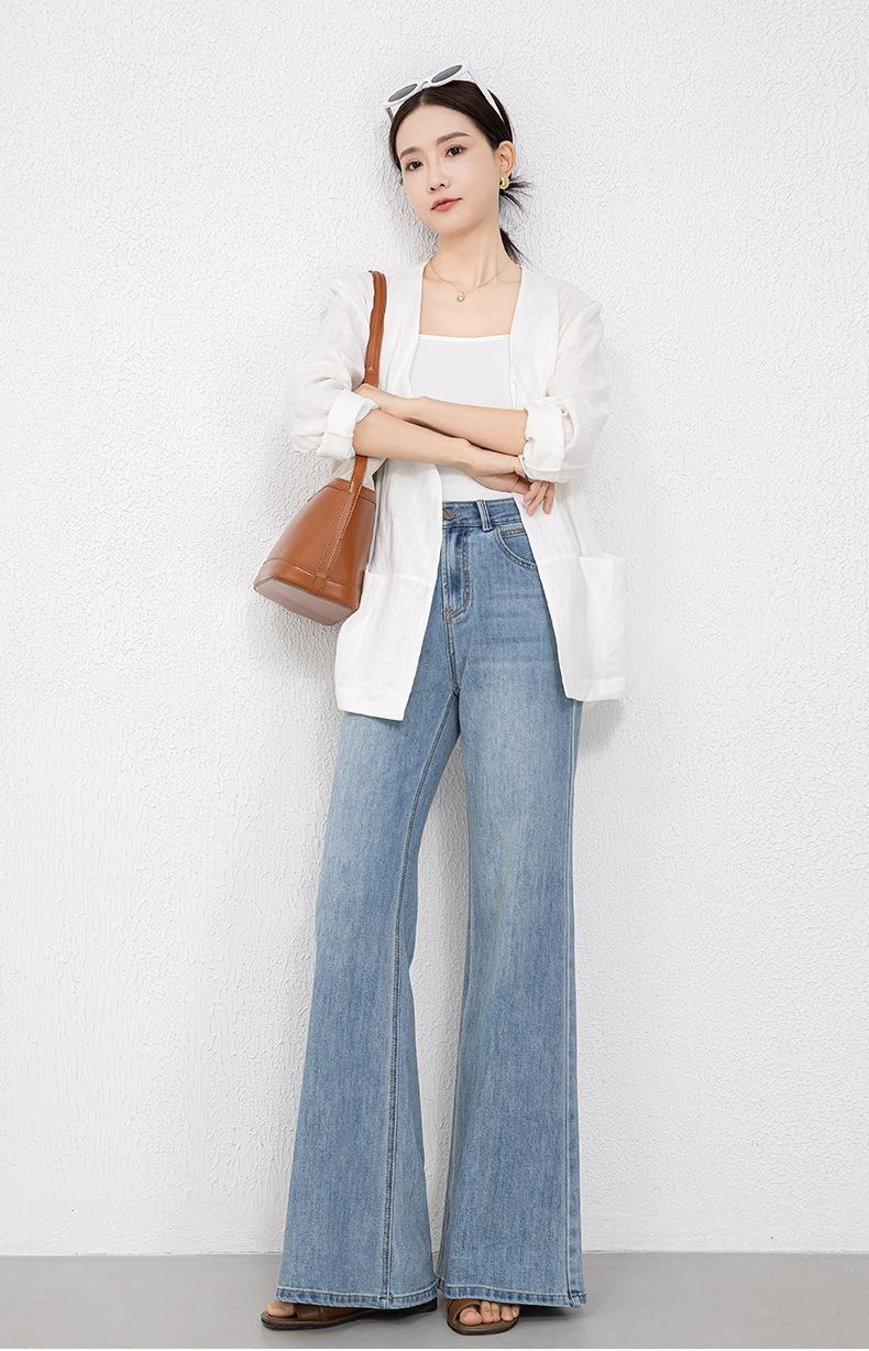 Si el micro-jean ligero y transpirable para mujer 2025 verano nuevo cintura alta pantalones acampanados caídos 8180