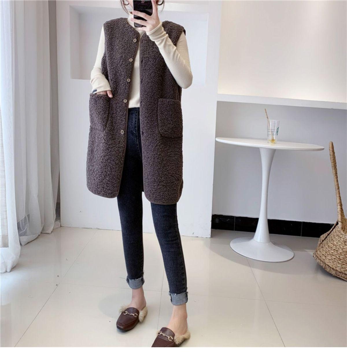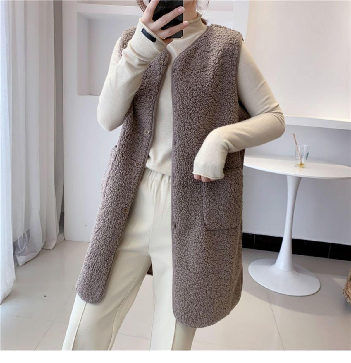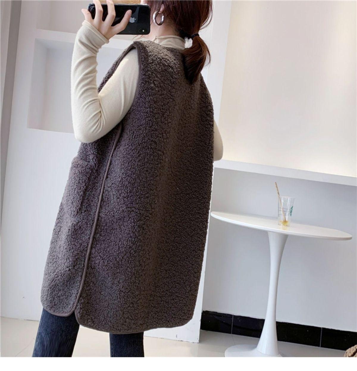 Chaleco de Mujer Personalizado de Largo Medio de Imitación de Lana de Cordero, Suelto y Versátil Estilo Europeo y Americano Chaqueta Chaleco de Terciopelo Granular