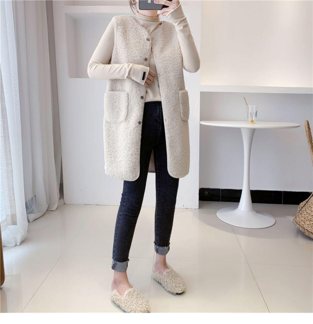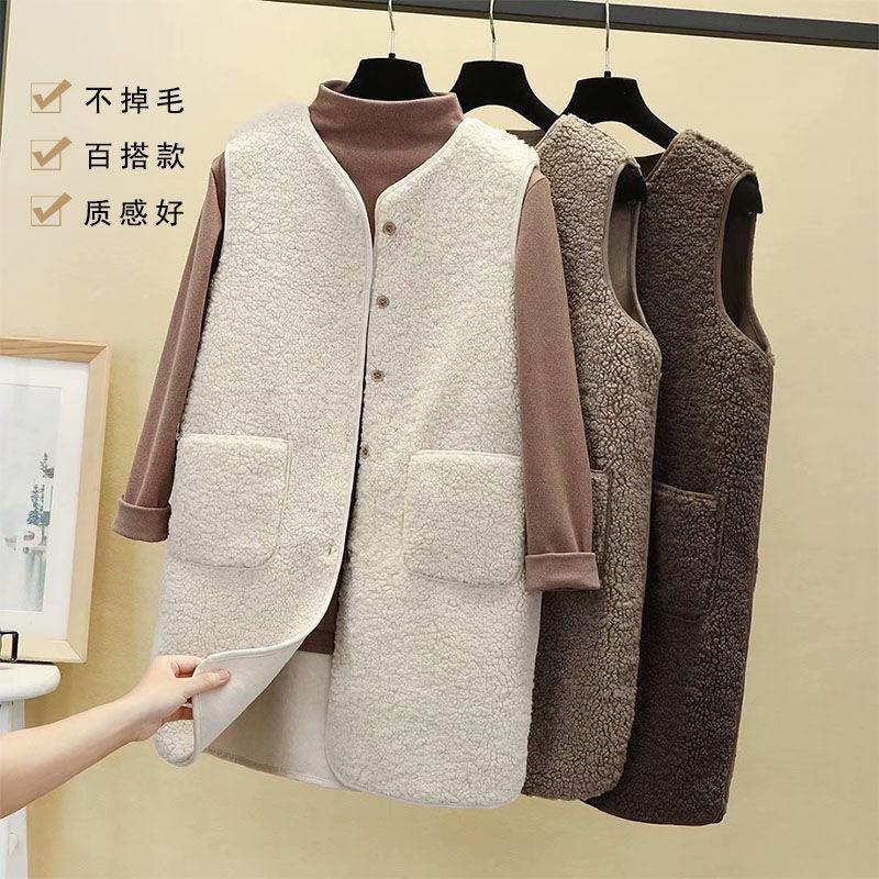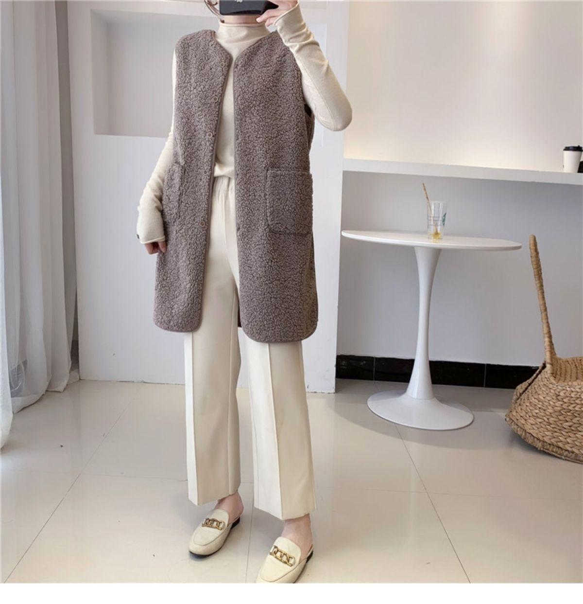 Chaleco de Mujer Personalizado de Largo Medio de Imitación de Lana de Cordero, Suelto y Versátil Estilo Europeo y Americano Chaqueta Chaleco de Terciopelo Granular