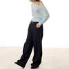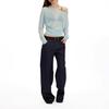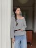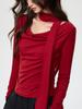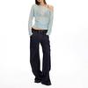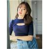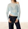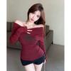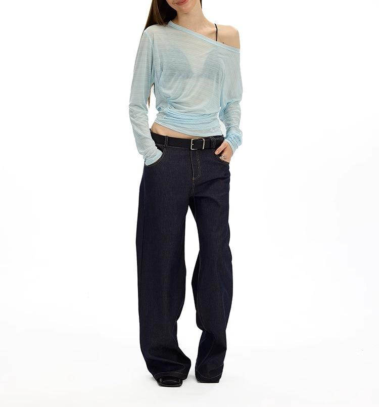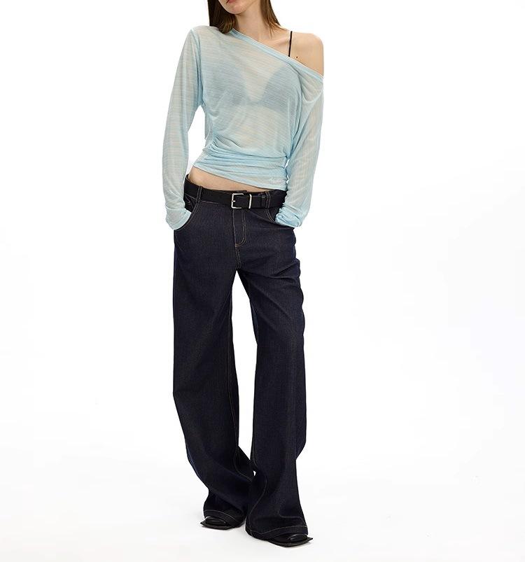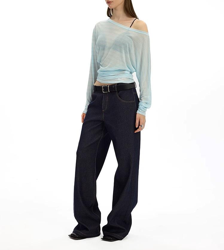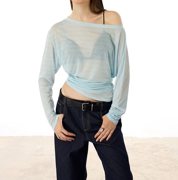 Playera Importada de Tencel de Un Hombro con Rayas Oblicuas en el Hombro, Manga Larga, con Pliegues Asimétricos y Tops Apilados