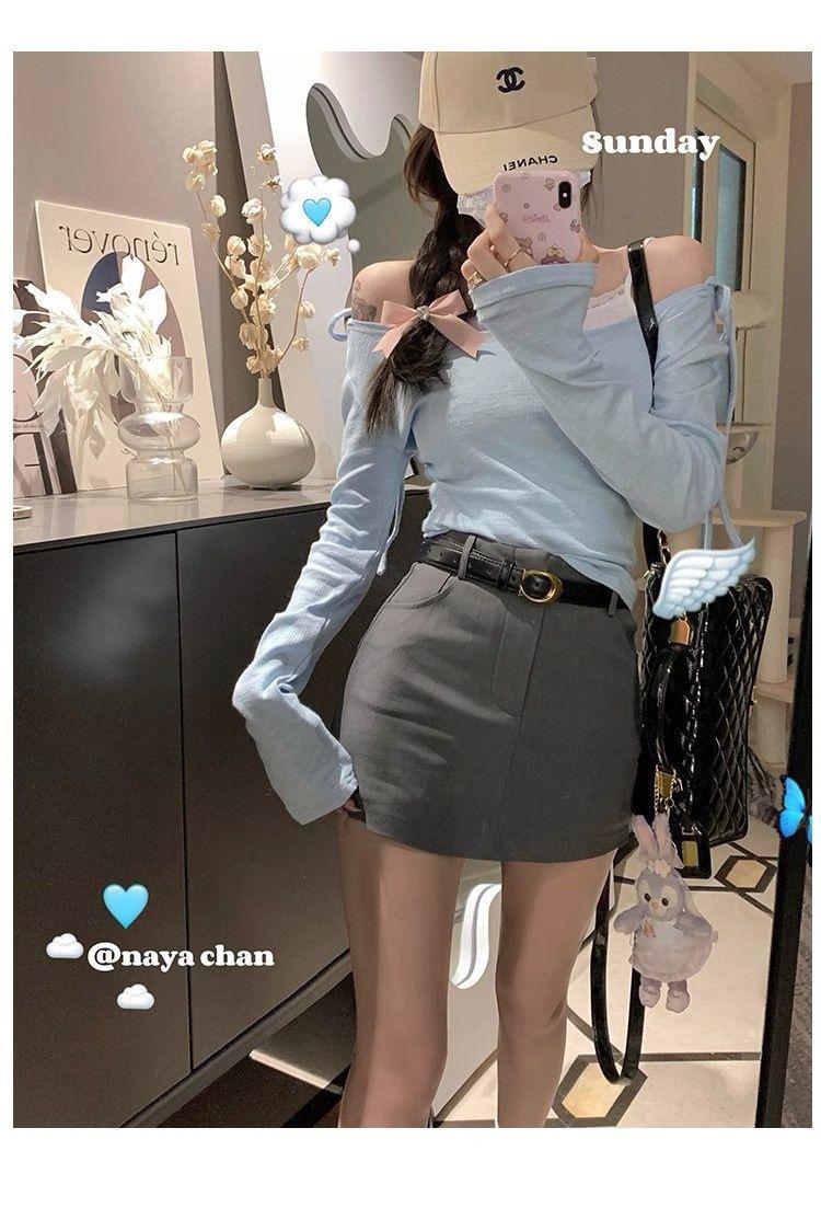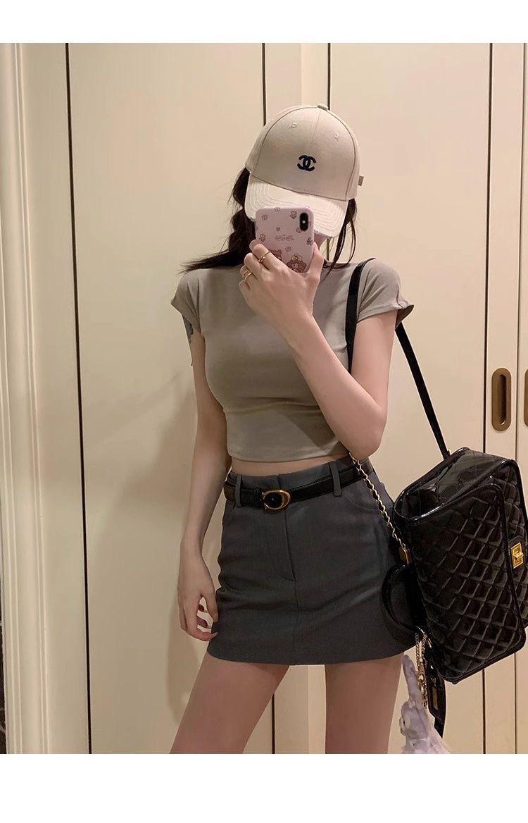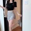Falda de Traje Gris para Chica Caliente para Mujer 2024 Nueva Primavera y Verano Falda Corta Ajustada de Cintura Alta para Personas Pequeñas para Evitar la Exposición Línea A