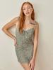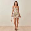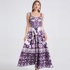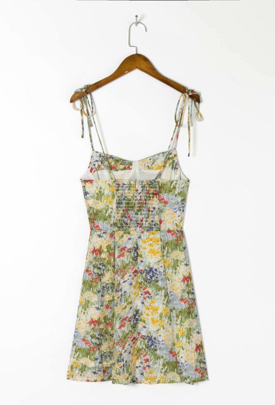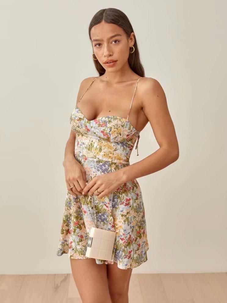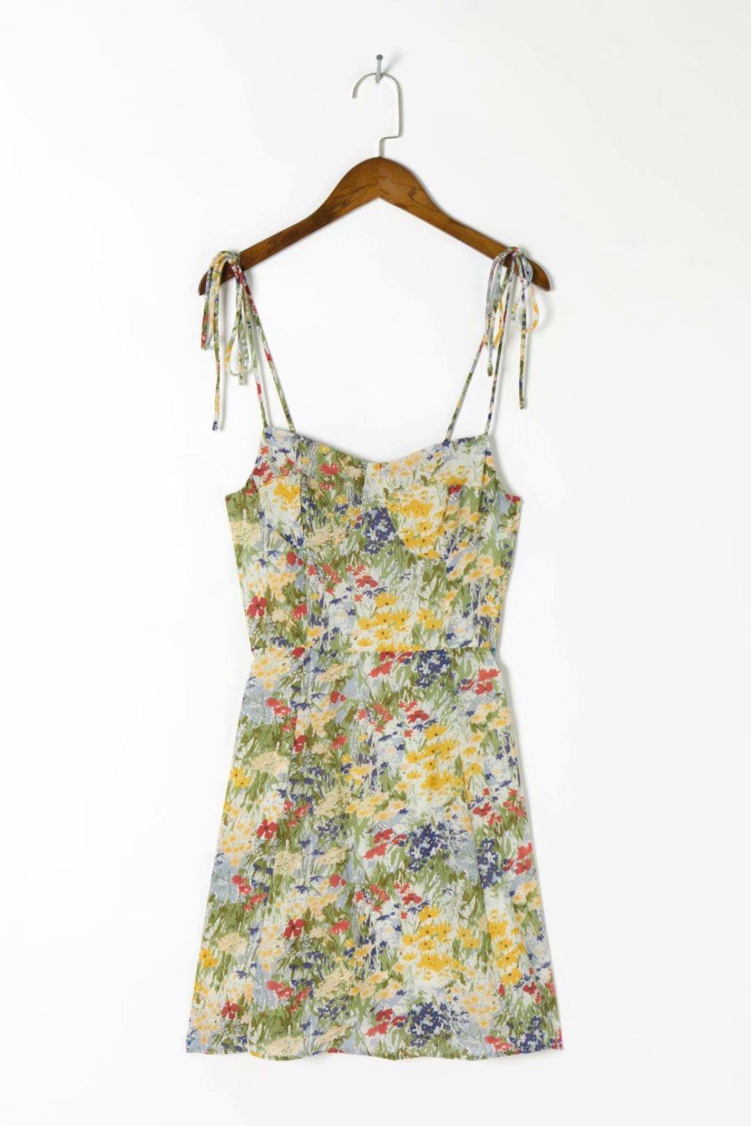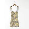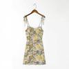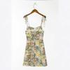 Falda de Tirantes Estampada de Verano Europea y Americana Adelgazante Amarilla Elegante para Oficina Cintura Alta Sexy Estilo Vacacional Vestido con Cordones