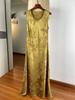 Vestido Chaleco Drapeado al Bies de Jacquard de Satén de Acetato para Mujer Verano Elegante Elegante Cuello U Cintura Ajustada Vestido Largo