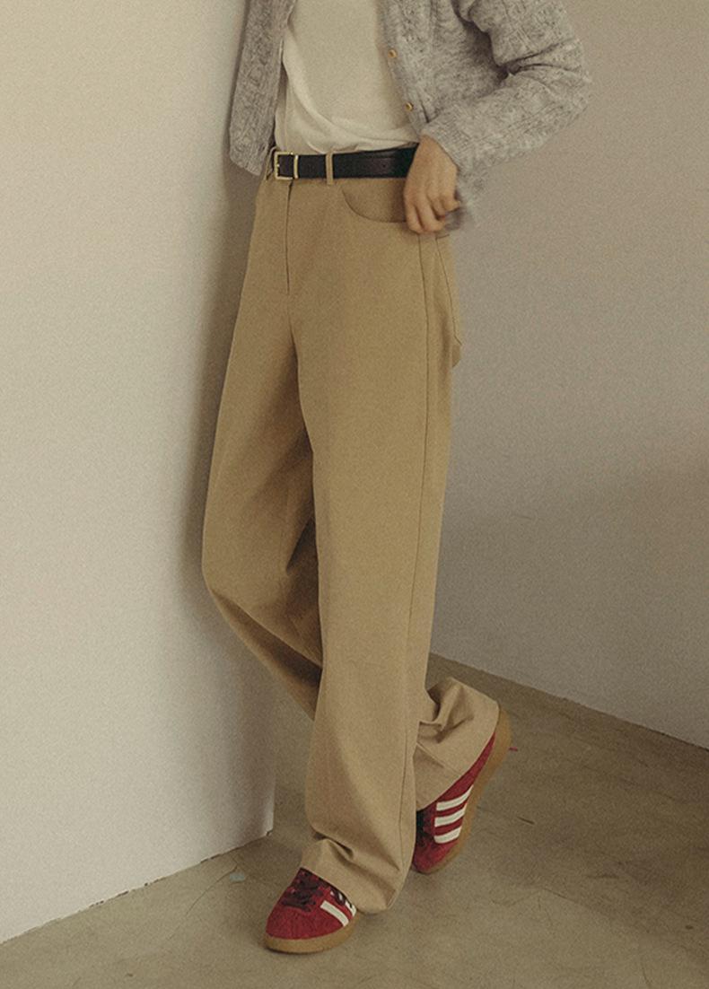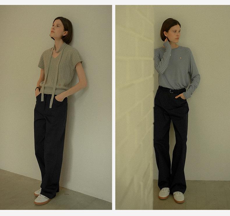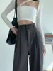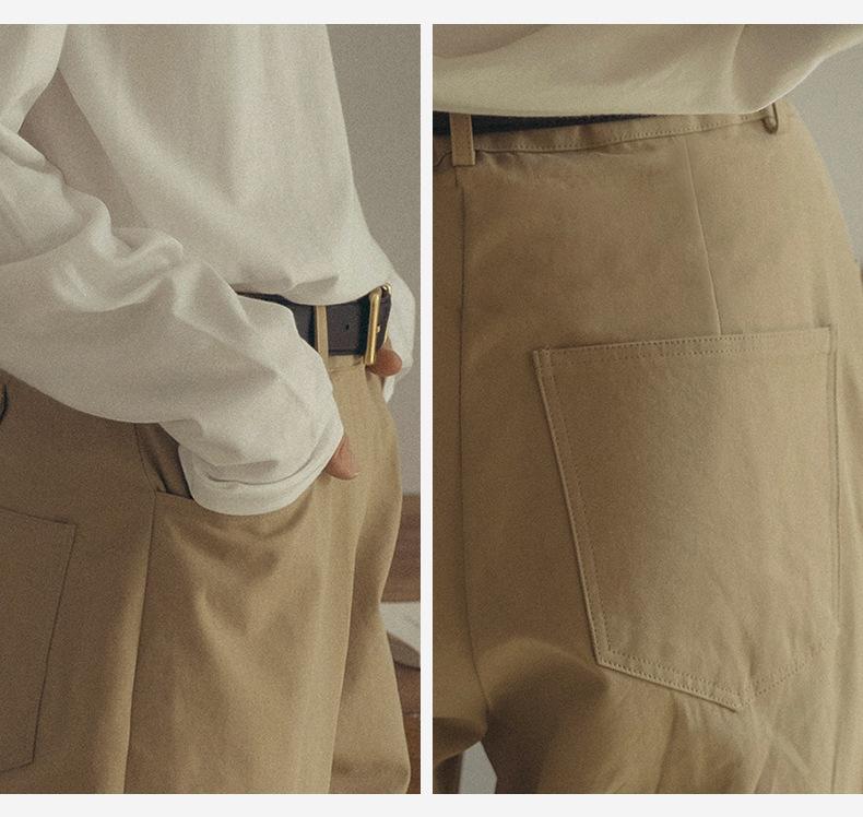 Pantalones Casuales de Algodón Puro Slim Temperamento 2025 Primavera Nuevo de Mujer Color Sólido Bolsillo Pantalones Retro Cintura Alta Pierna Recta