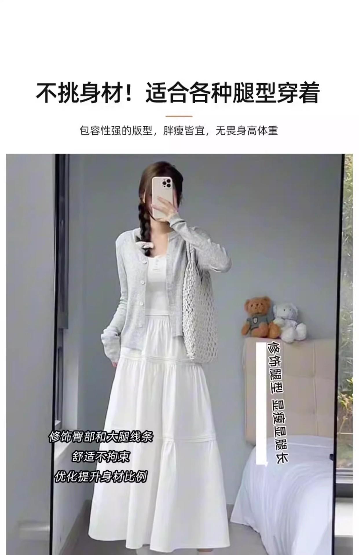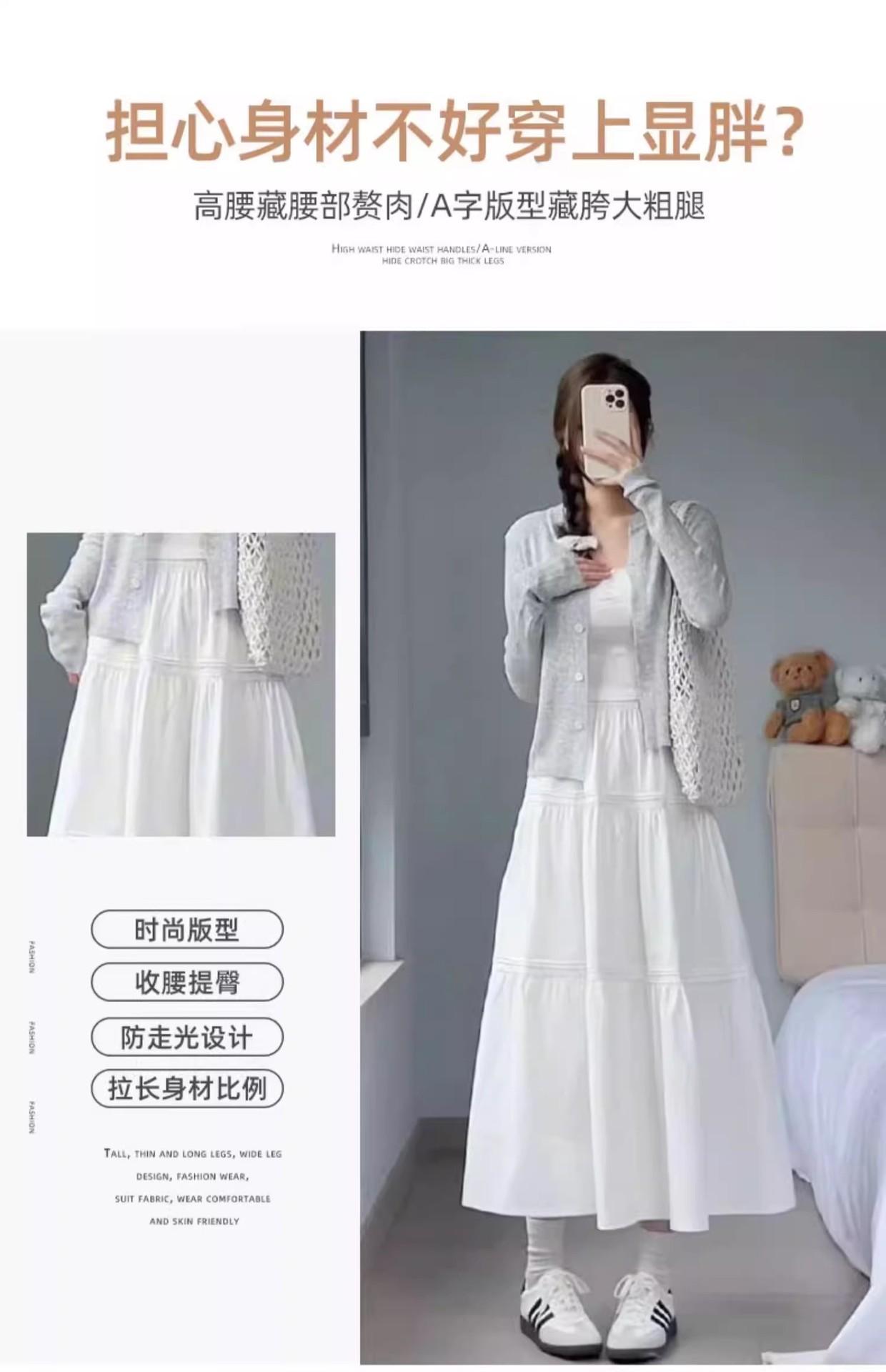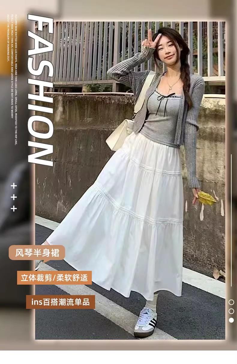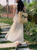 Falda blanca para mujer, primavera 2025, nueva, cintura alta, corte A, longitud media, falda abullonada adelgazante.