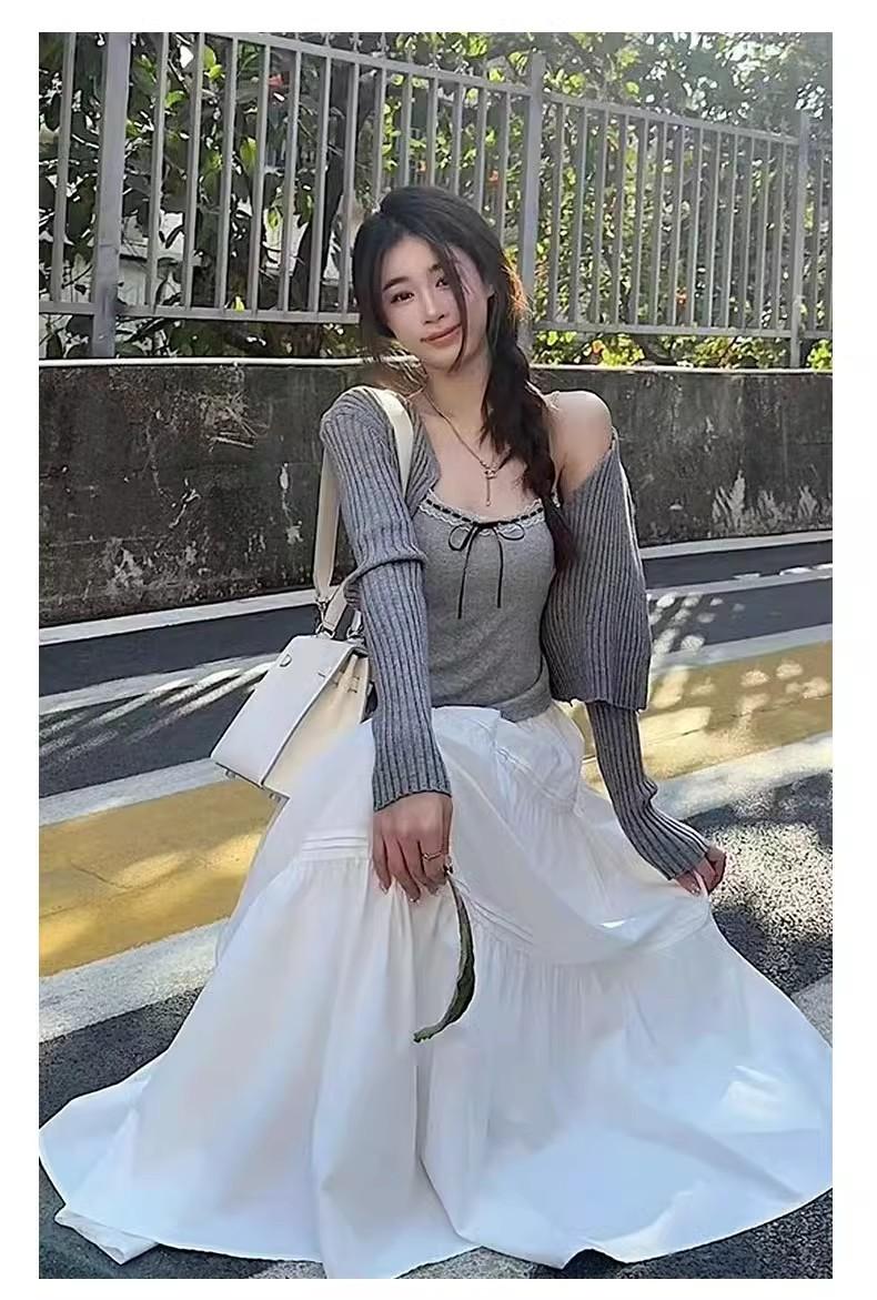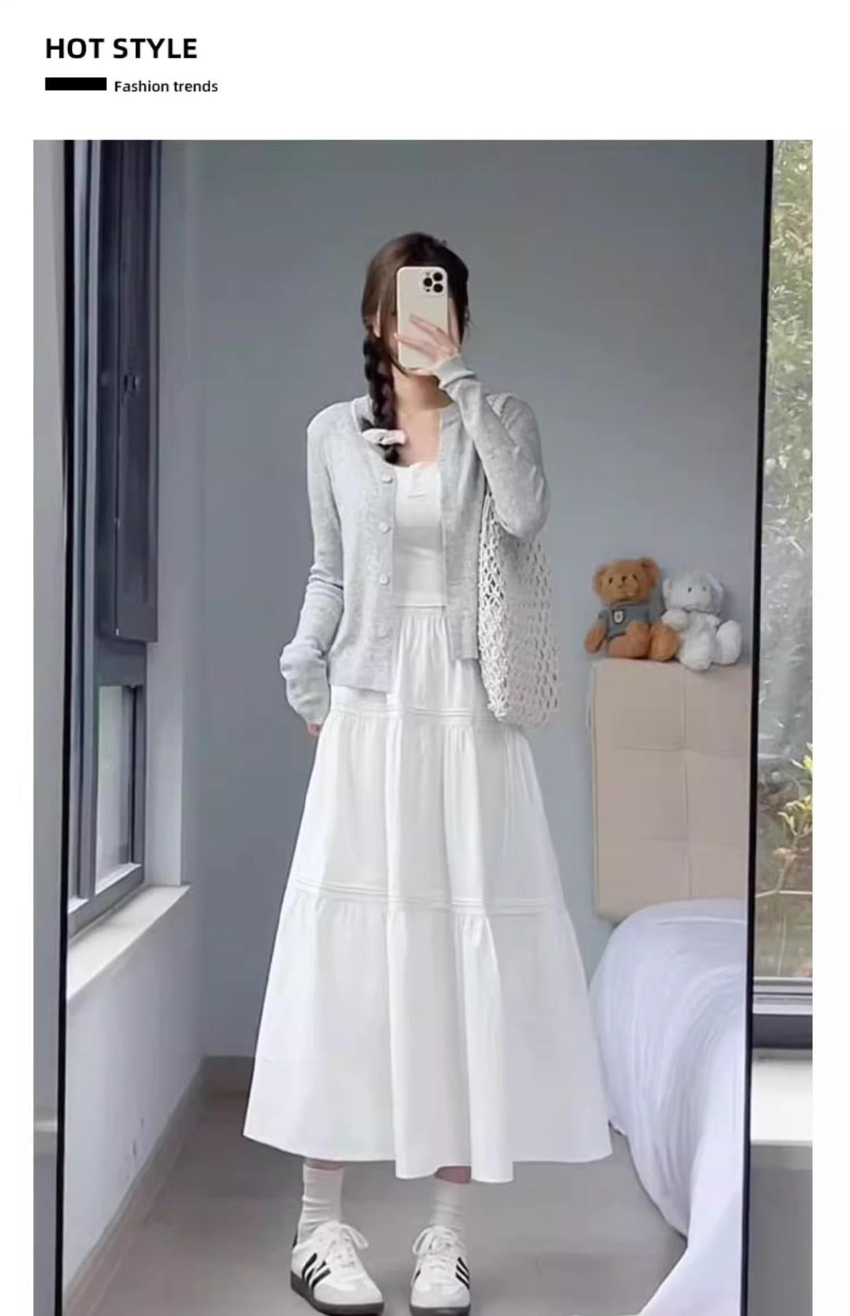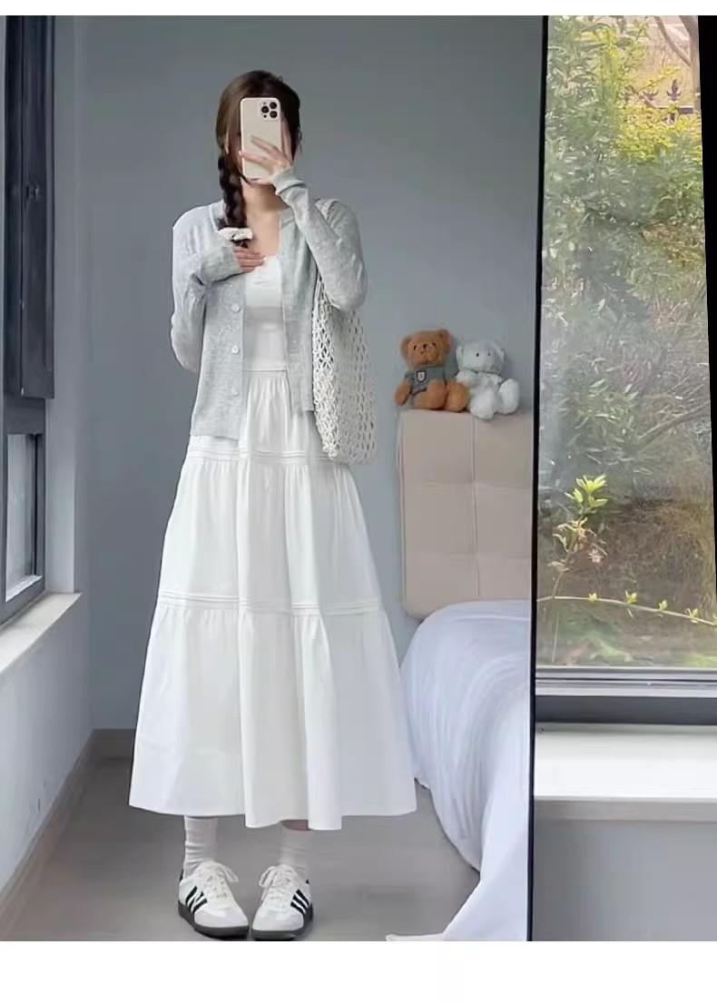 Falda blanca para mujer, primavera 2025, nueva, cintura alta, corte A, longitud media, falda abullonada adelgazante.