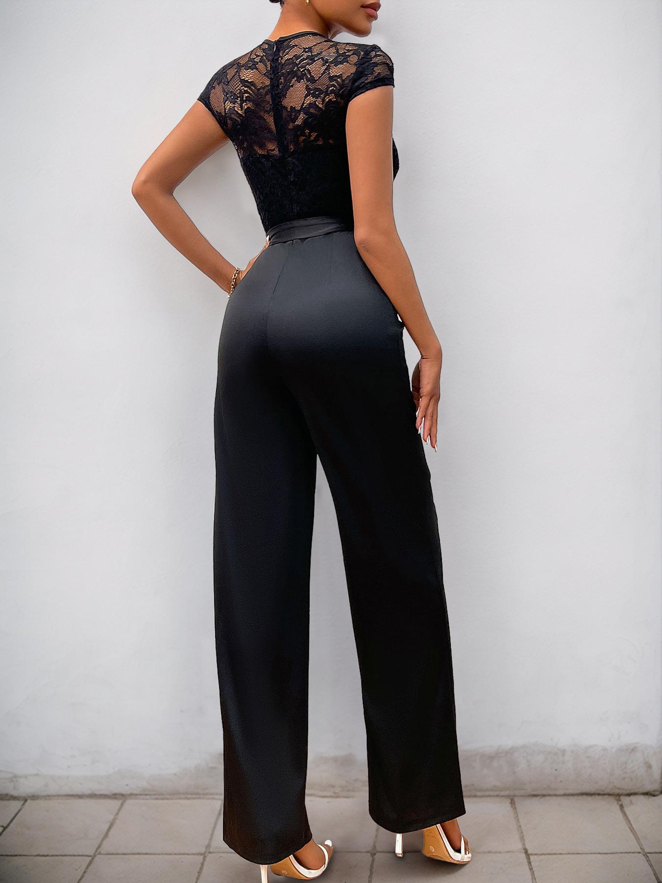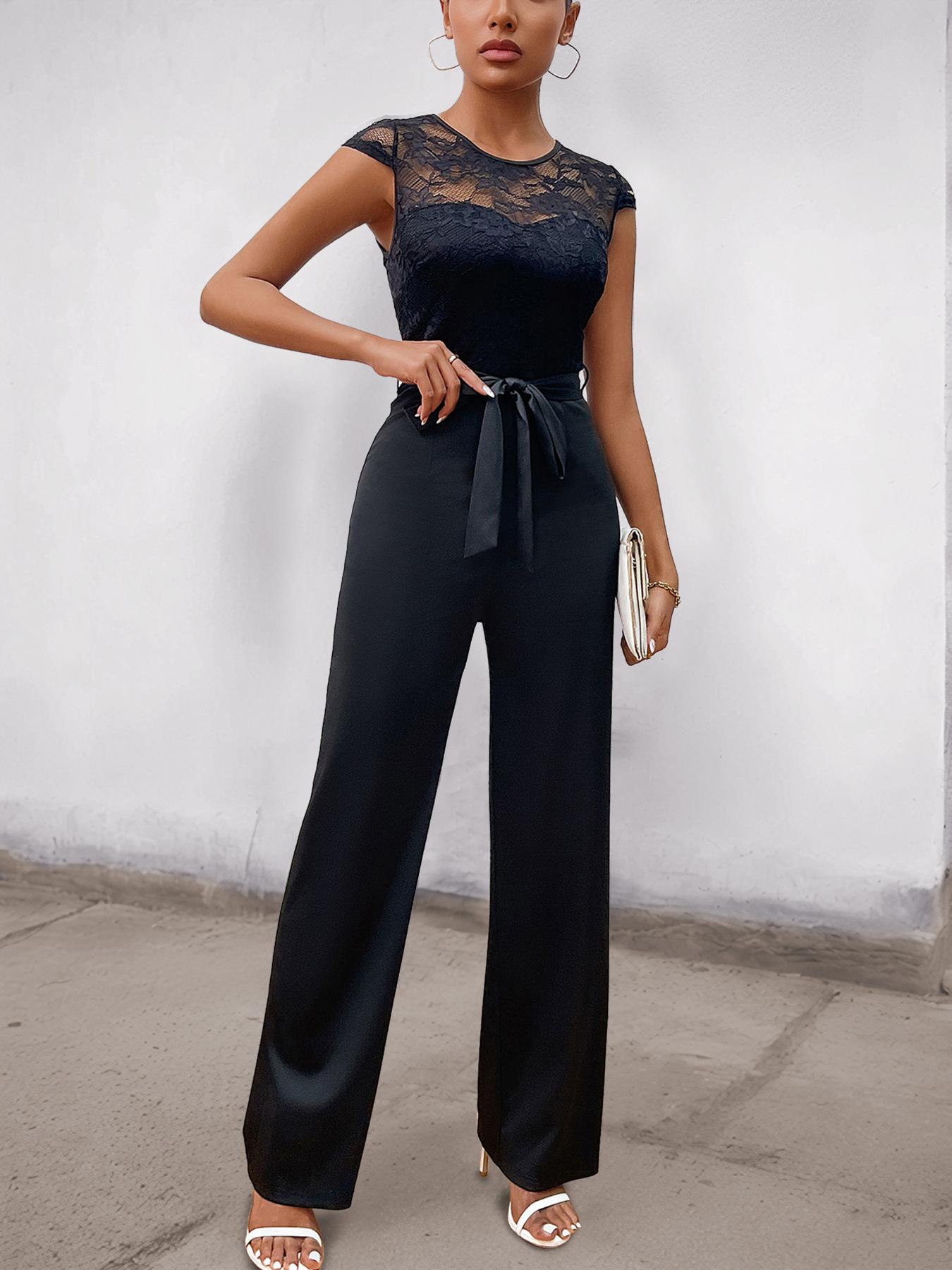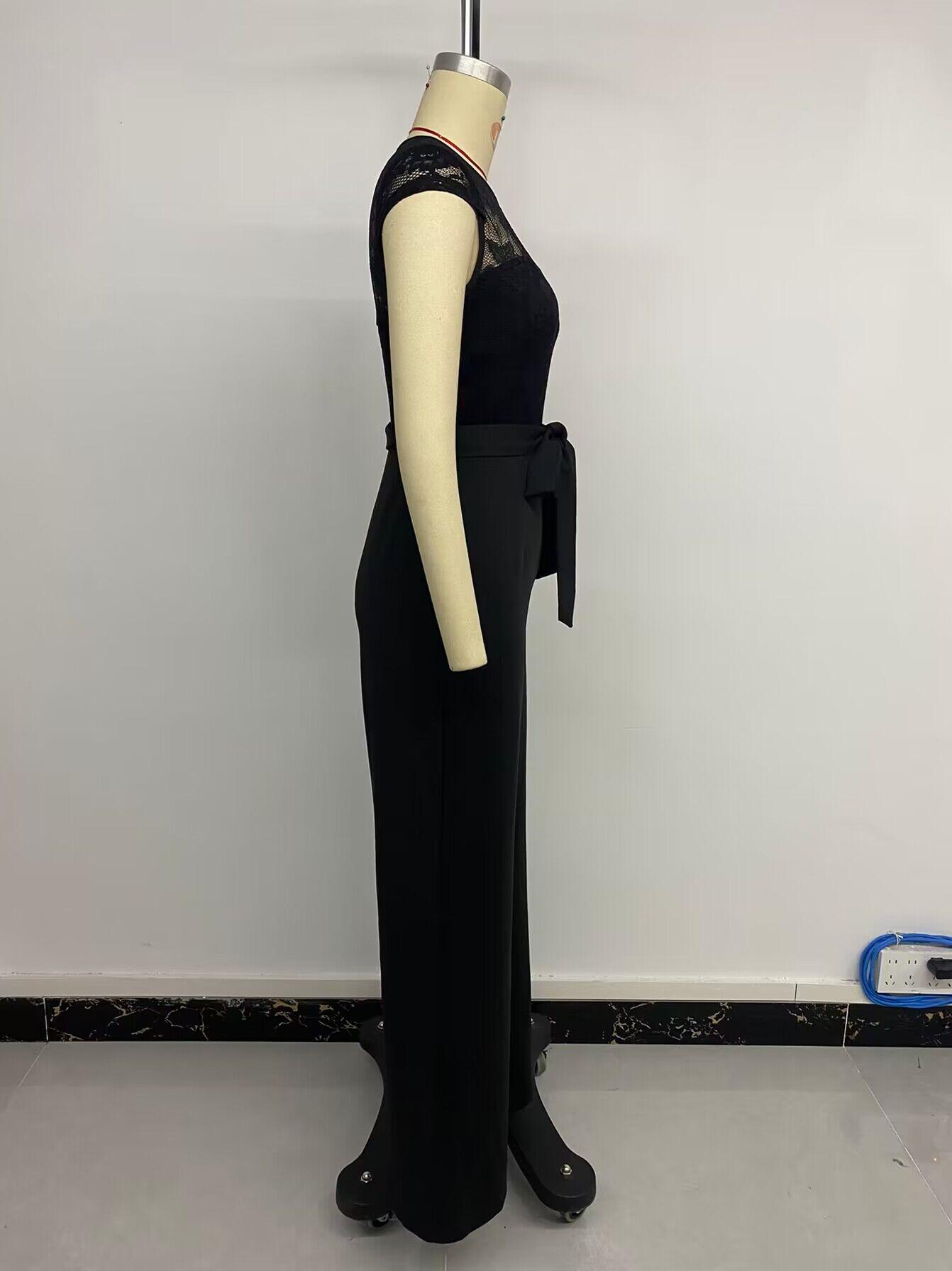 2024 Amazon Verano Venta Caliente Nuevo Mono sin Mangas con Encaje Patchwork Mono sin Mangas de Cintura Alta con Temperamento