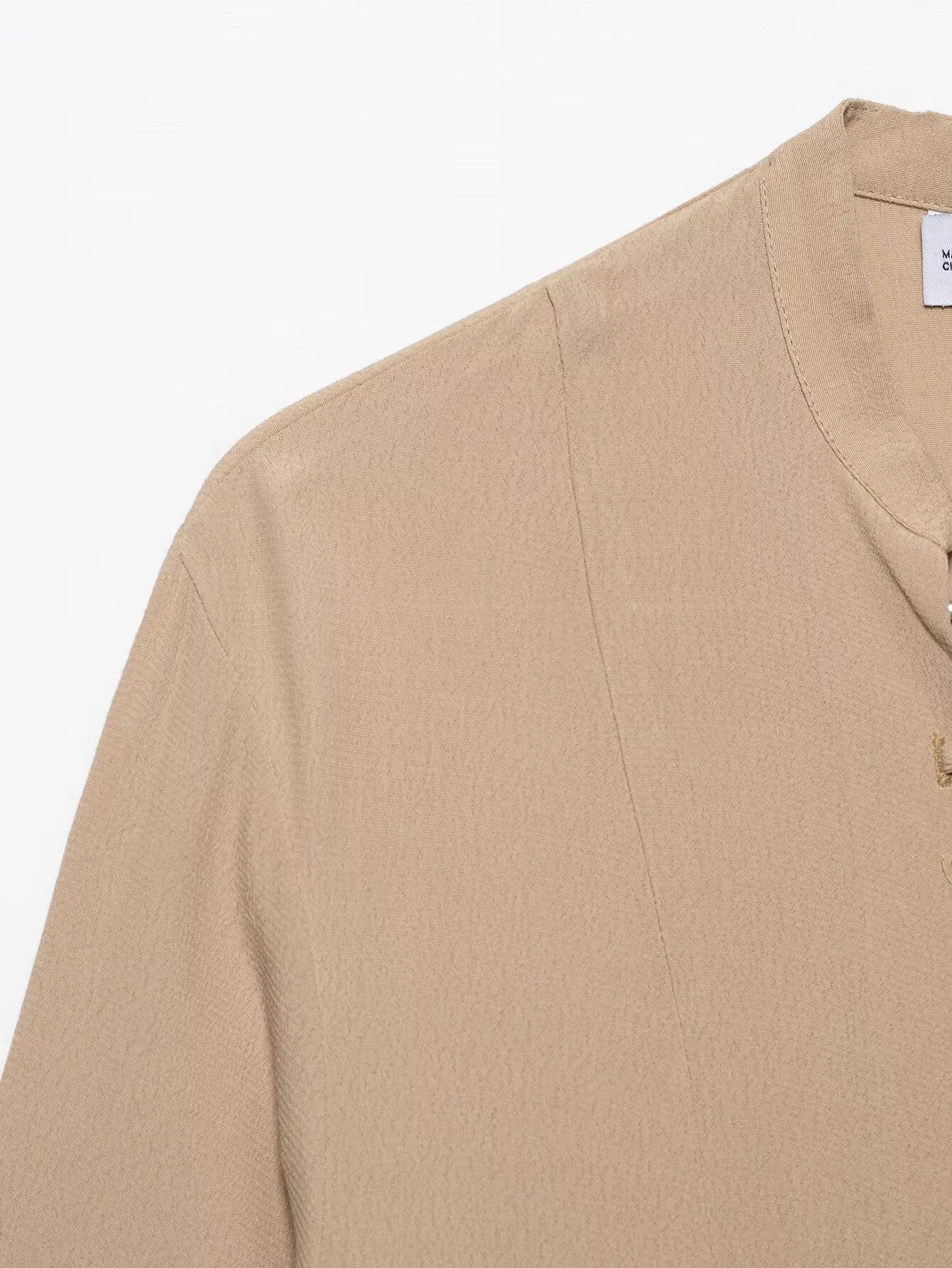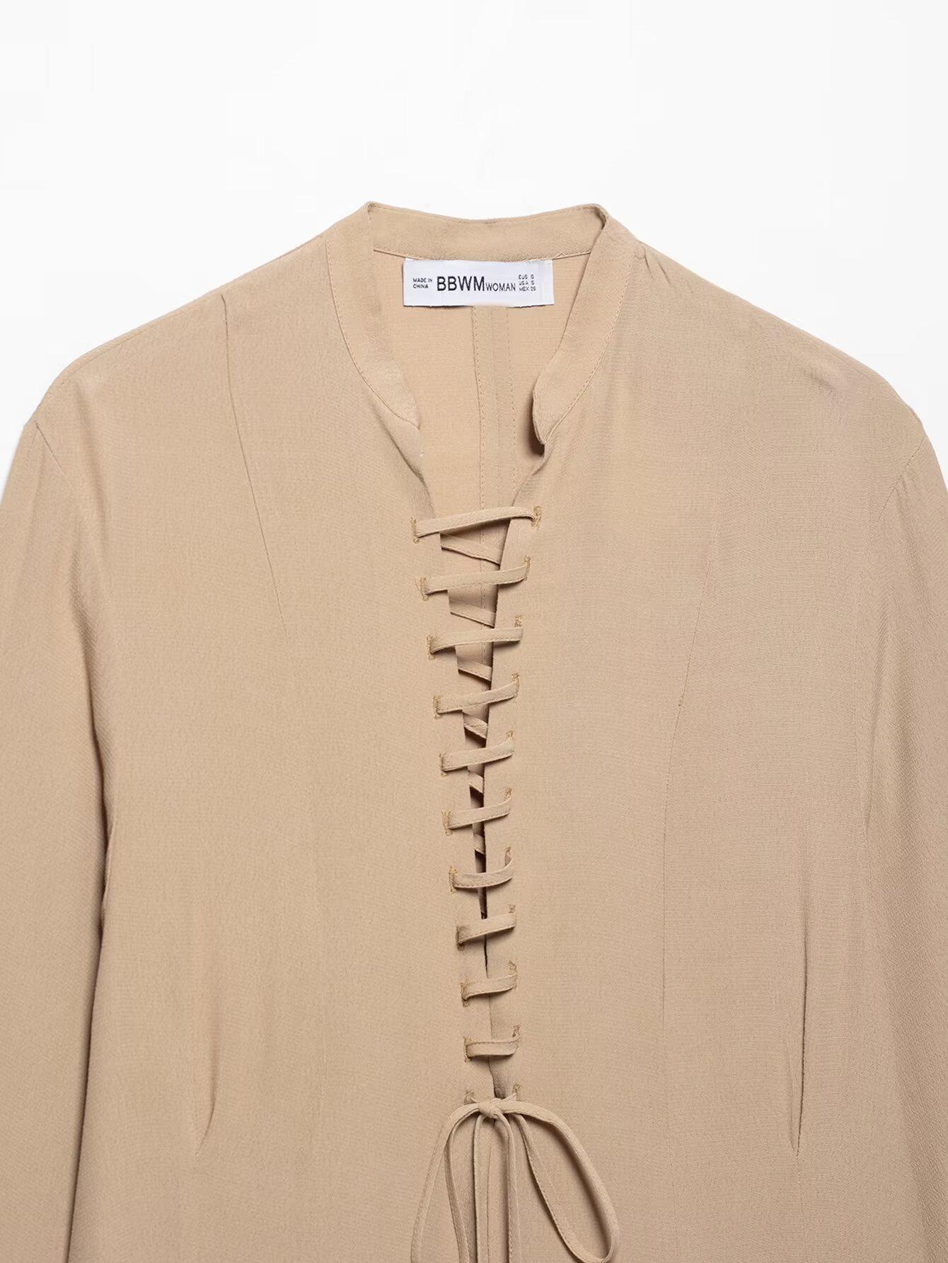 Primavera 2025 Nueva Ropa de Mujer Estilo Europeo y Americano Moda Versátil con Cordones Decorativos Tops de Manga Larga de Gasa