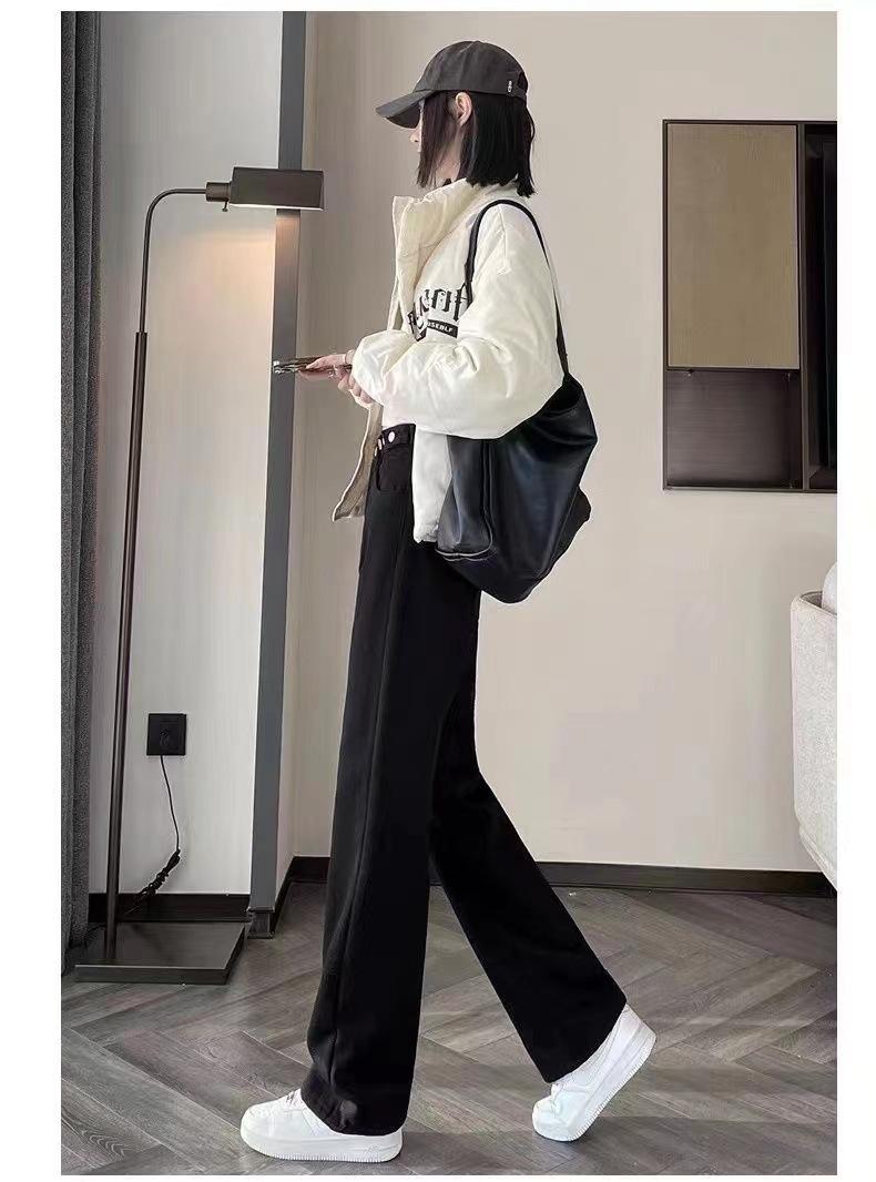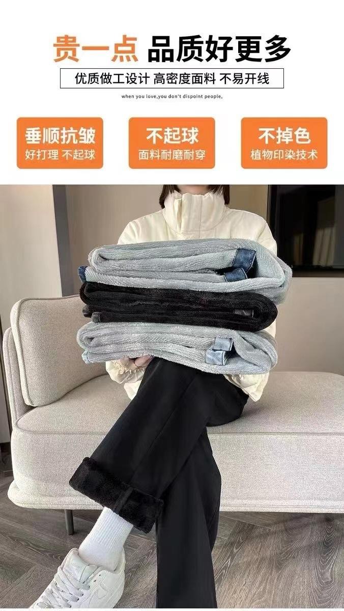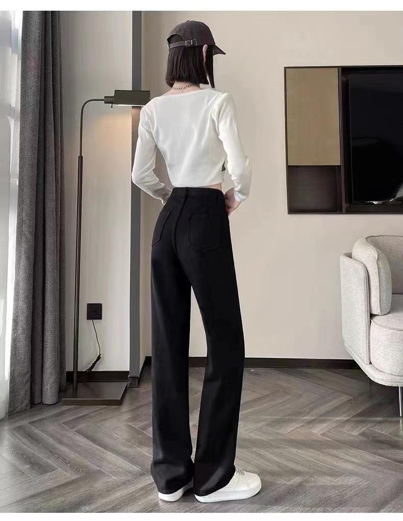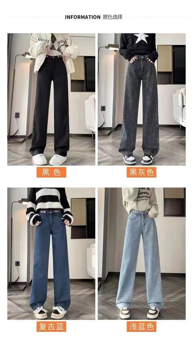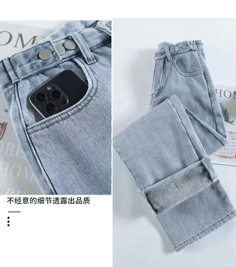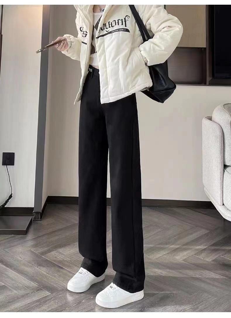 Jeans de Pierna Ancha Gruesos para Mujer de Cintura Alta Holgados Adelgazantes 2024 Invierno Cálidos Pantalones Rectos Pantalones Forrados de Felpa