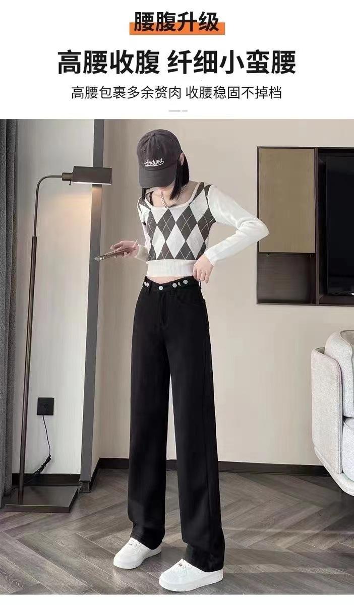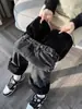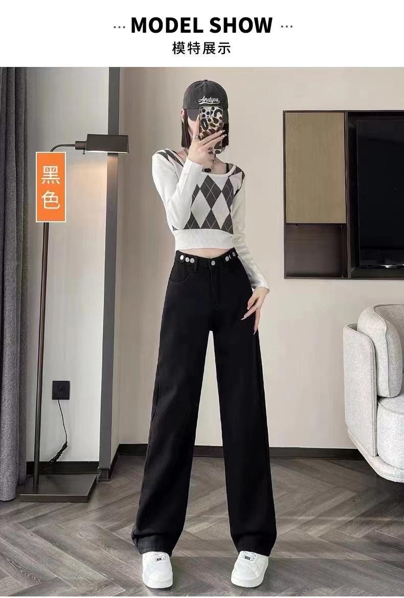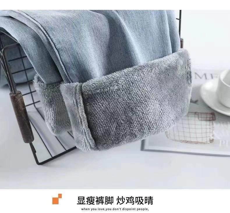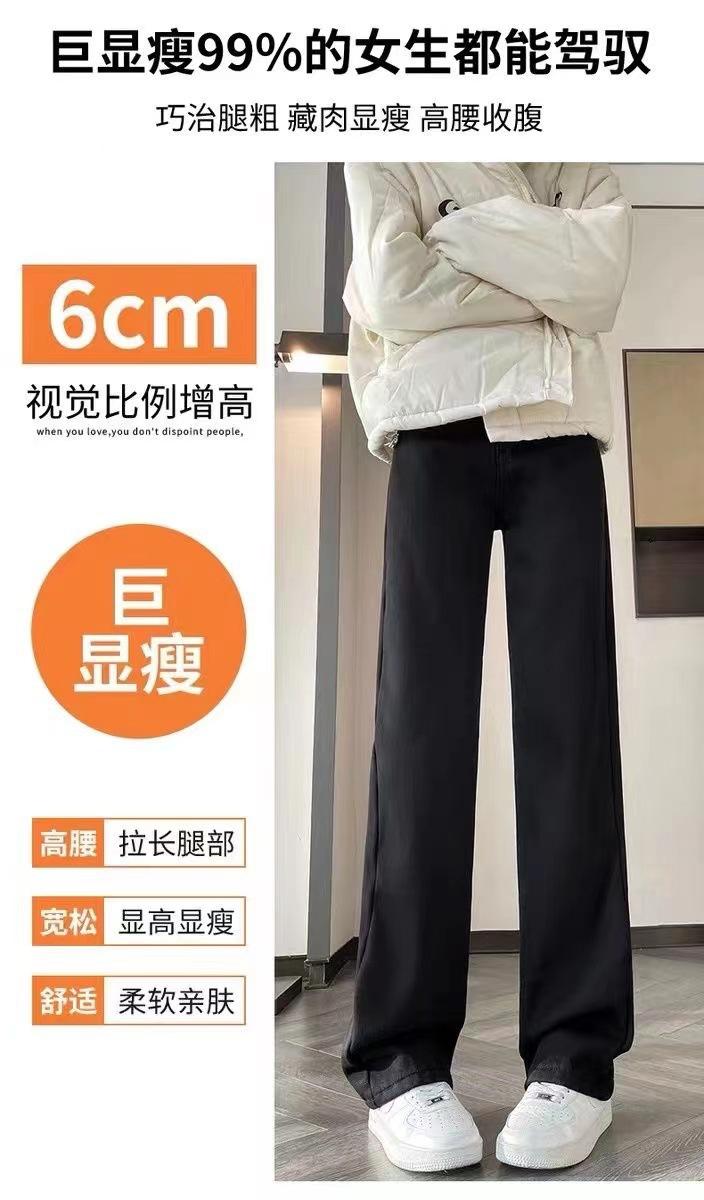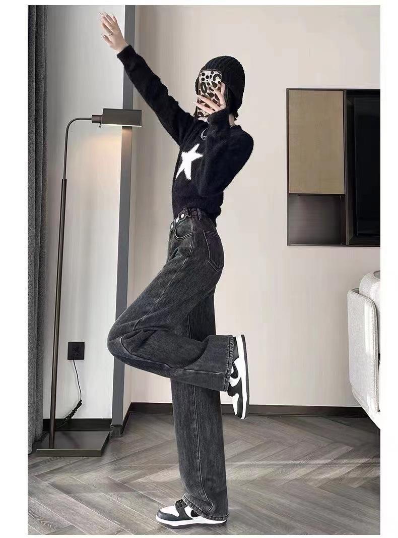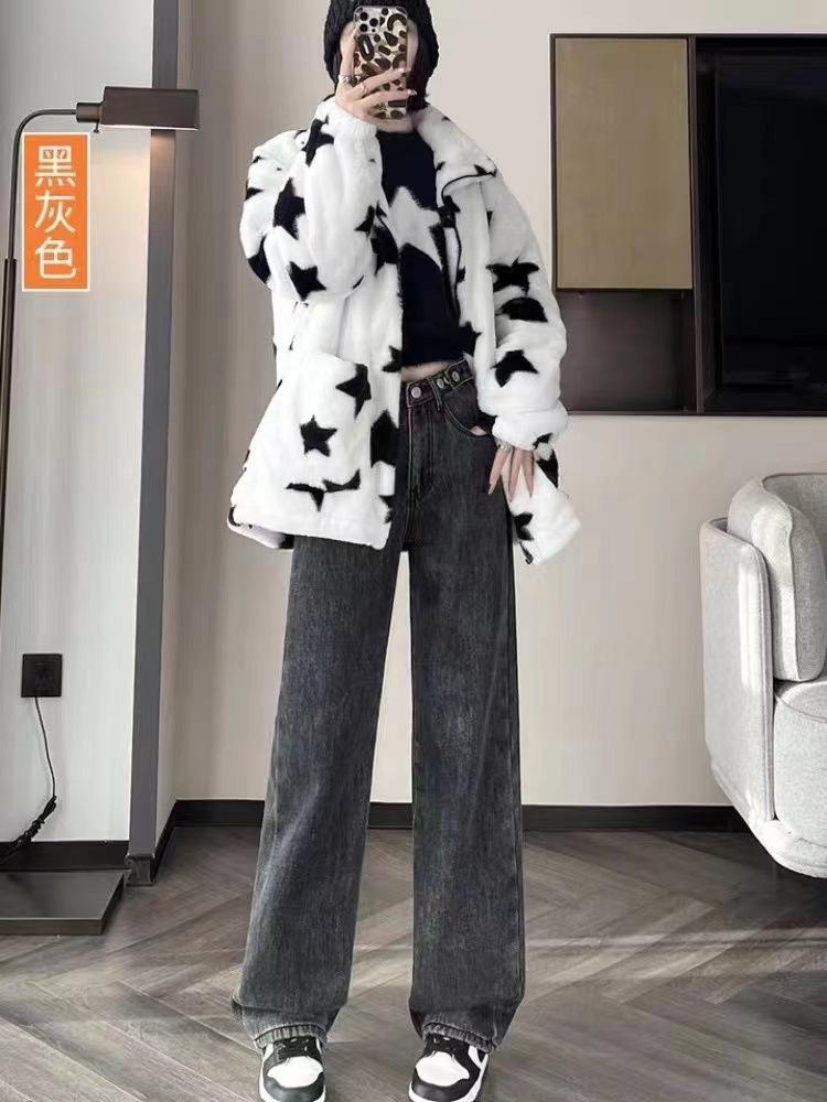 Jeans de Pierna Ancha Gruesos para Mujer de Cintura Alta Holgados Adelgazantes 2024 Invierno Cálidos Pantalones Rectos Pantalones Forrados de Felpa