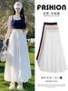 Falda Floral Azul para Mujer, Nuevo Estilo Verano 2026, Cintura Alta, Adelgazante, Corte A, Petite, Longitud Media, Falda de Paraguas Abullonada