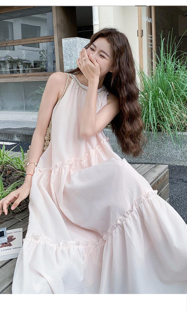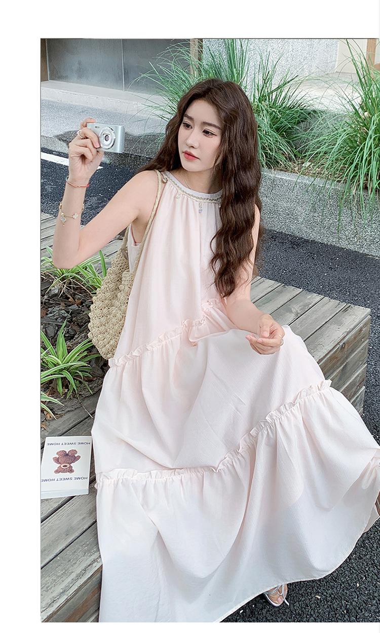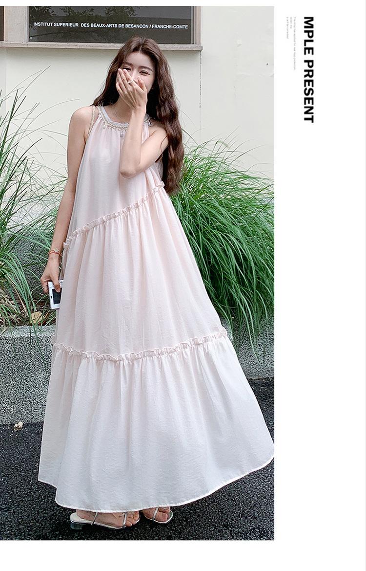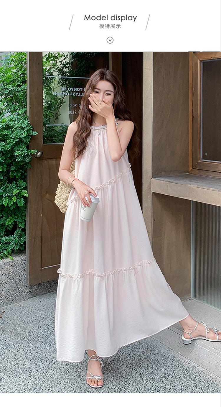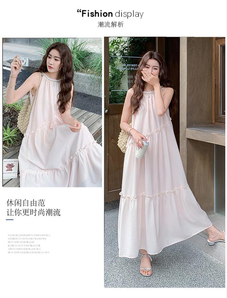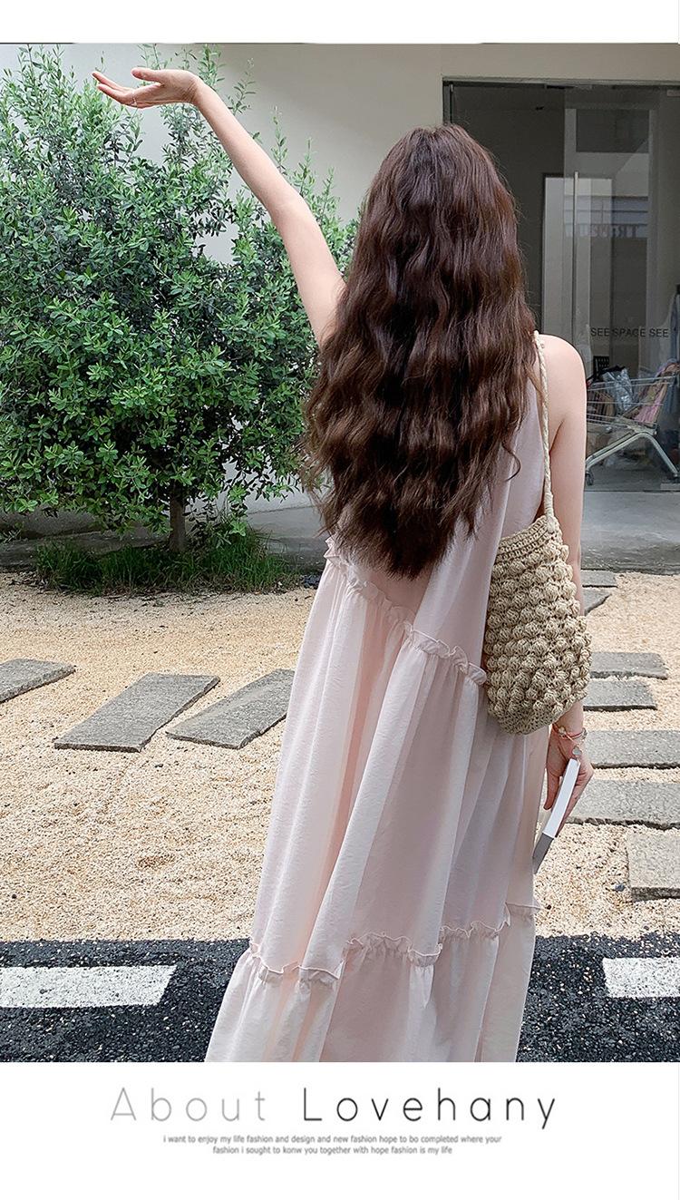 Moda de Verano 2025 Casual Vacaciones Vestido de Hada Elegante Francés Tirantes Adelgazante Holgado Playa Vestido Largo