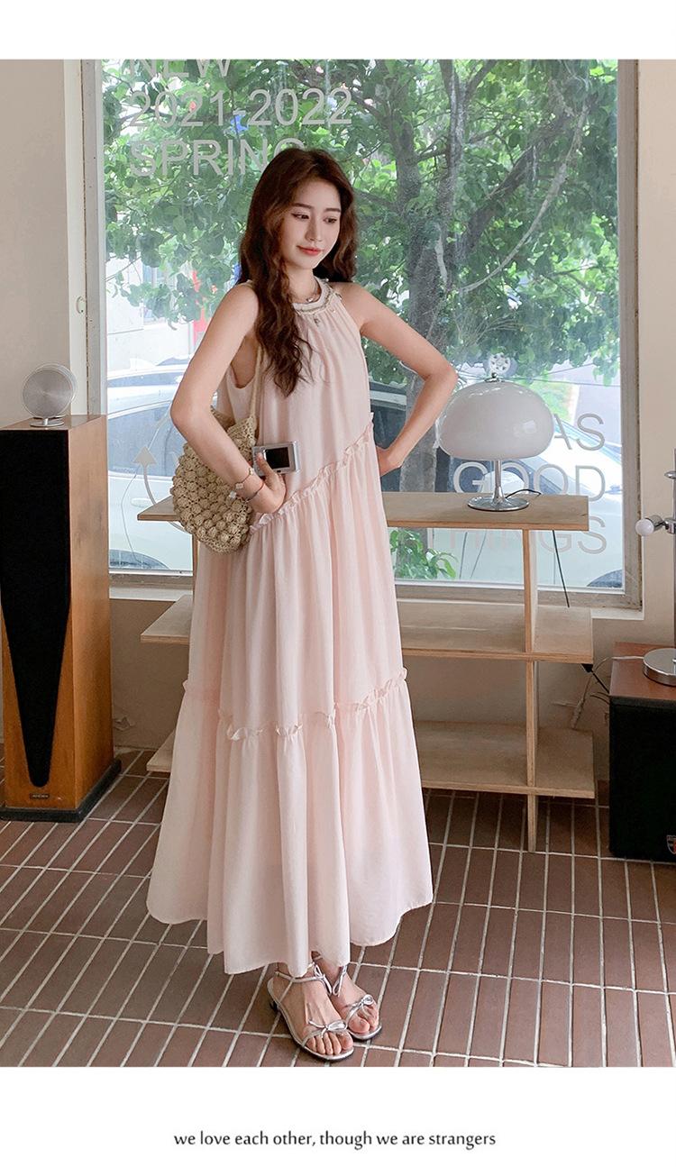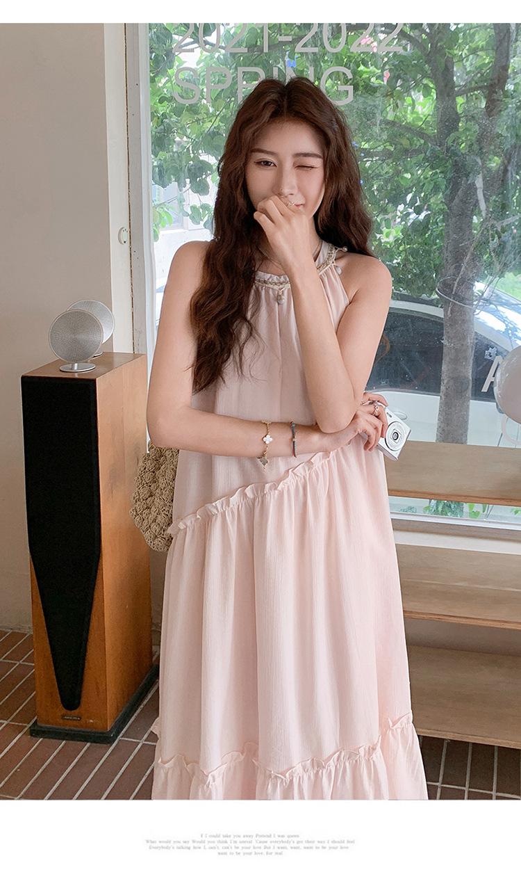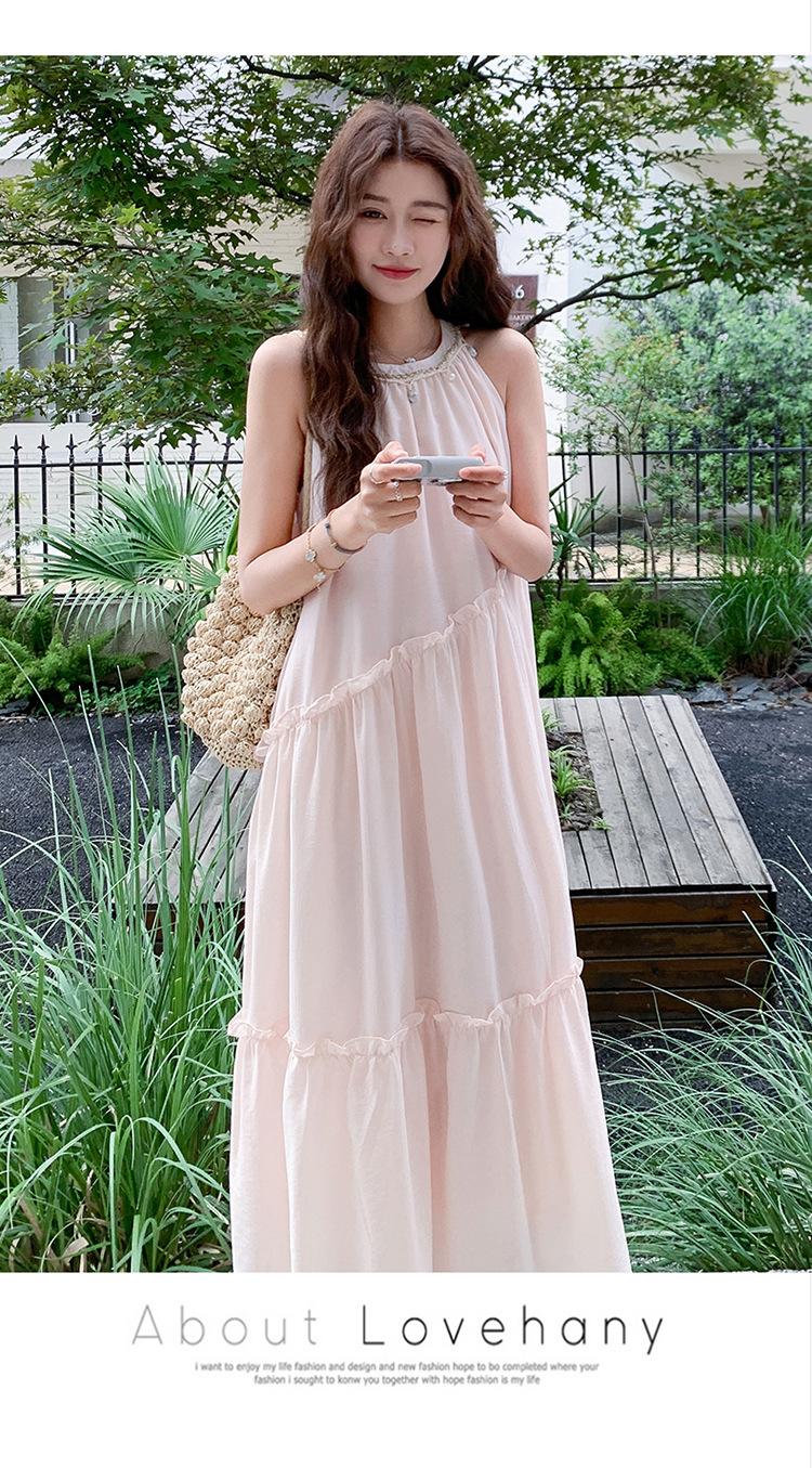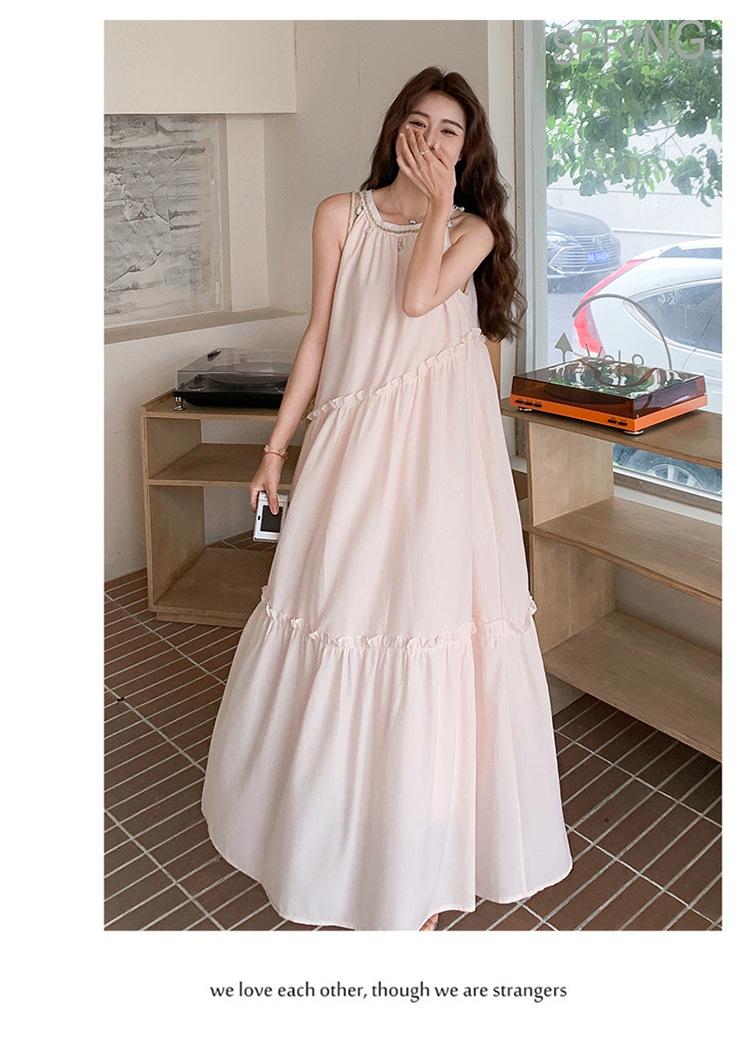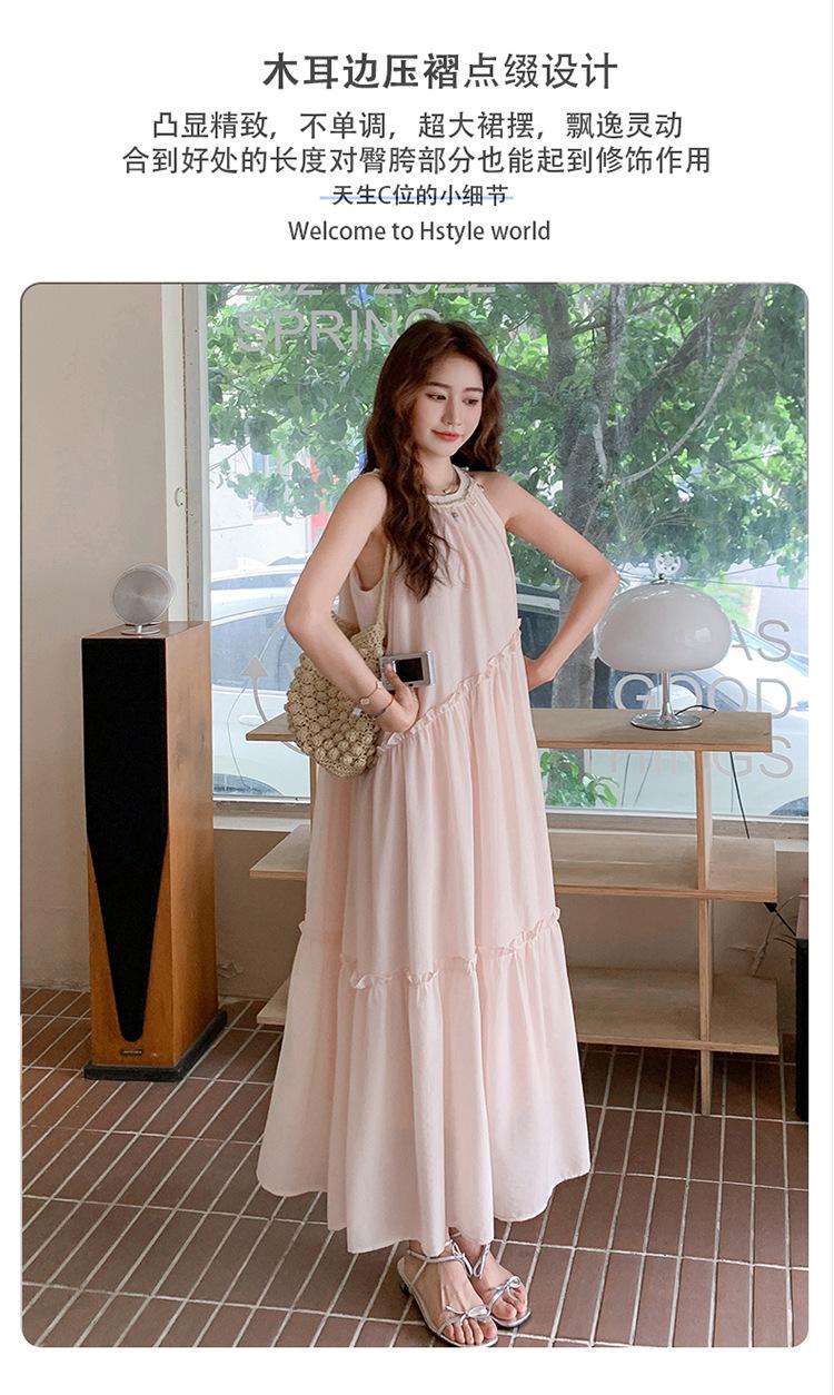 Moda de Verano 2025 Casual Vacaciones Vestido de Hada Elegante Francés Tirantes Adelgazante Holgado Playa Vestido Largo