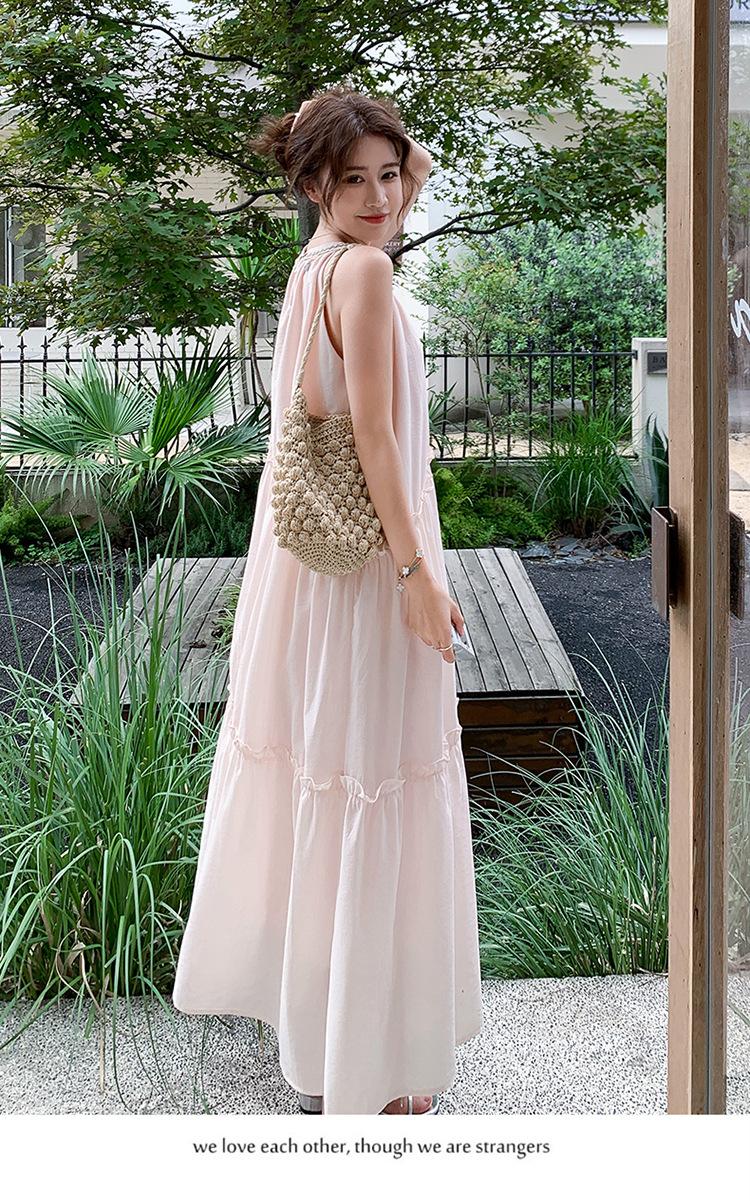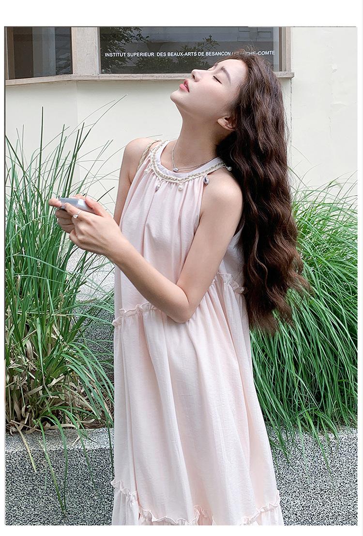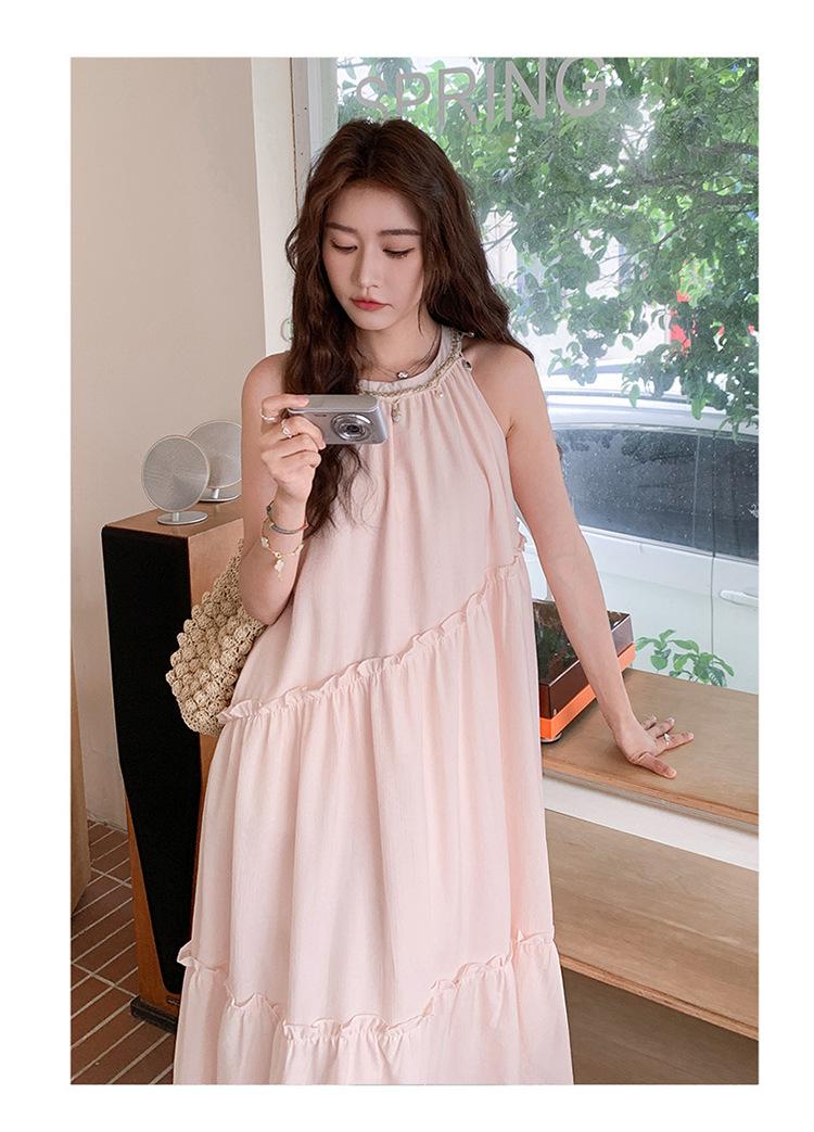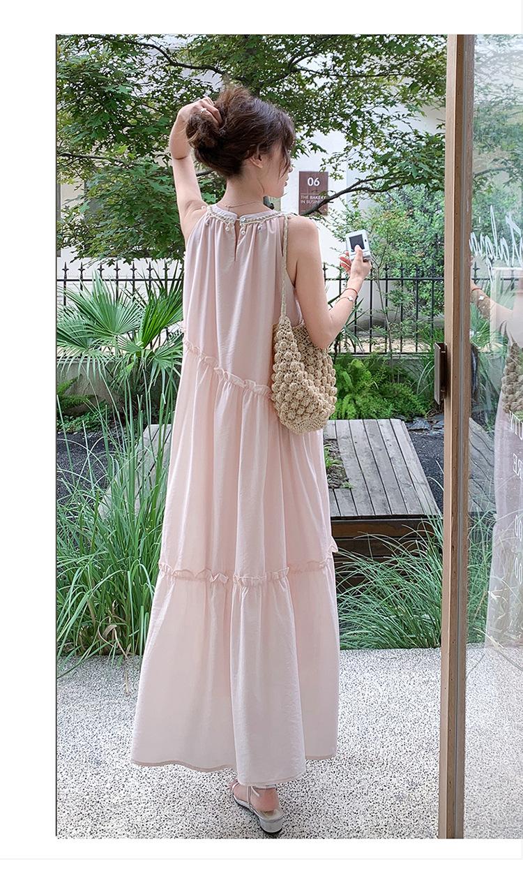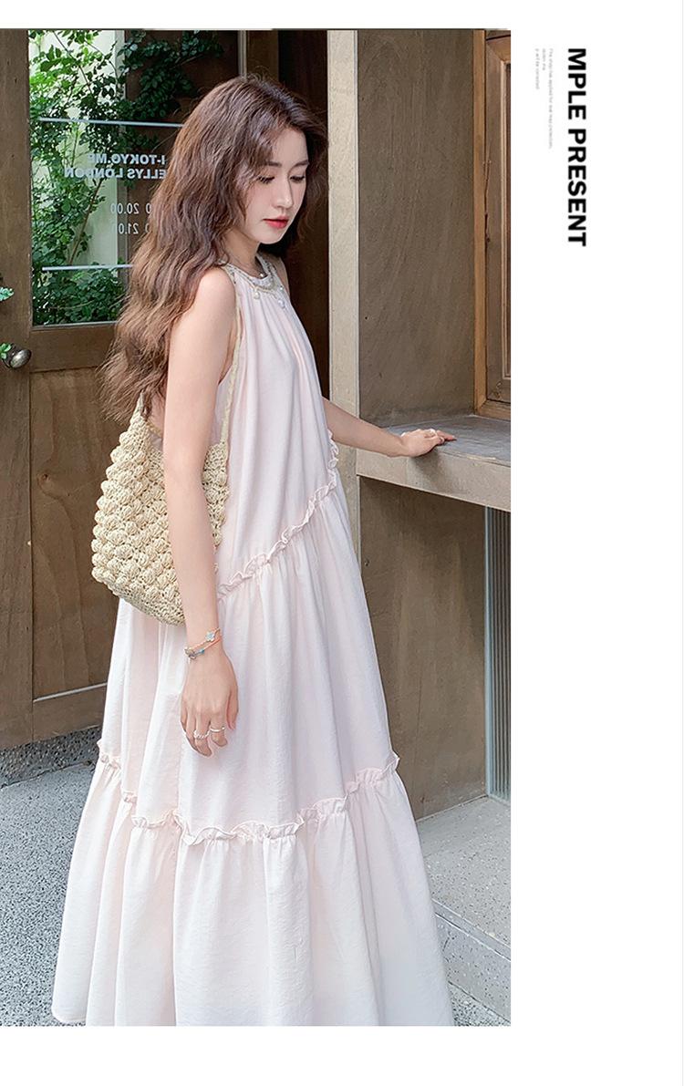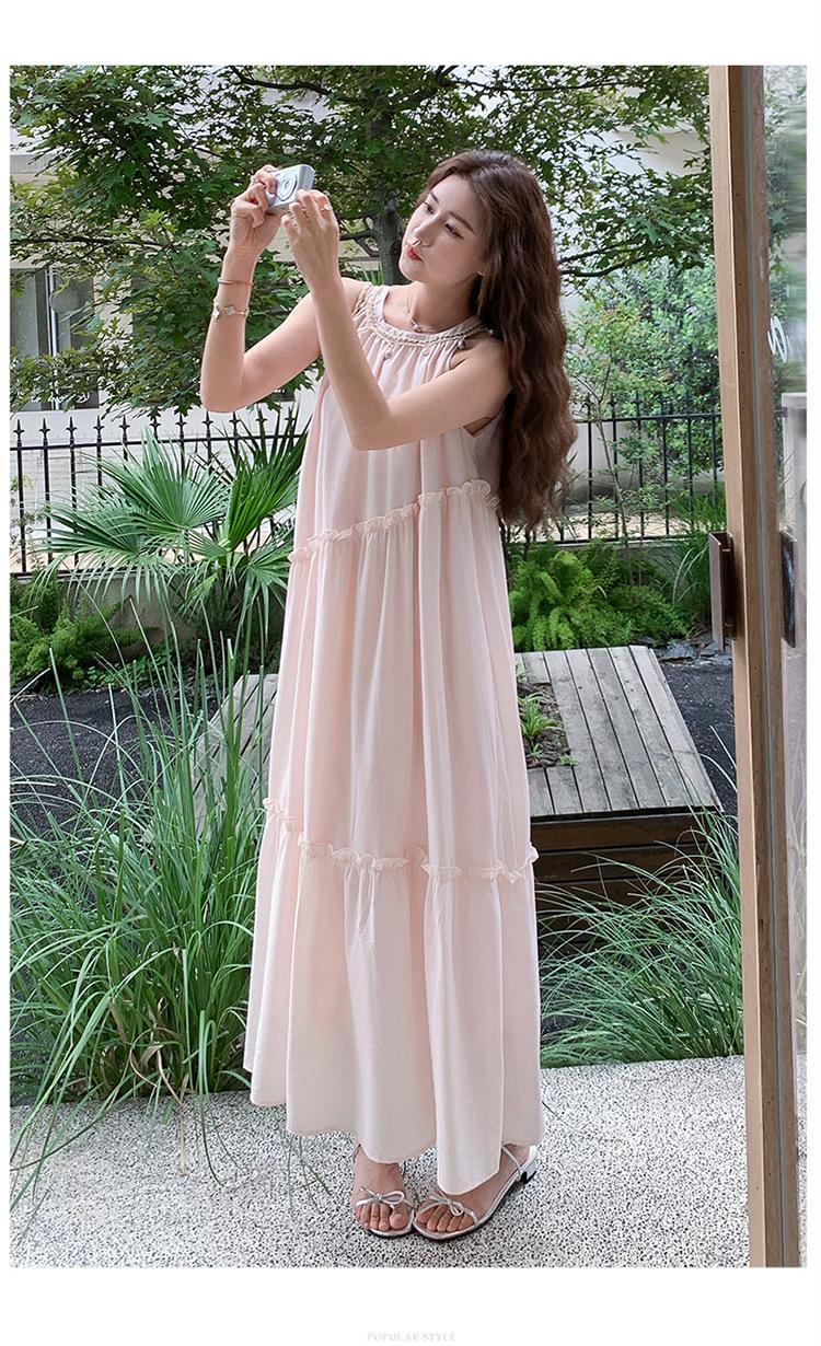 Moda de Verano 2025 Casual Vacaciones Vestido de Hada Elegante Francés Tirantes Adelgazante Holgado Playa Vestido Largo