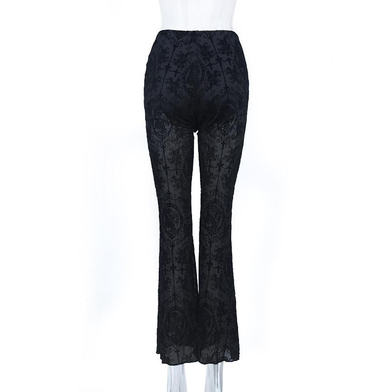 Ropa de mujer transfronteriza al por mayor 2025 estilo europeo y americano verano sexy chica hot oscuro slim encaje cintura alta pantalones acampanados mujer
