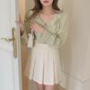 Verano Nuevo Estilo Estilo Francés Elegante y Dulce Camisa con Cuello de Flores Falda de Cintura Alta Conjunto de Dos Piezas