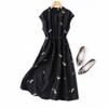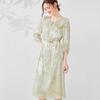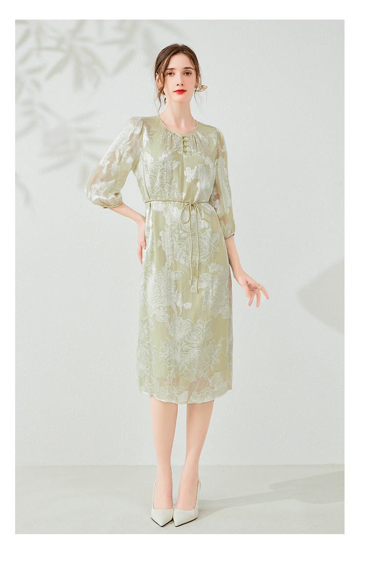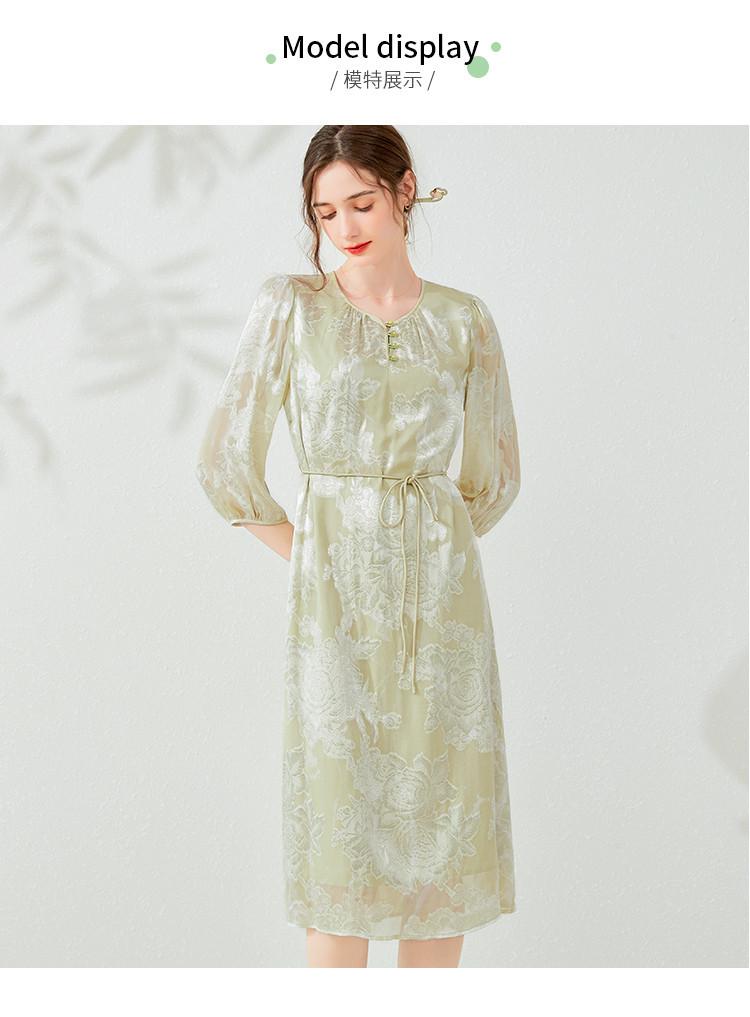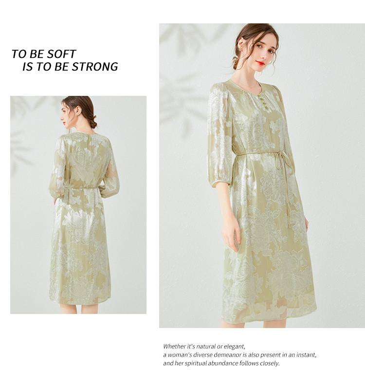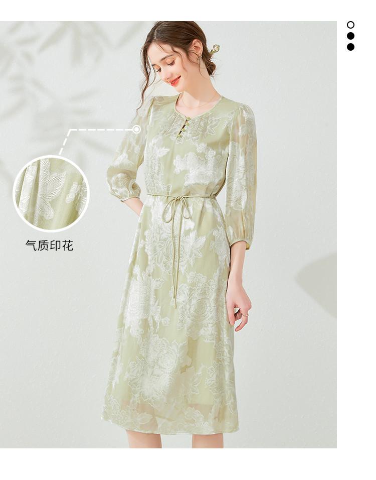 [100% seda de morera] verano temperamento elegante estilo nacional suave jacquard falda hebilla vestido de seda mujer
