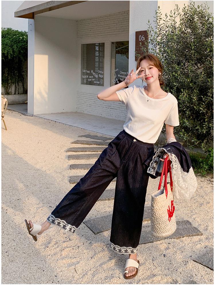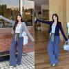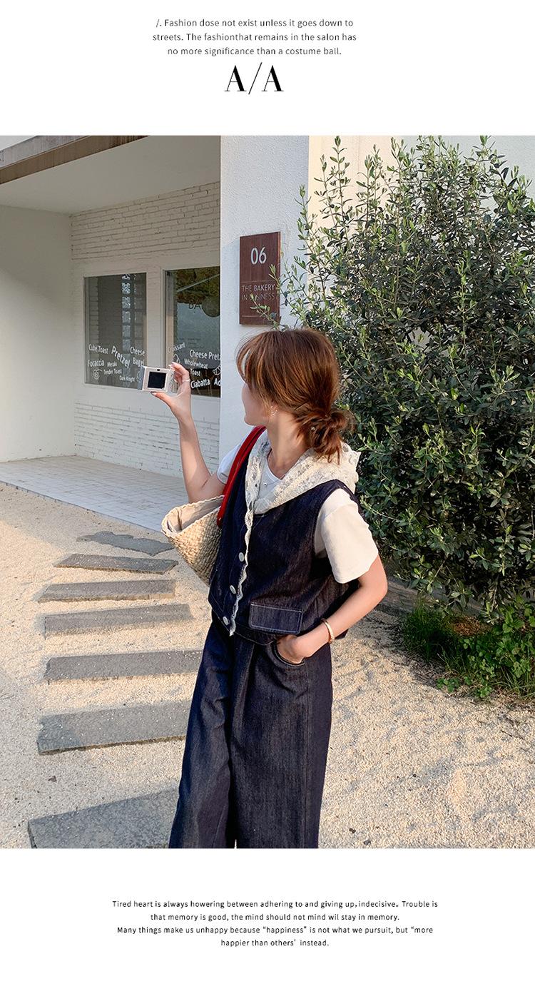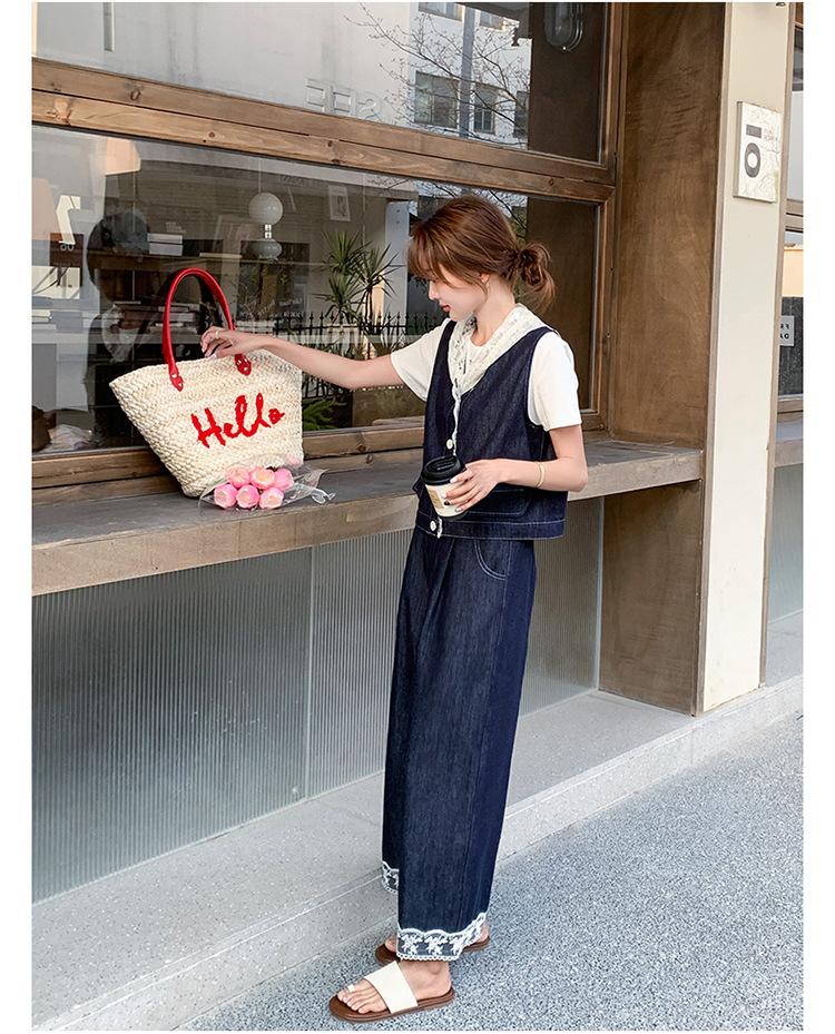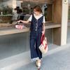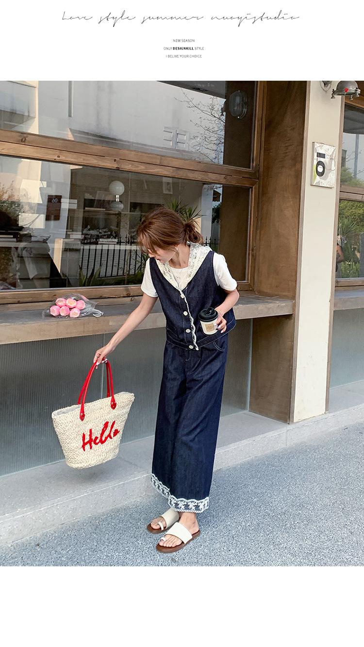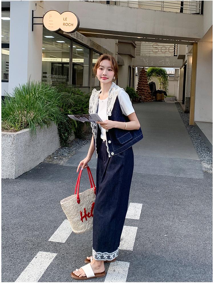 Conjunto de Tres Piezas de Chaleco de Mezclilla con Capucha de Encaje para Mujer Verano 2025, Pantalones de Pierna Ancha, Hermoso Traje de Estilo Coreano a la Moda