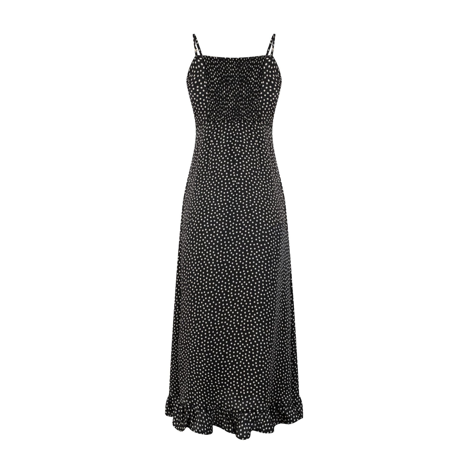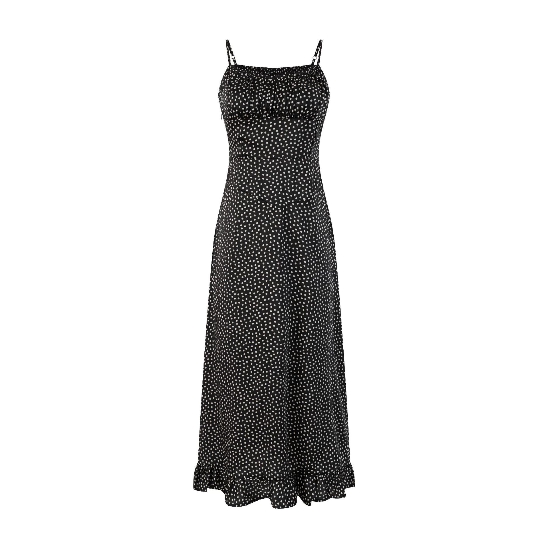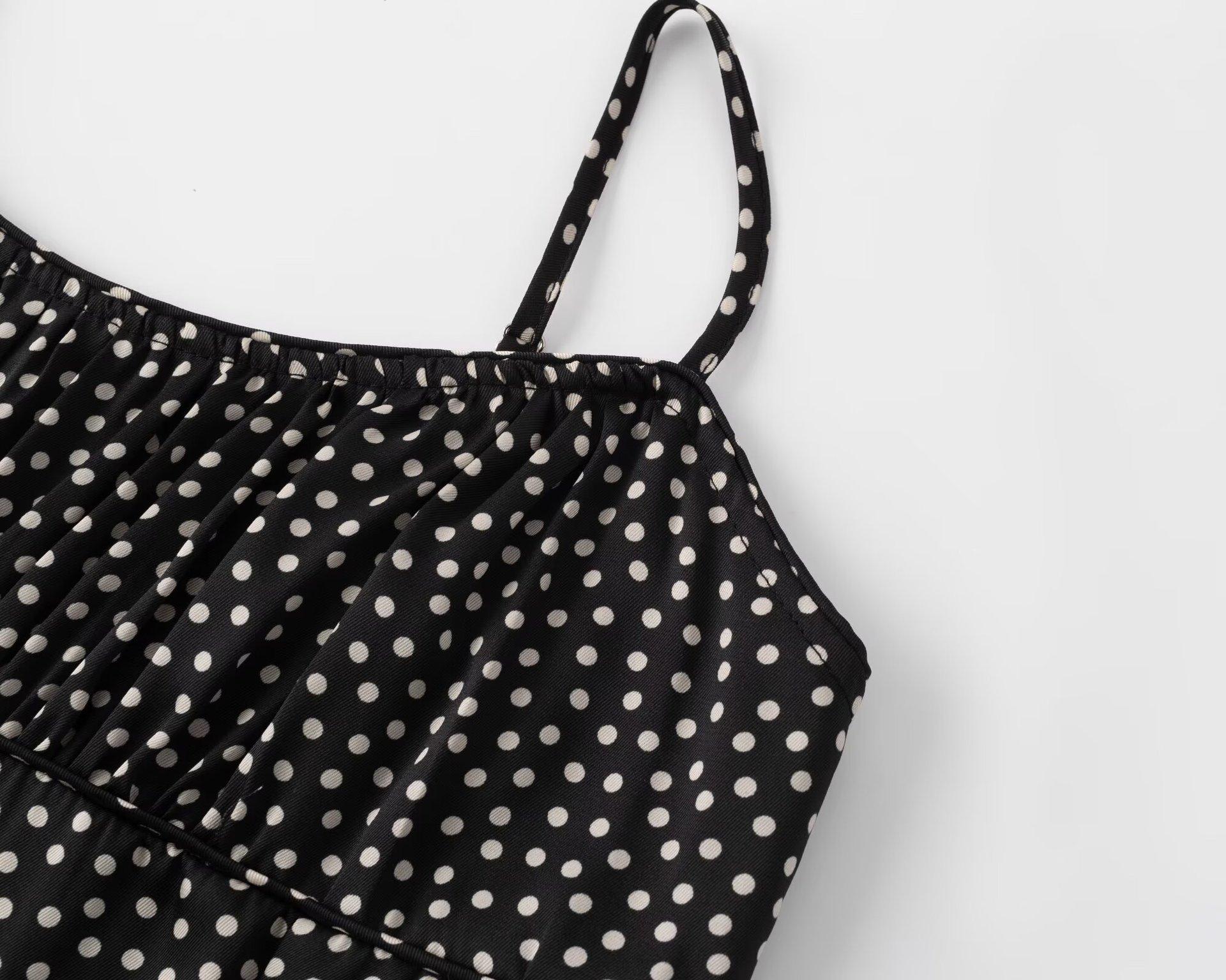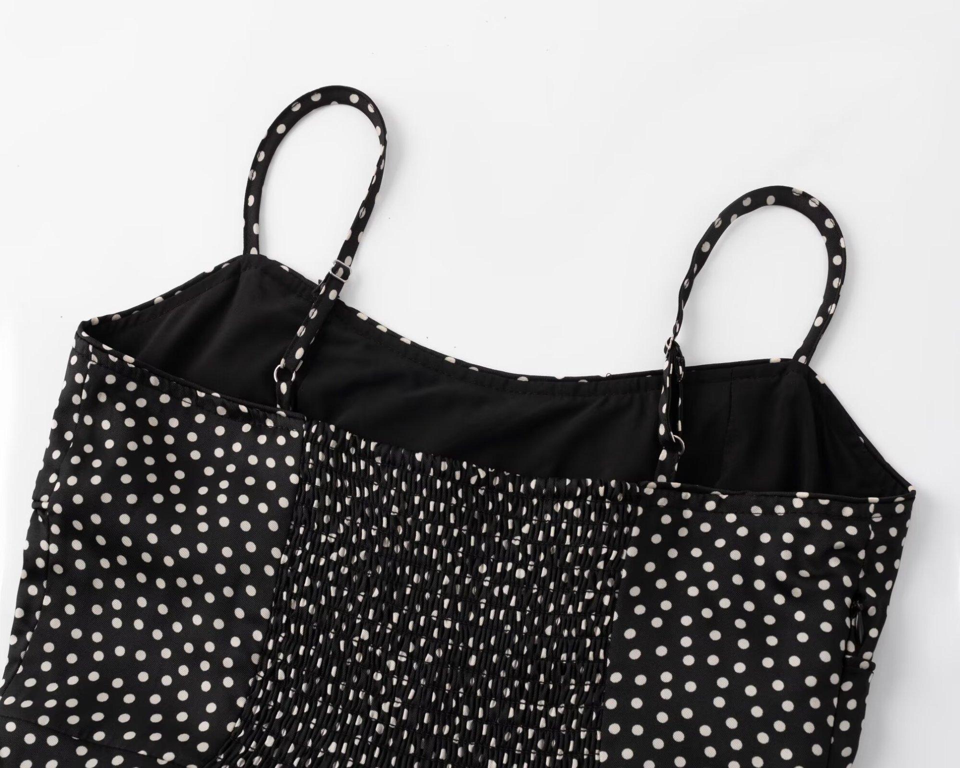 25103-Estilo Europeo y Americano Sexy Sexy Expuesto Mochila Falda de Cadera para Mujer 2025 Nuevo Vestido con Tirantes Falda Larga de Lunares