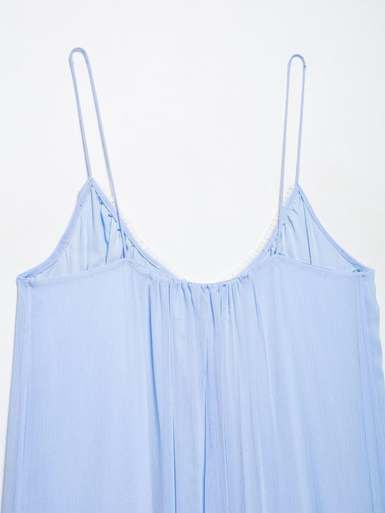 Ropa de Mujer al por Mayor para Comercio Exterior Transfronterizo 2025 Verano Nuevo Estilo Empalme Descubierto Vestido Delgado Midi con Tirantes para Mujer