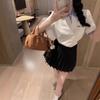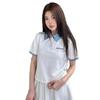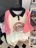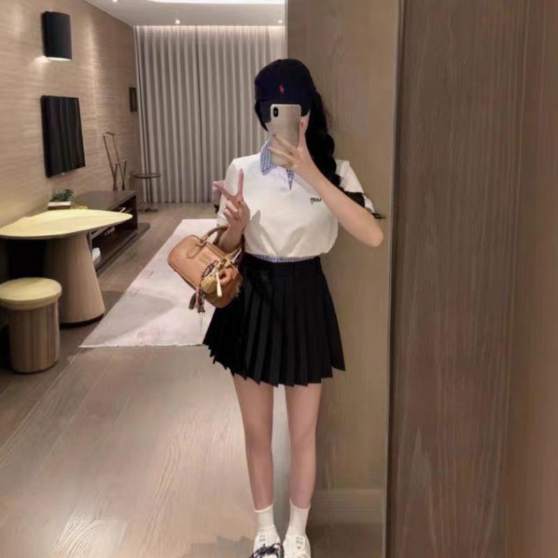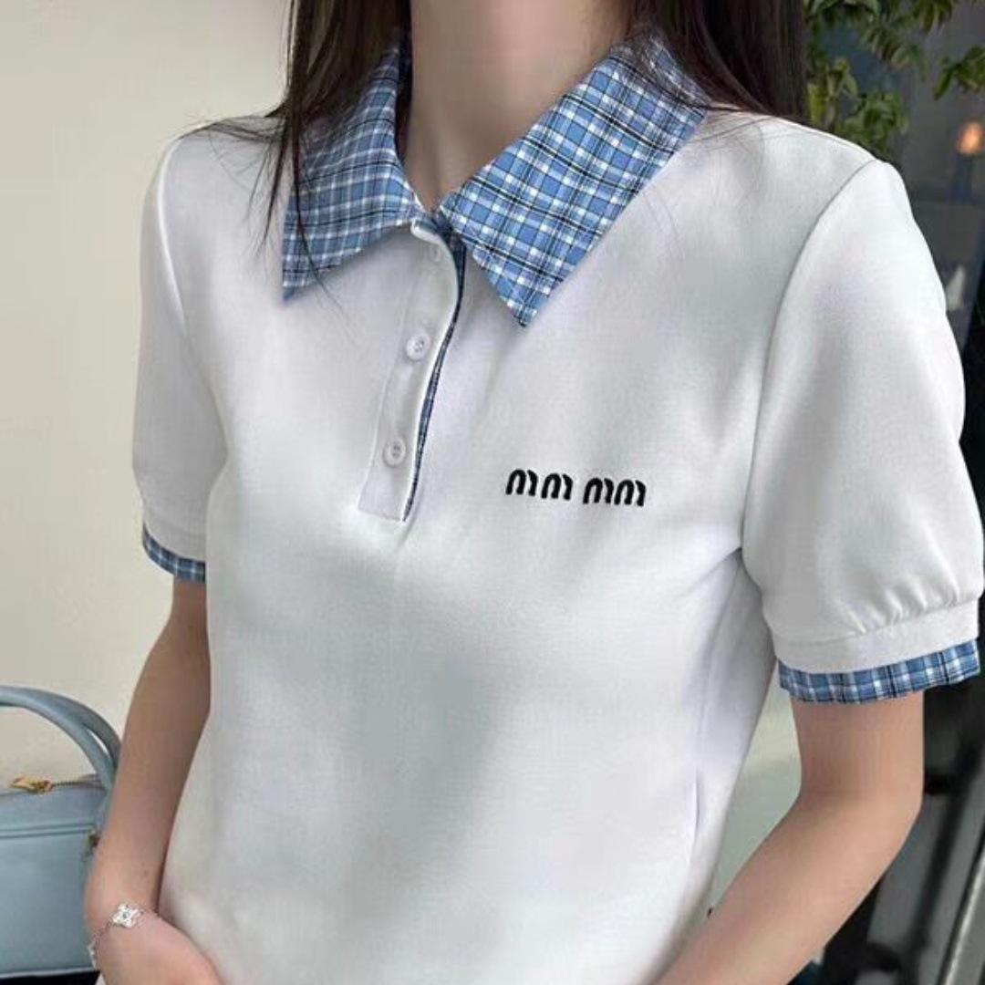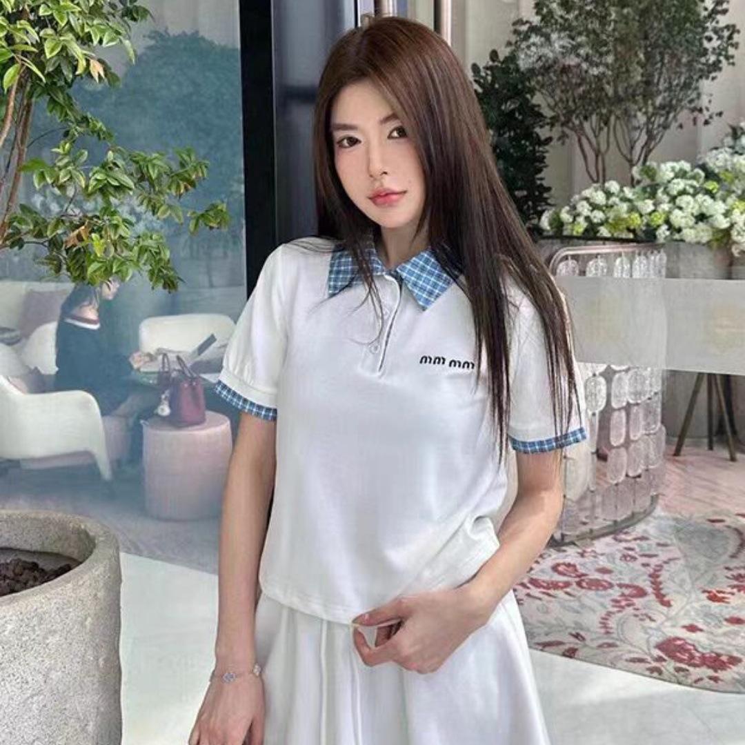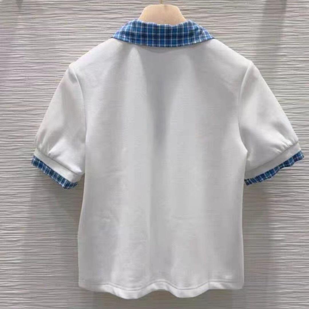 Versión Alta en stock Camiseta de Manga Corta con Cuello Polo y Costuras Falsas de Dos Piezas para Mujer, Top de Estilo Universitario que Reduce la Edad, Trendy de Manga Corta para Pareja