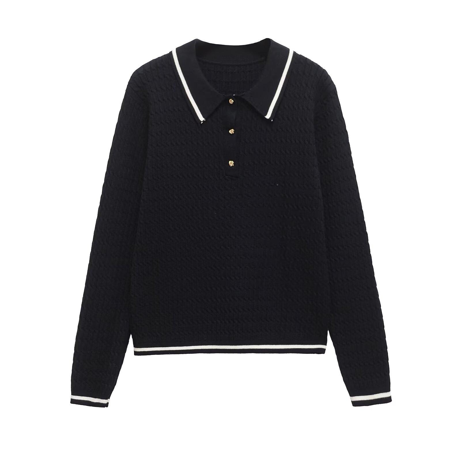Punto Casual Popular Europeo y Americano Transfronterizo con Cuello Polo de Color Contrastante