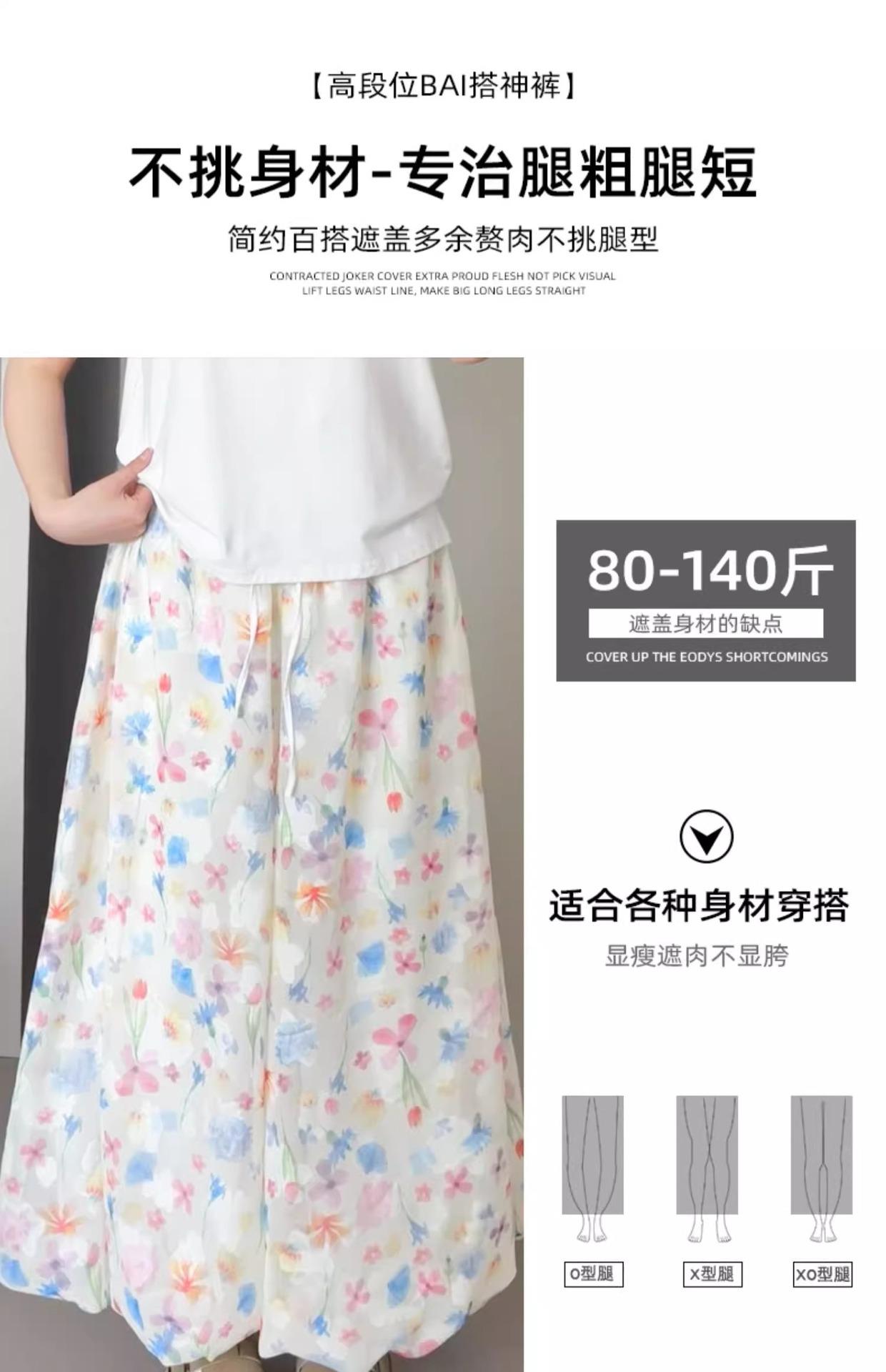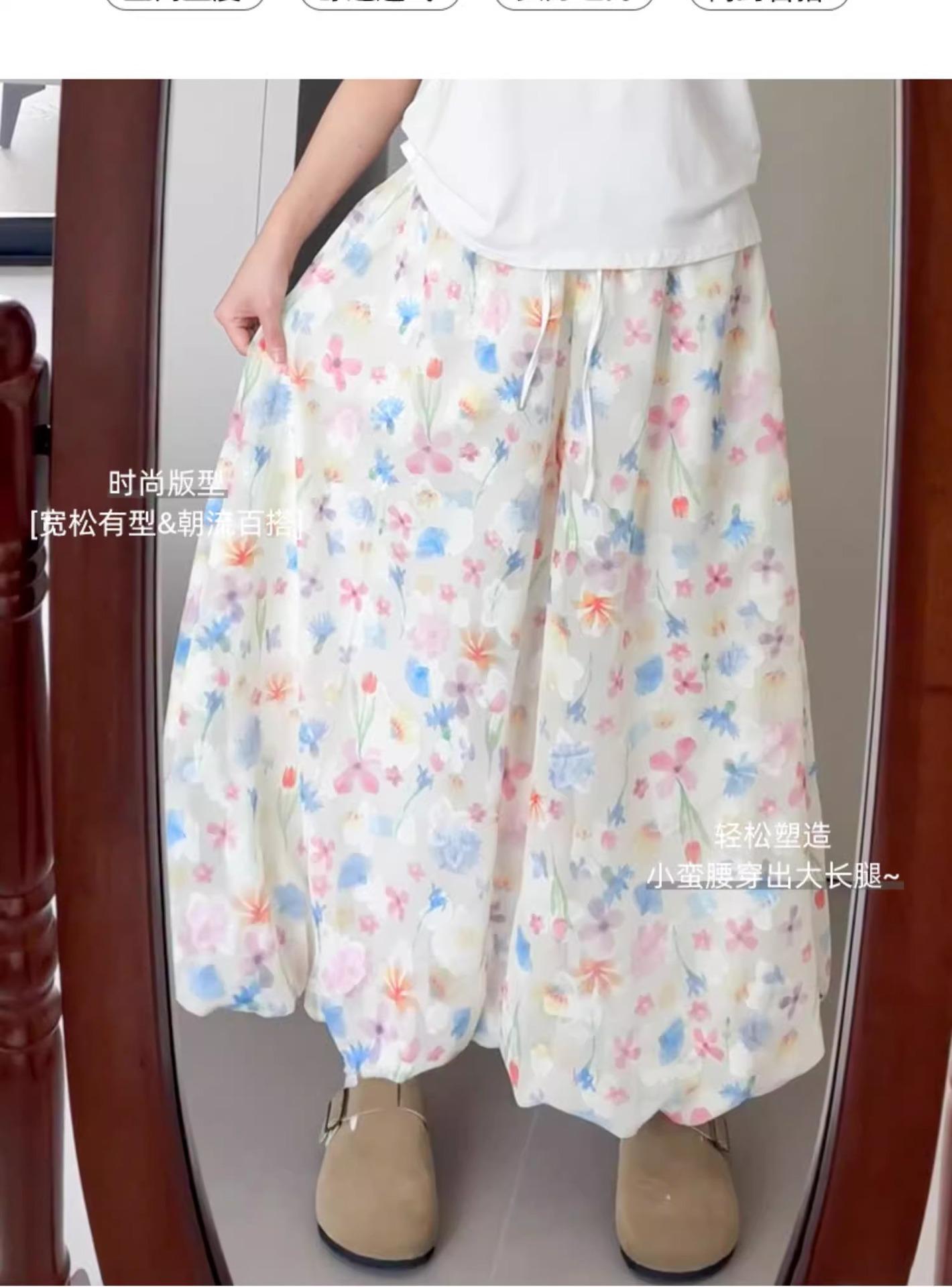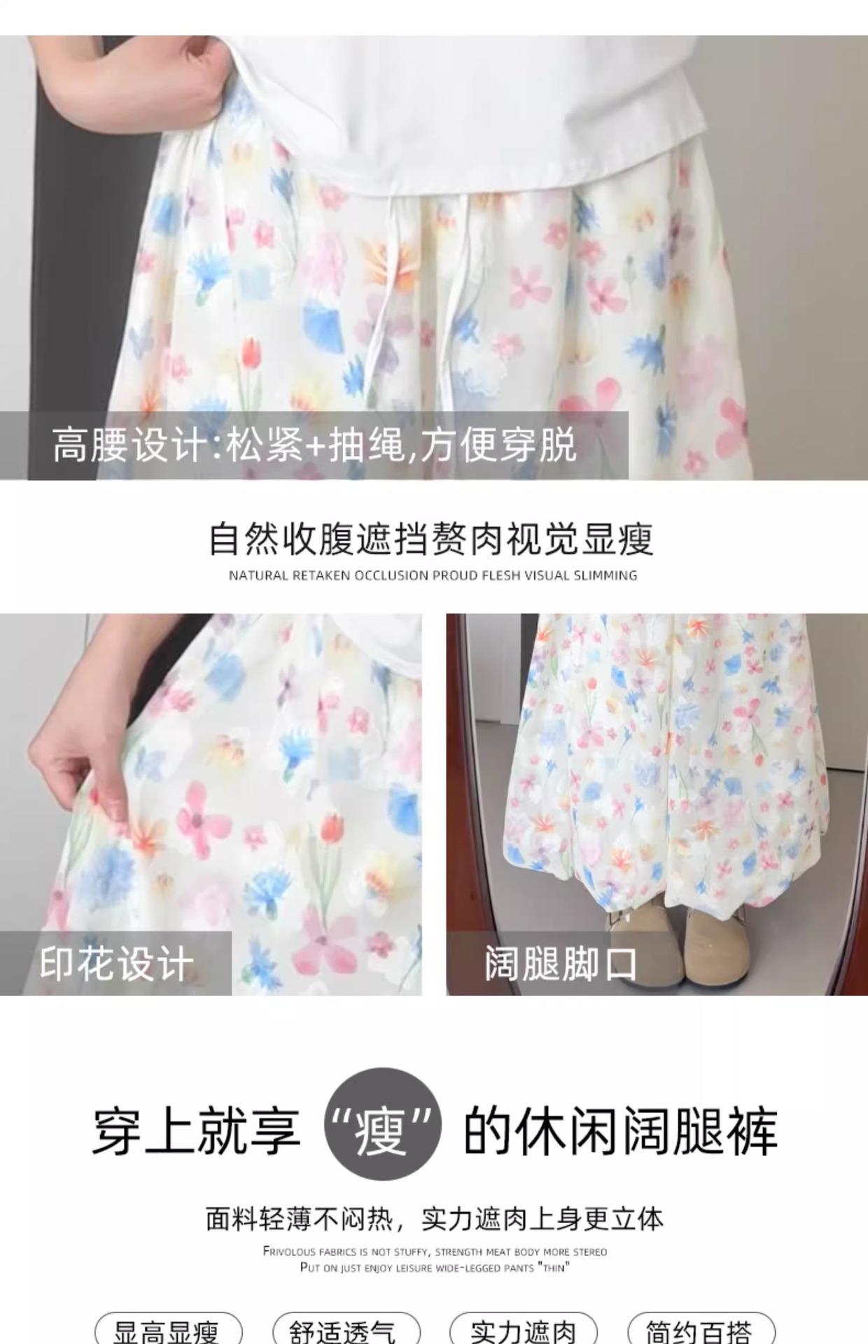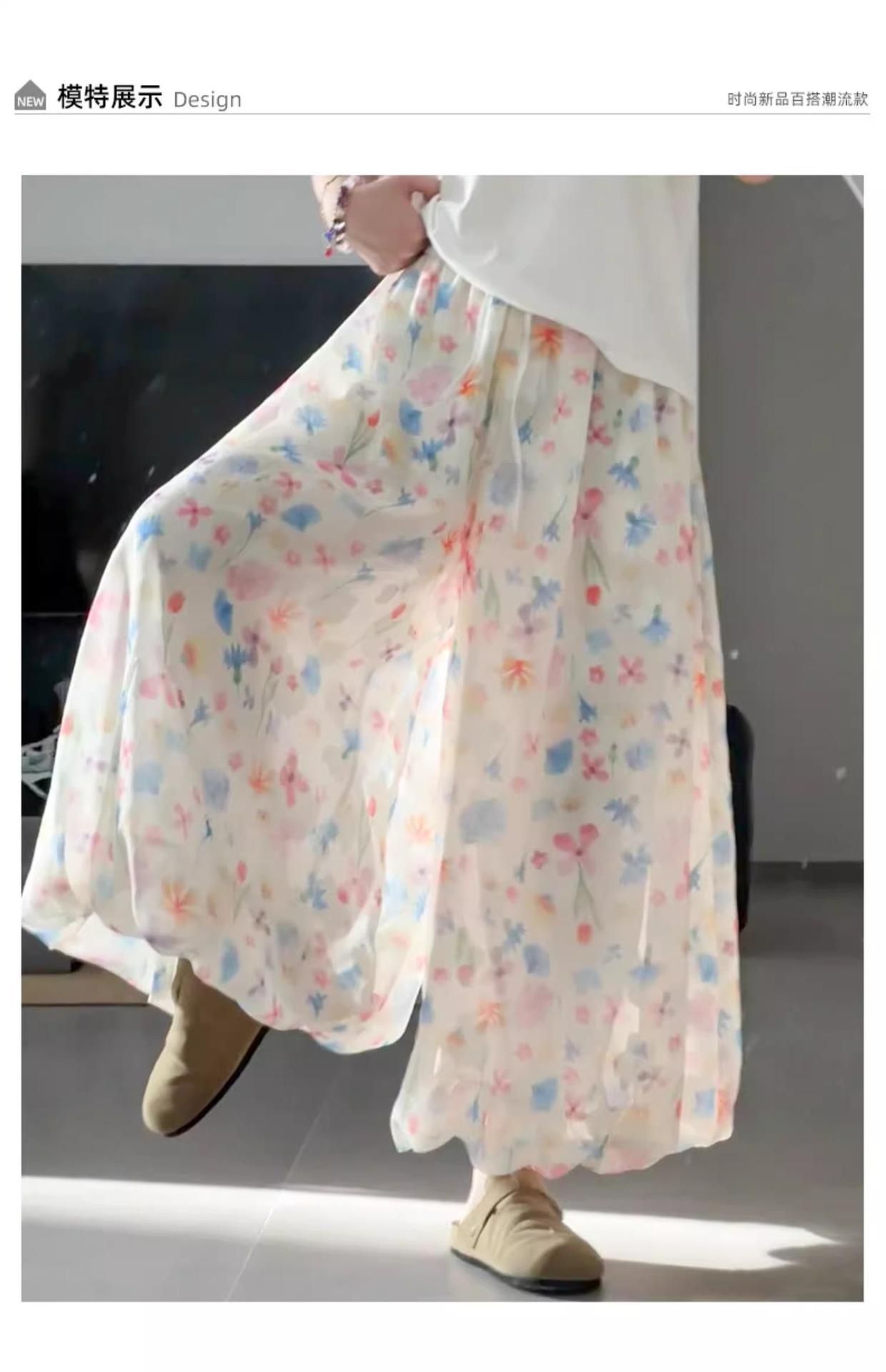 Pantalones Falda Capullo de Flor Blanco para Mujer Verano Nuevo Sentido del Diseño Francés Retro Floral Pierna Ancha Cintura Alta Adelgazantes Pantalones Frescos