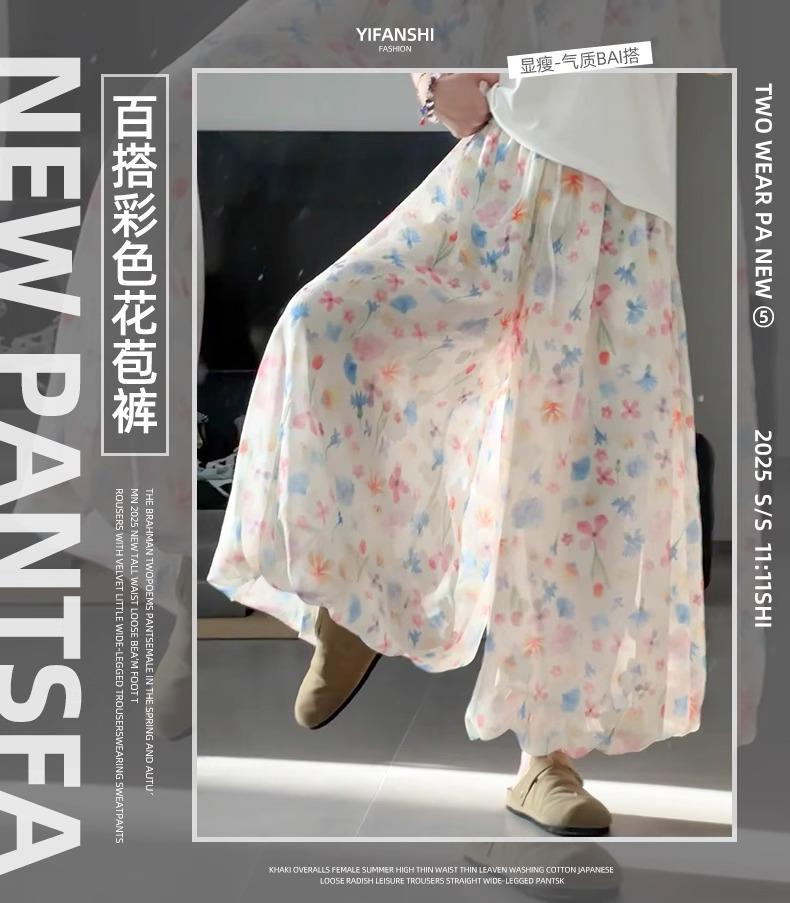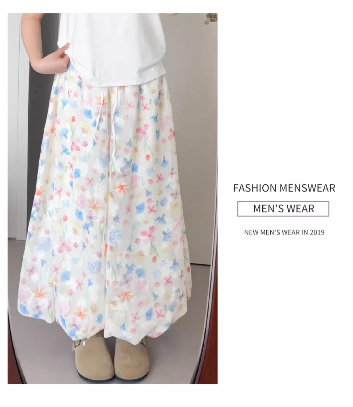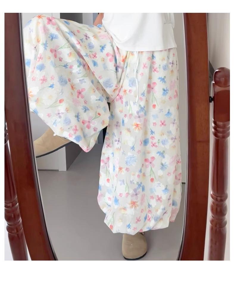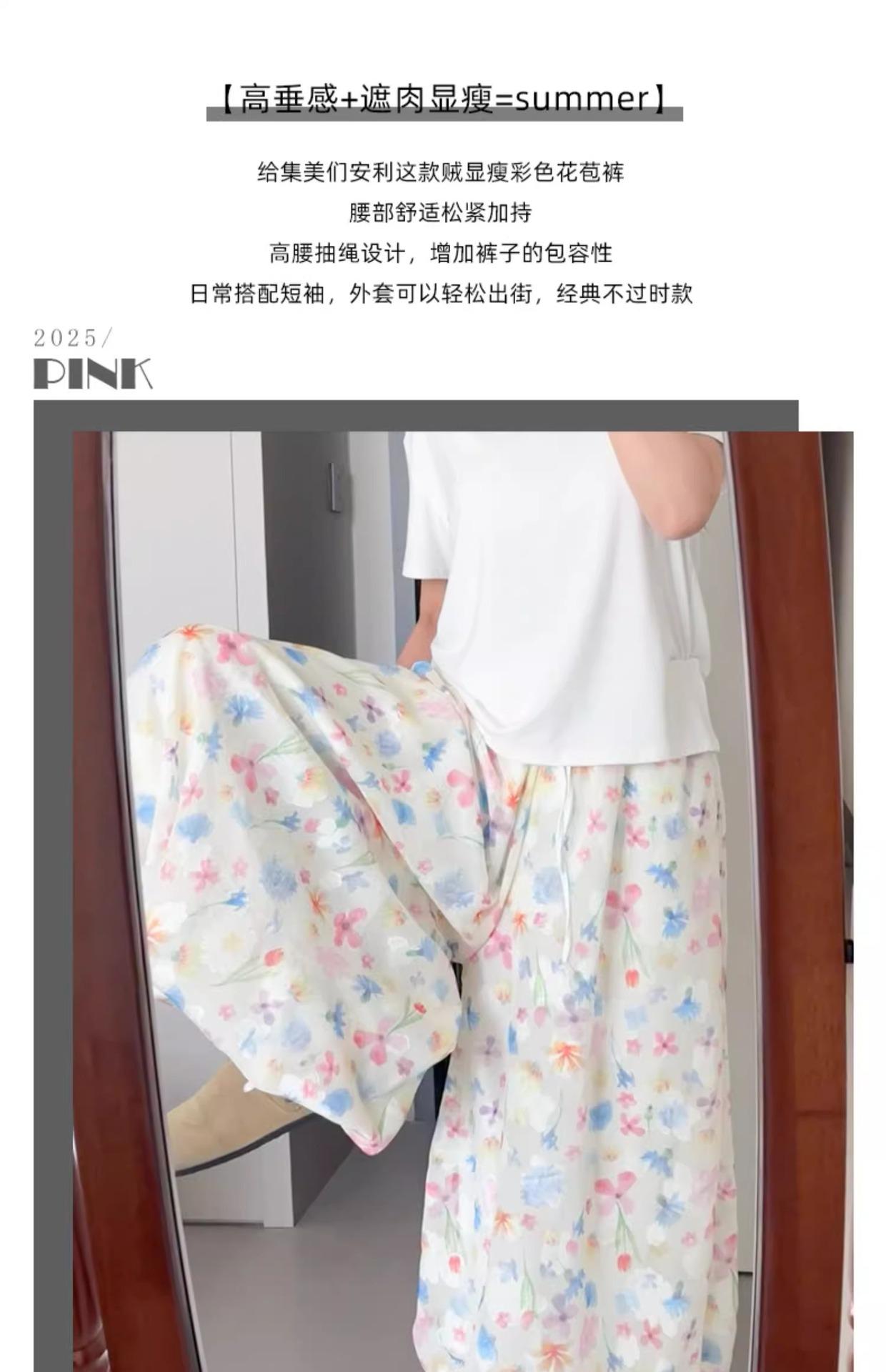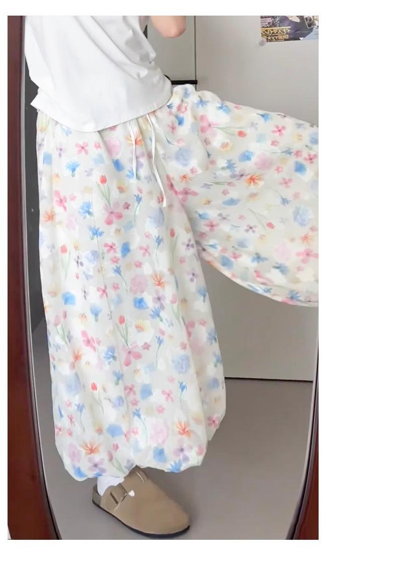 Pantalones Falda Capullo de Flor Blanco para Mujer Verano Nuevo Sentido del Diseño Francés Retro Floral Pierna Ancha Cintura Alta Adelgazantes Pantalones Frescos