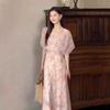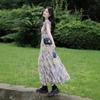 Verano Nuevo Estilo Súper Bonita Única Hermosa Falda Hermoso Vestido Elegante Francés Morado Estampado de Alta Gama para Mujer
