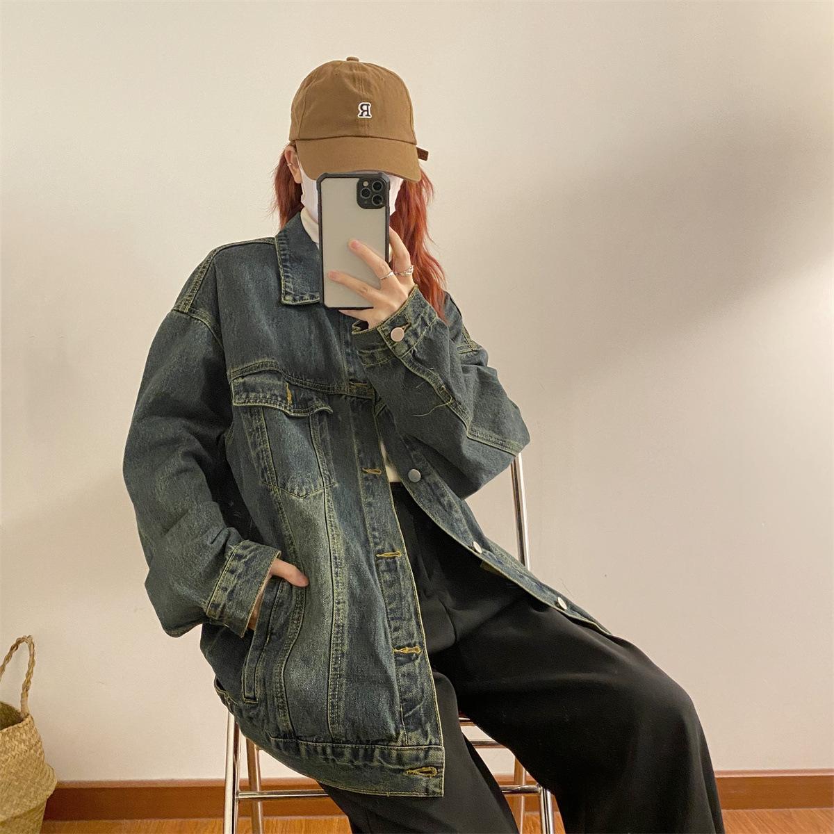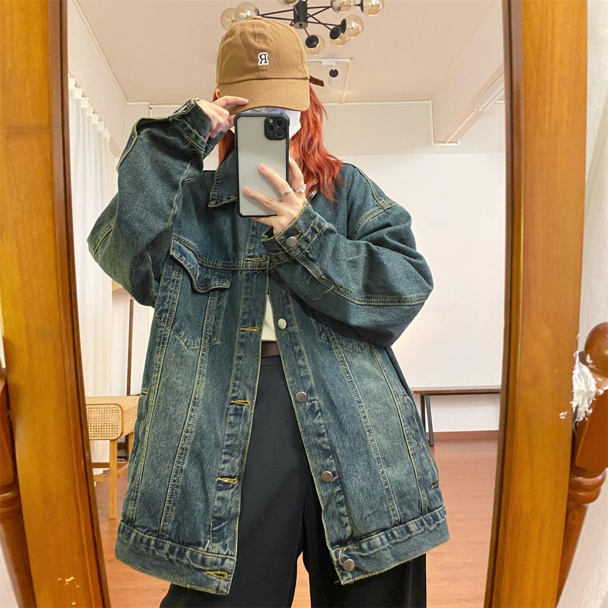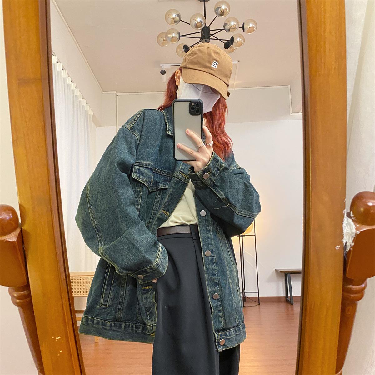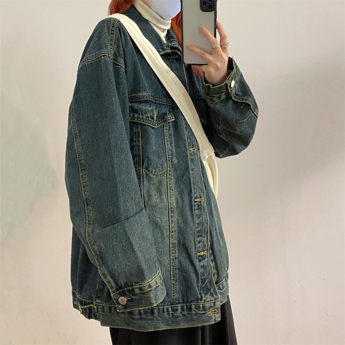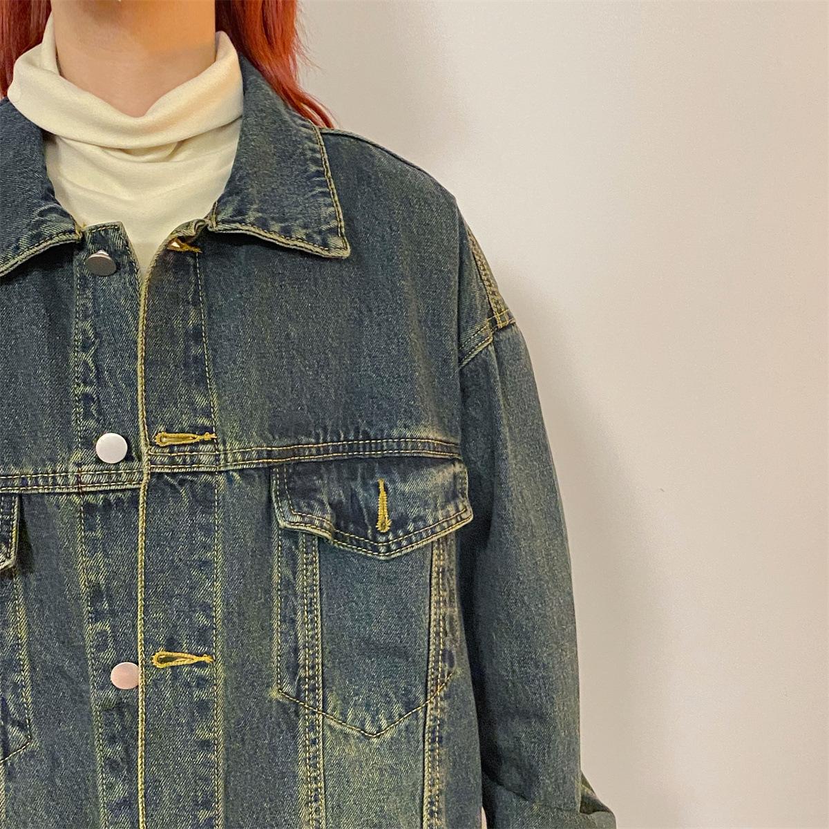 Chaqueta de mezclilla versátil de estilo retro coreano desgastado para mujer Otoño Nuevo Nicho Casual Slim Chaqueta de longitud media Top