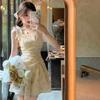 Vestido bandolera laminado brillante de moda nueva primavera 2025 retro francés al por mayor