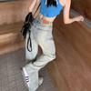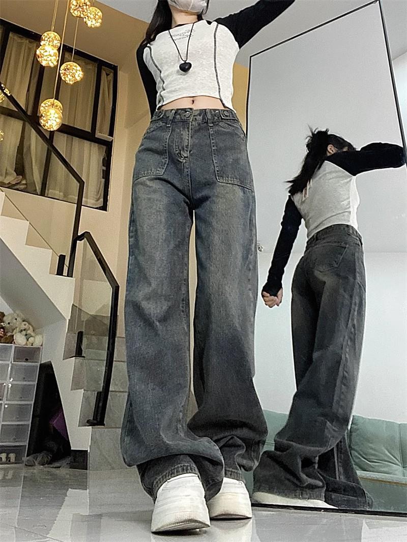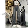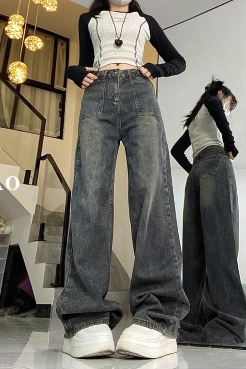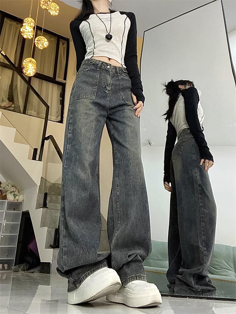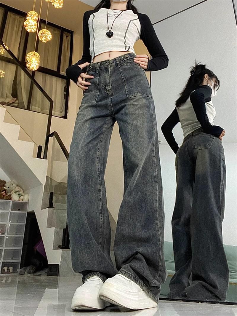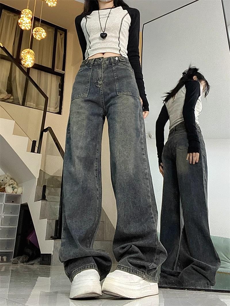 Jeans para Mujer Verano 2025 Nuevo Talla Grande Gordo mm Americano Retro Slim Holgado Cintura Alta Pierna Ancha Rectos