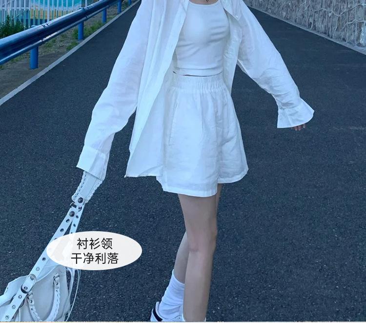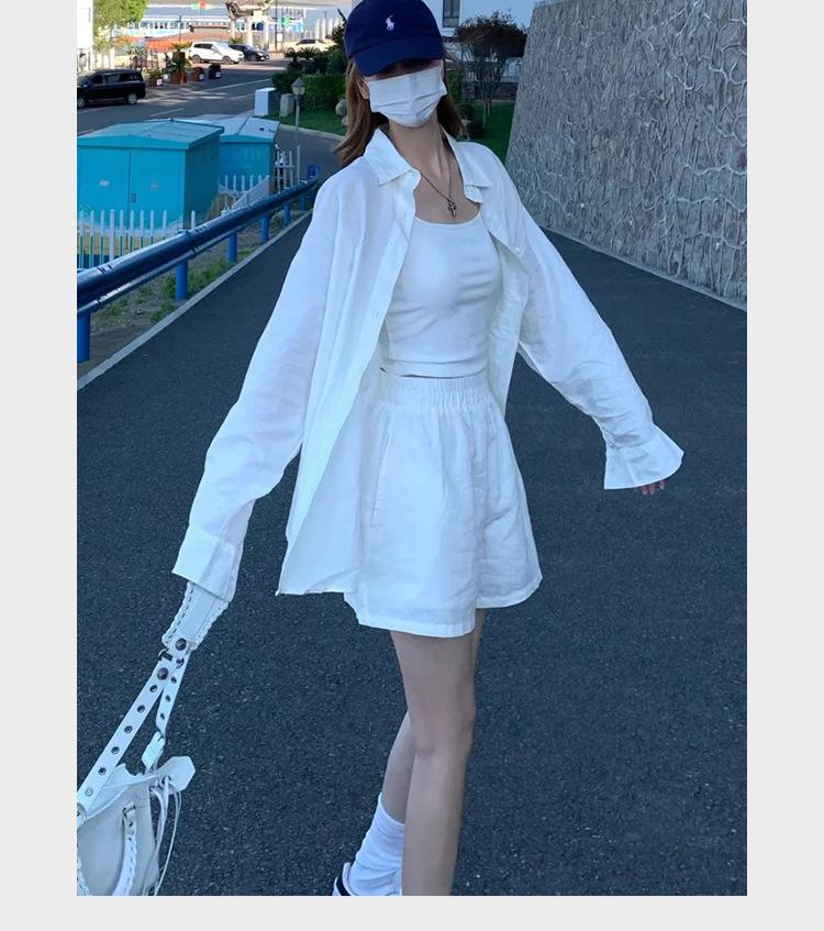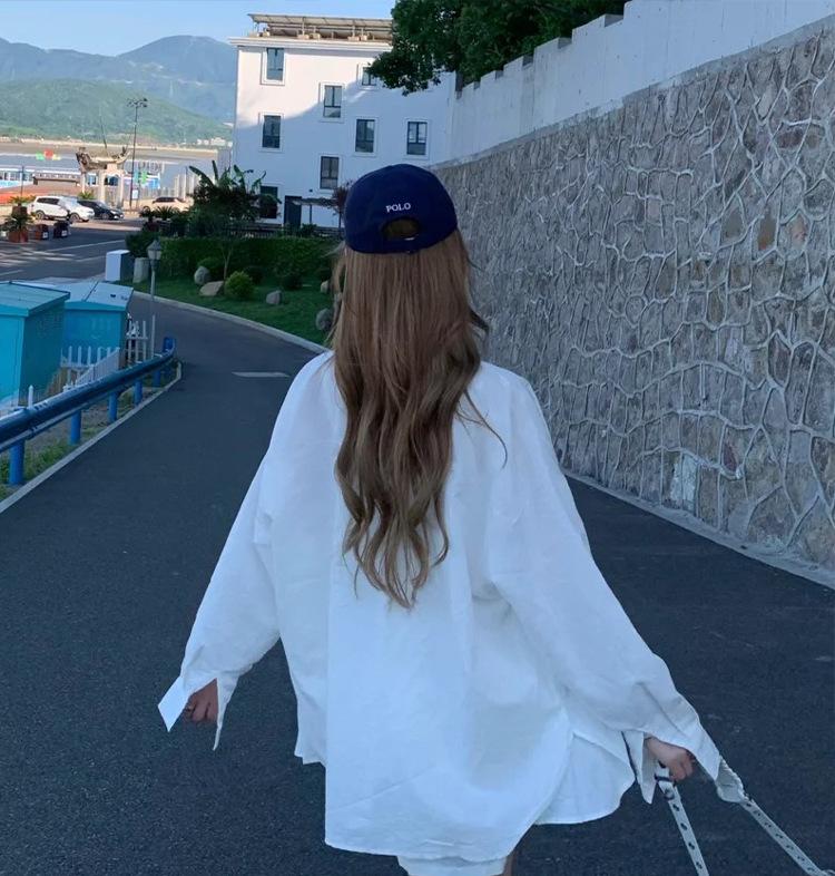 Chaqueta Camisera Blanca para Mujer Verano Delgada Protección Solar Algodón Camisa Cárdigan con Estilo Holgado Perezoso Top Exterior