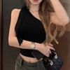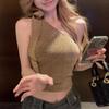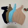 Camisola sexy con cuello halter y hombros descubiertos para mujer, de verano, sin mangas, con lazo, corta, con espalda descubierta