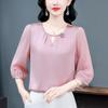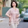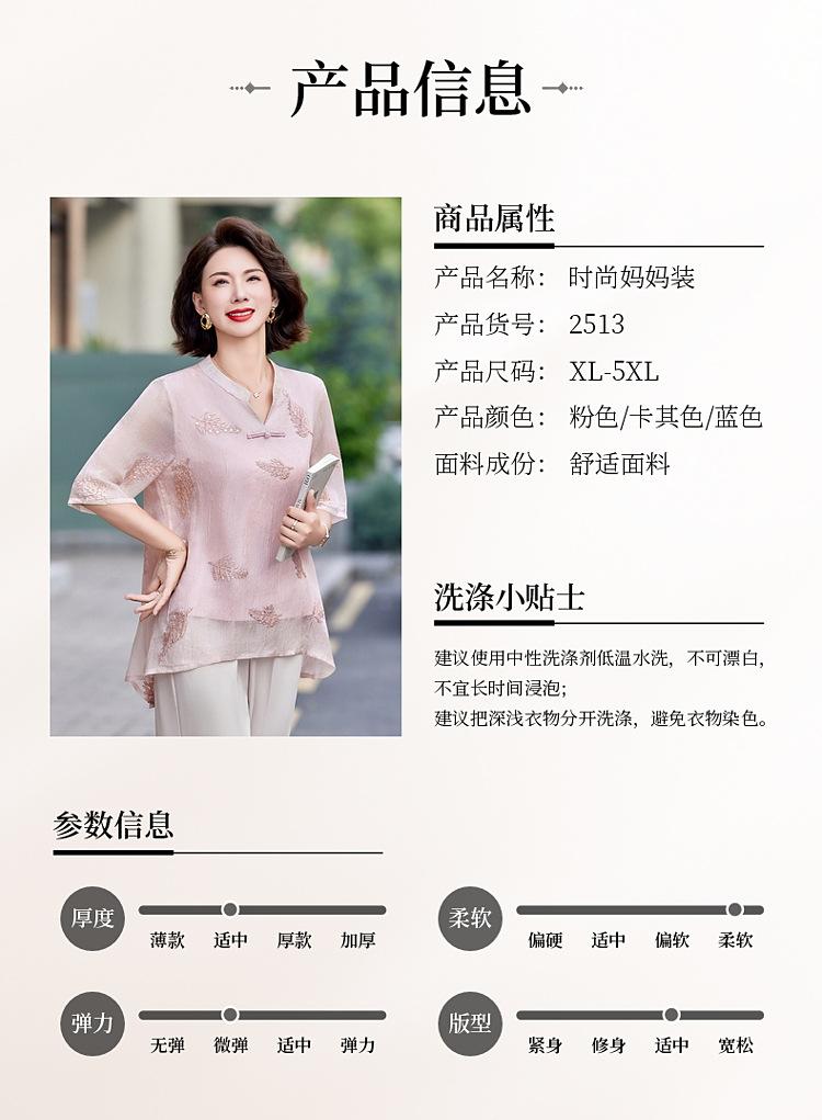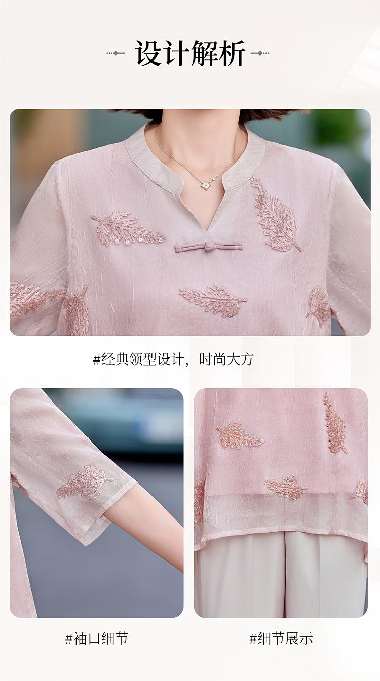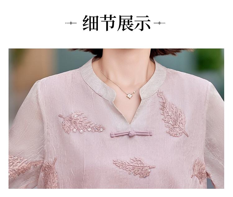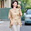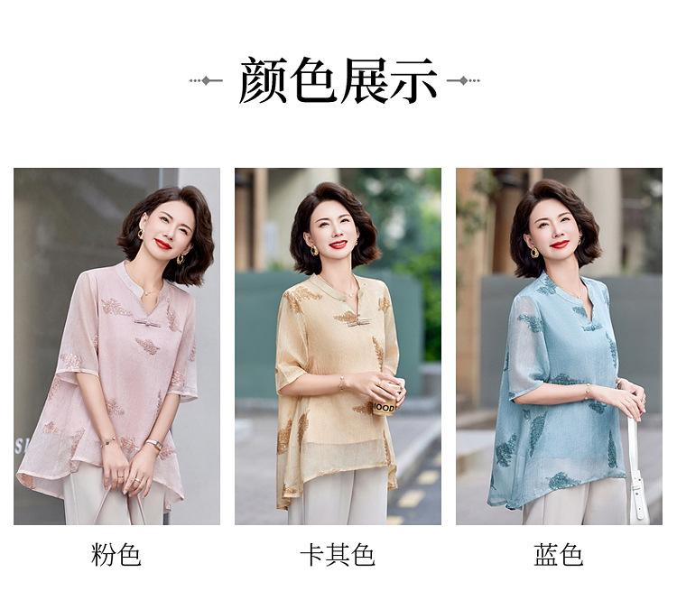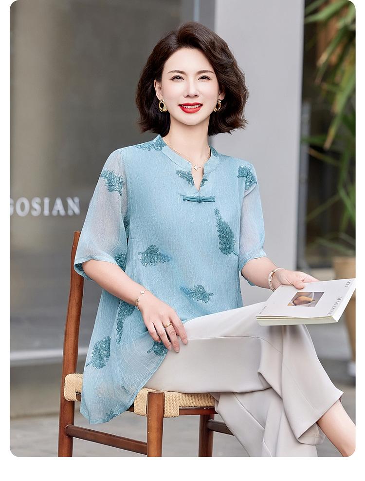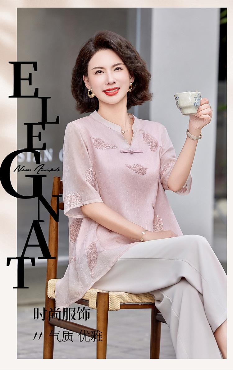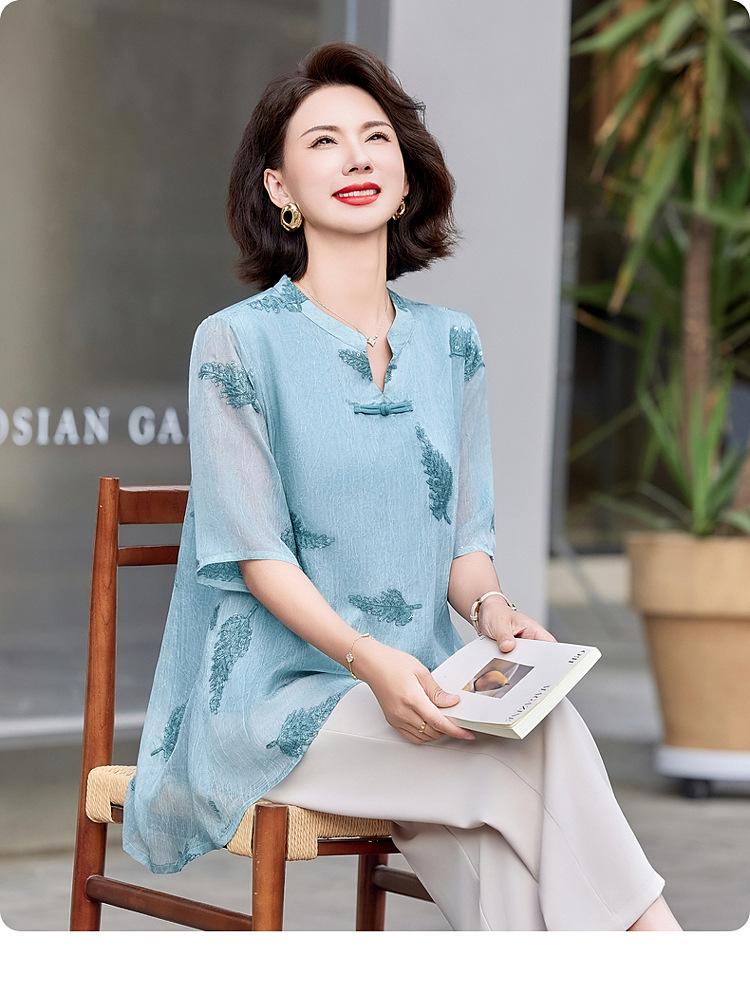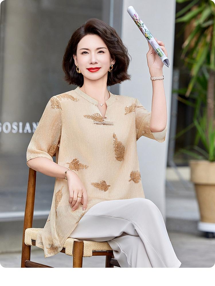 Ropa de Mamá 2025 Nuevos Tops de Verano, Camisetas Elegantes, Camisas de Gasa Sueltas tipo Jersey para Mujeres de Mediana Edad y Mayores