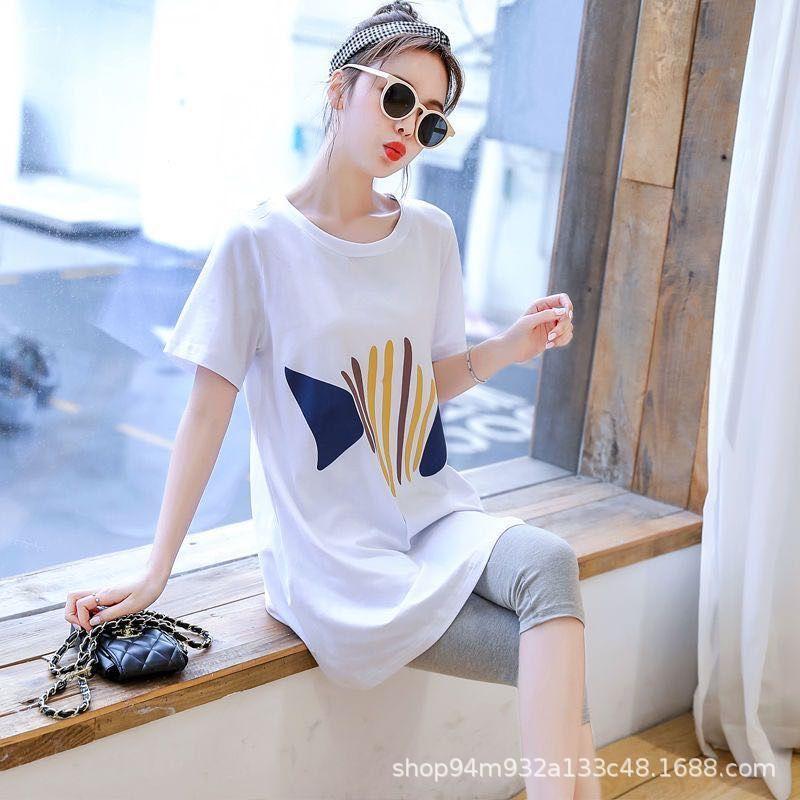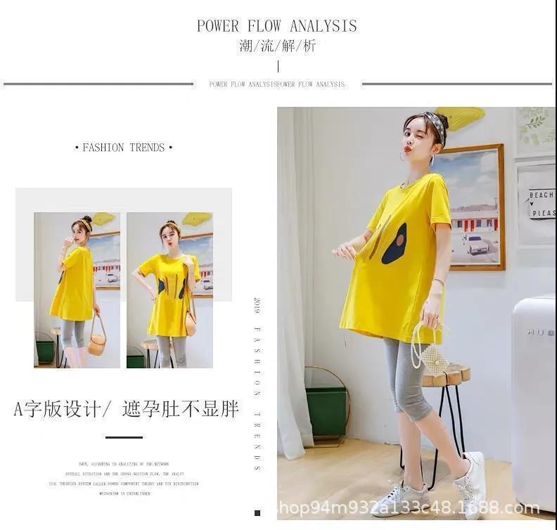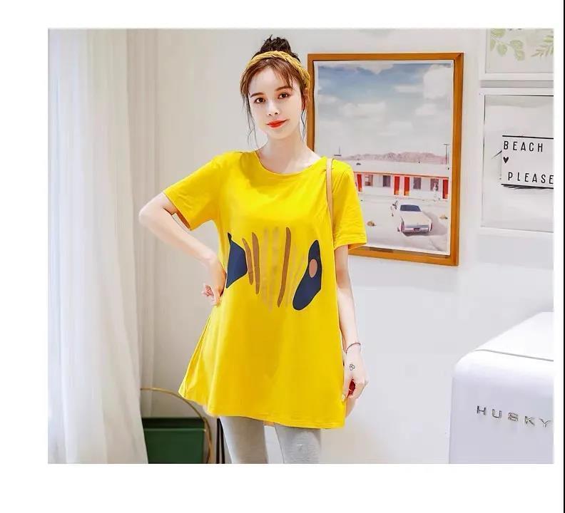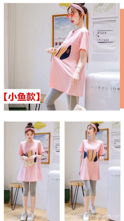 Tops de Maternidad Manga Corta Estilo Coreano Primavera y Verano Talla Grande Ropa Exterior Vestido de Embarazo Nueva Moda Estilo Coreano para Mujeres Pequeñas