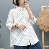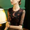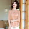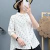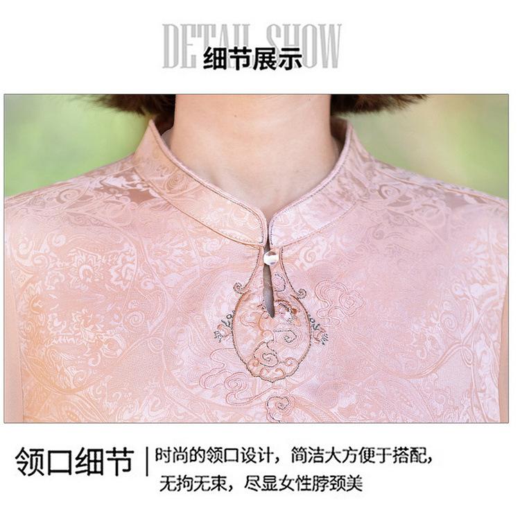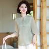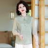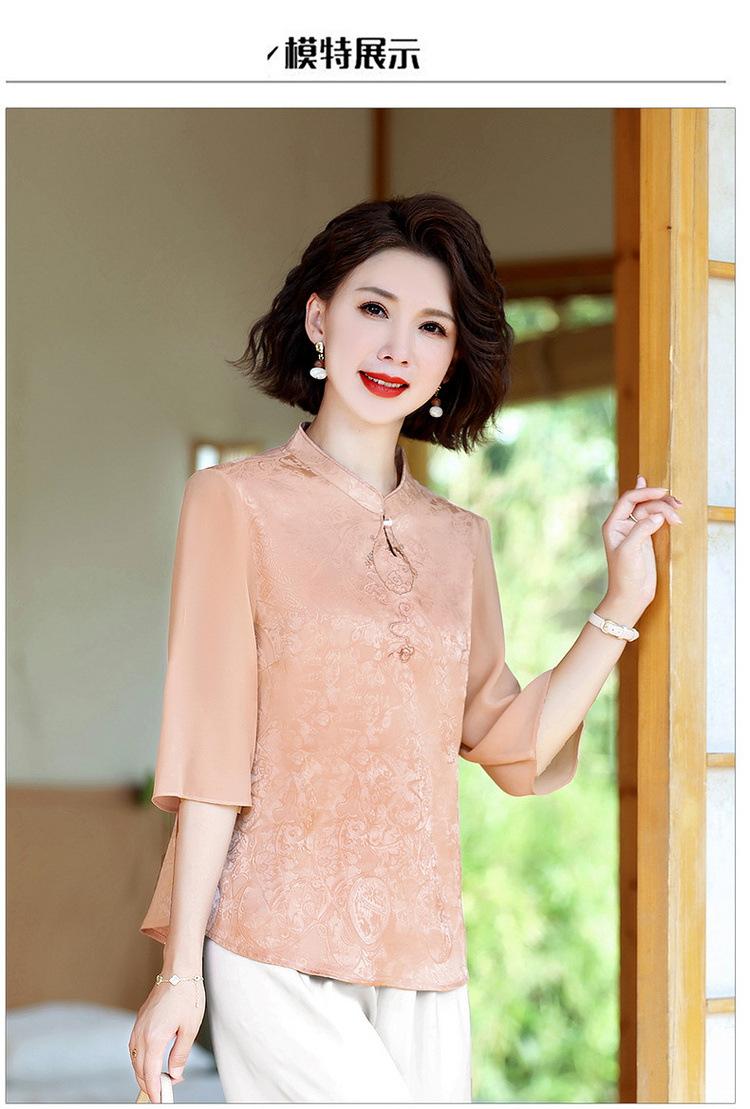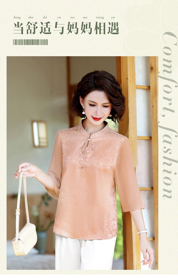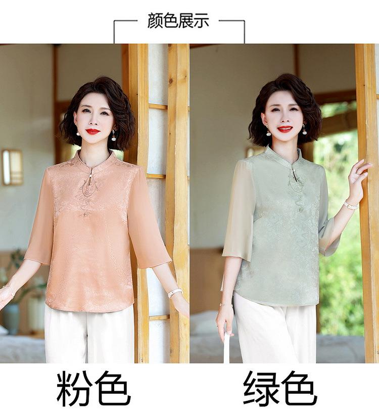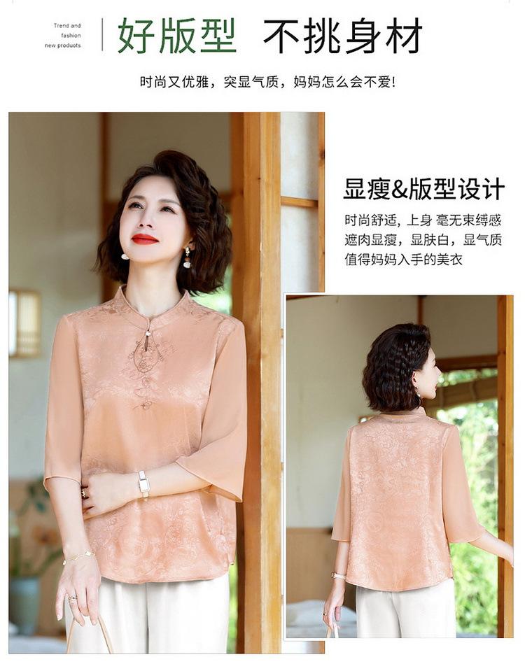 Elegante y Versátil Camisa de Verano Nueva con Cuello Mao para Mamás, Blusa Moderna con Manga Media Empalmada, Camiseta Adelgazante