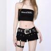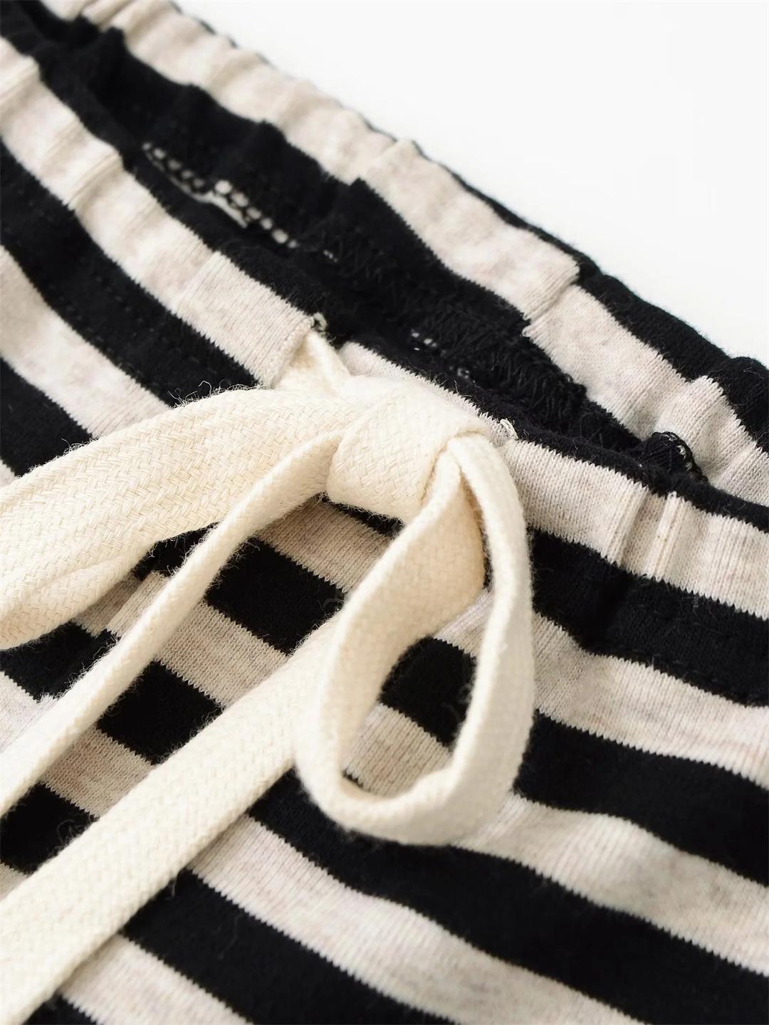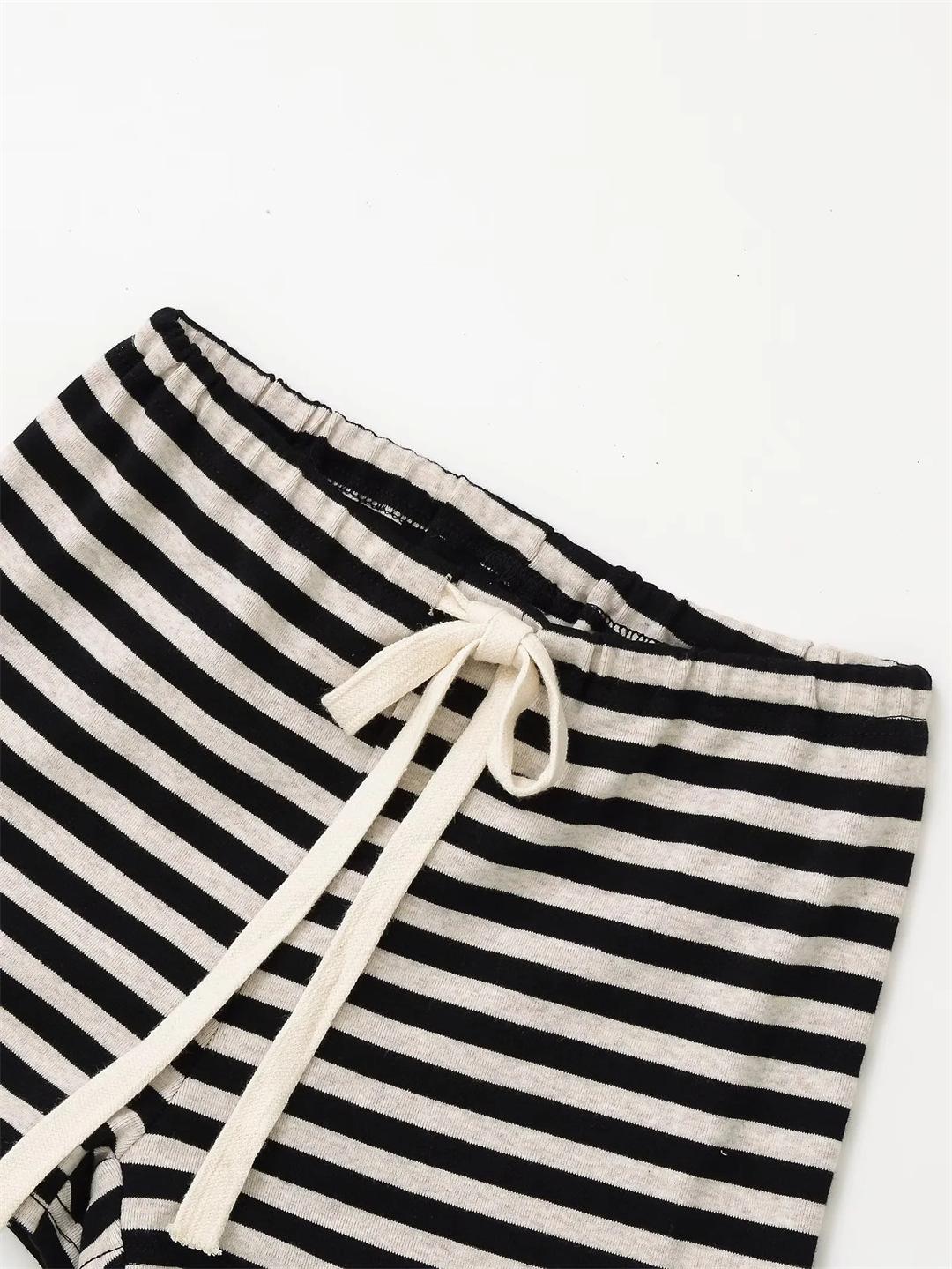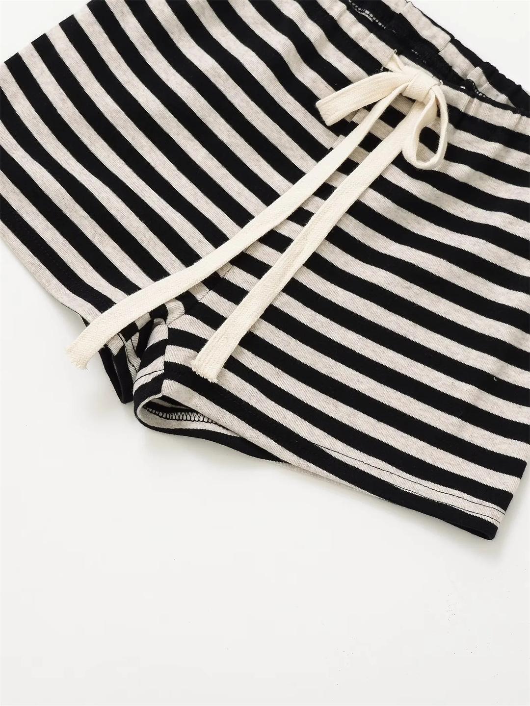 Shorts Americanos Retro de Chica Hot con Bloque de Color a Rayas, Elásticos con Cordón, Tiro Bajo, Sexy, Ajustados a la Cadera, Slim, Hot Pants