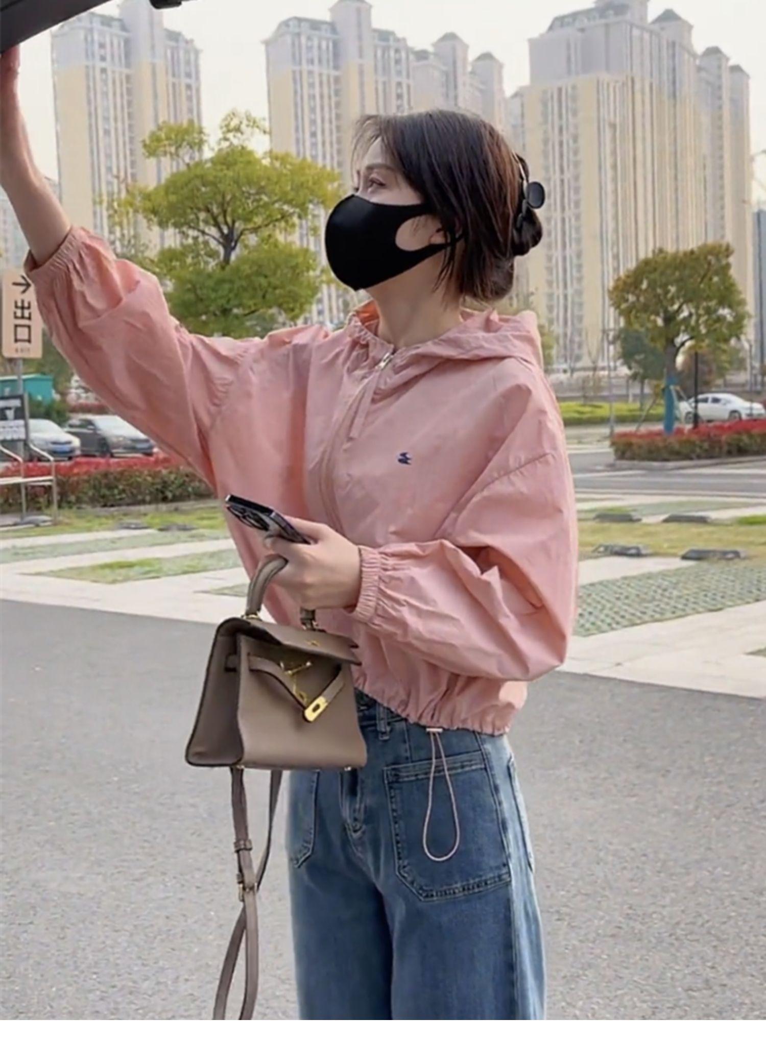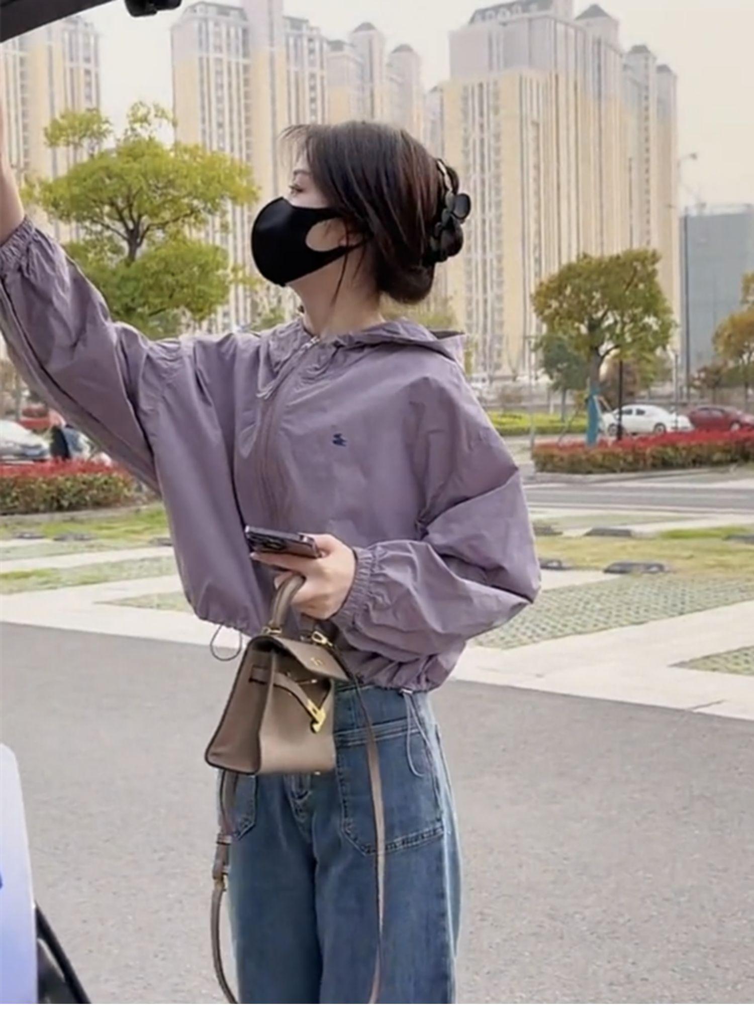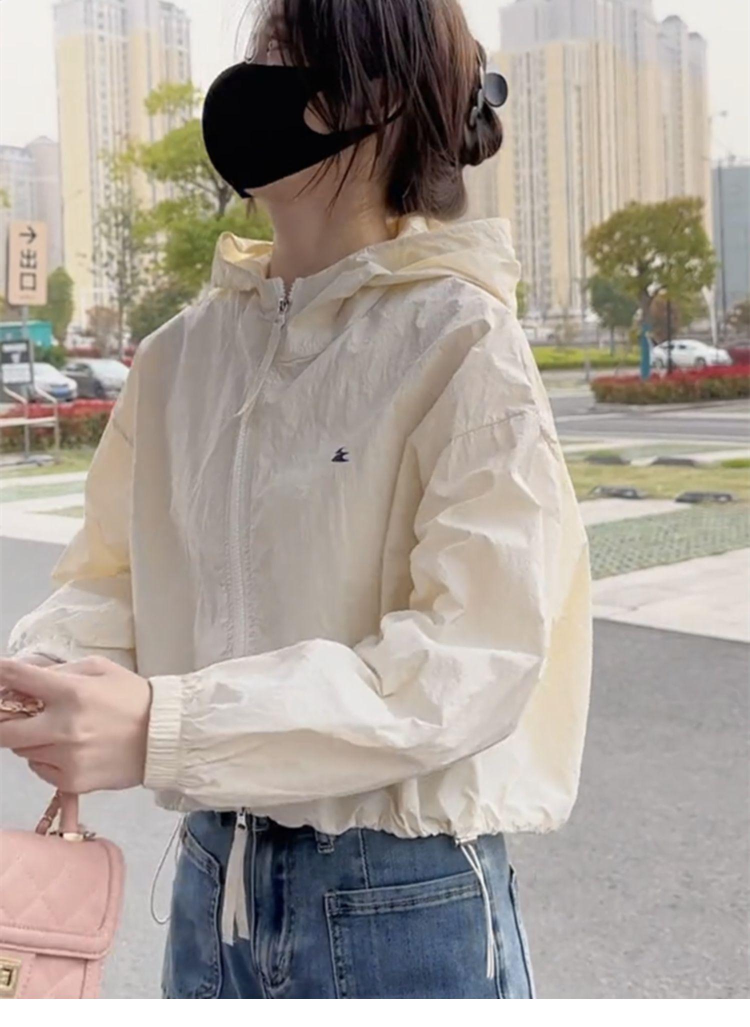 Ropa de Protección Solar para Mujer Verano Abrigo Delgado para Mujer Estilo Corto Petite 2025 Nuevo Suelto y Versátil con Capucha Protección Solar