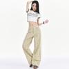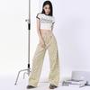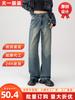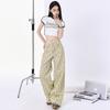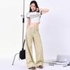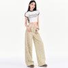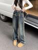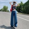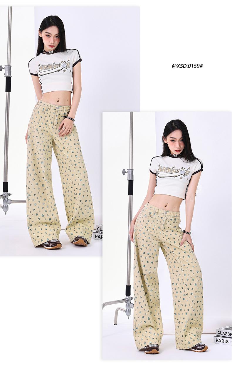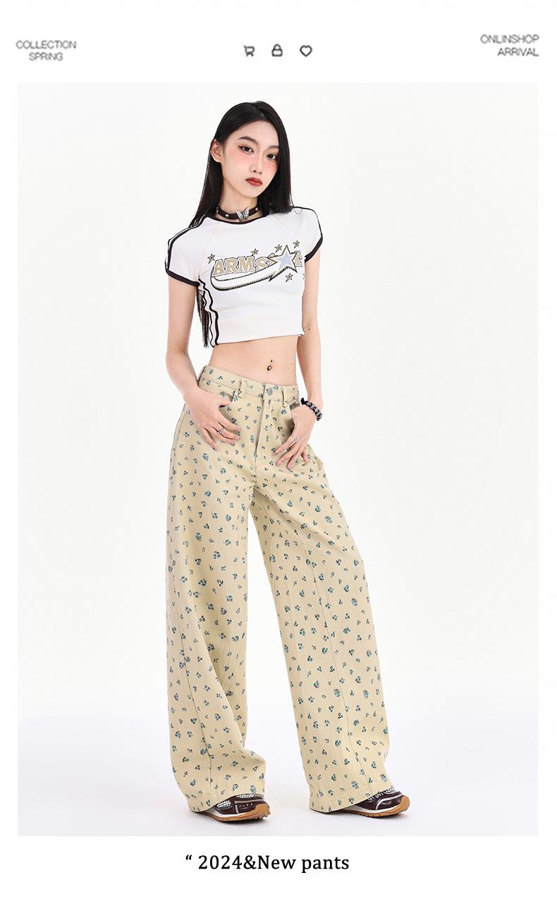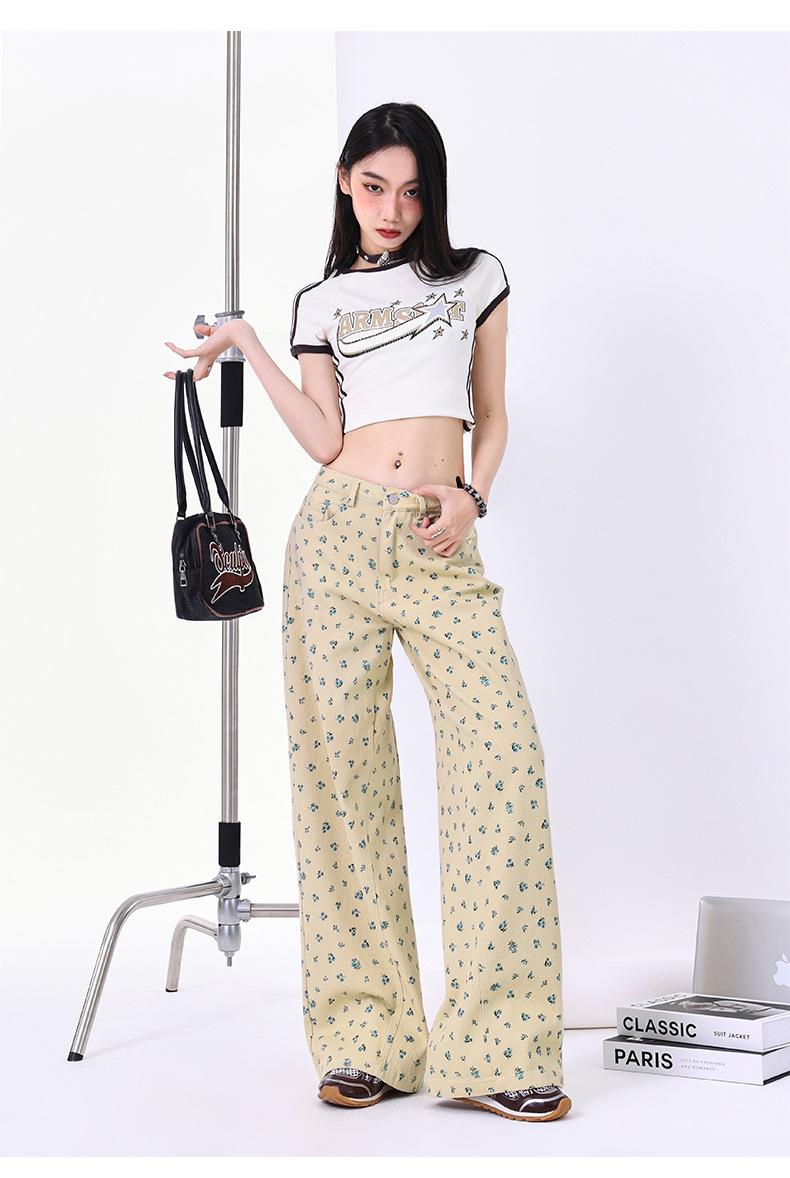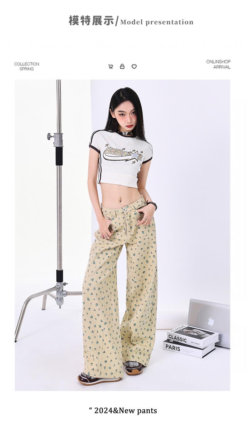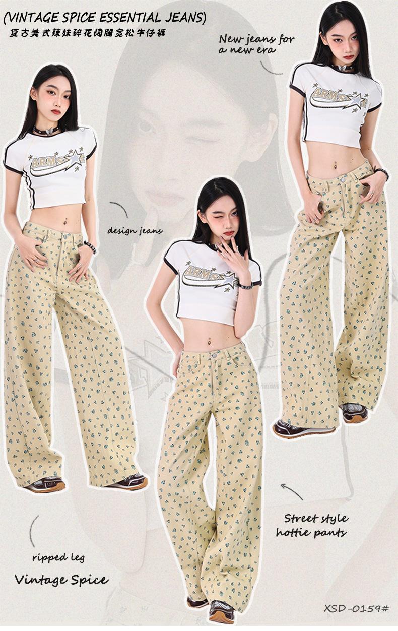 ¡25º cumpleaños! | jeans rectos florales frescos pequeños estilo retro Hong Kong para mujer, pantalones slim sueltos de pierna ancha