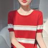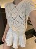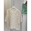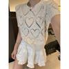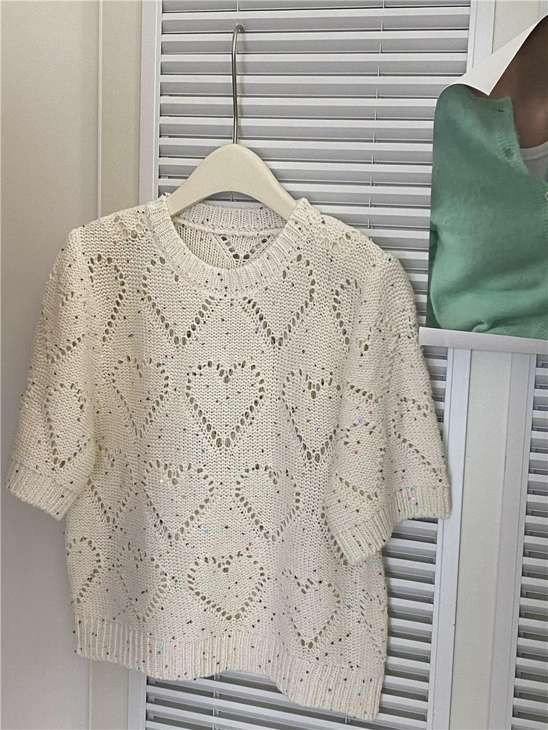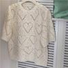 Camiseta de Mujer Nueva Primavera 2025 Coreana Cuello Redondo Amor Calado Manga Corta Suéter de Punto para Mujer Top Holgado Adelgazante