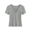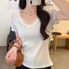 2511-2025 Nuevo Estilo Deseo Puro Casual Top de Cuello en V para Mujer, Europeo y Americano Sexy Adelgazante Encaje Camiseta Base