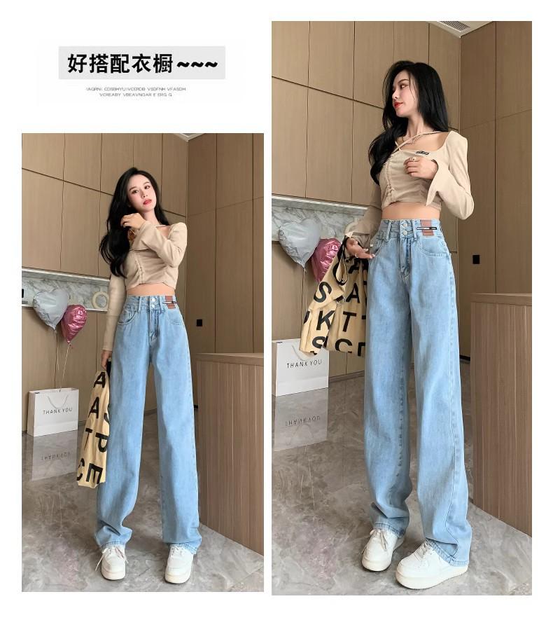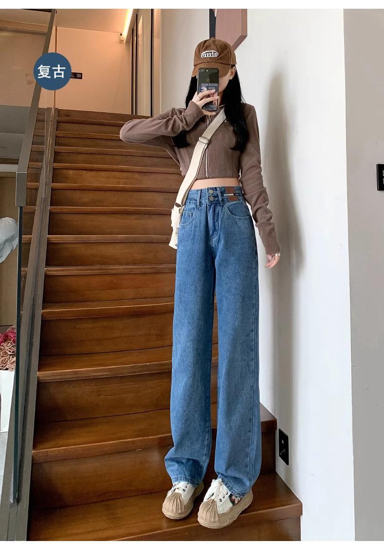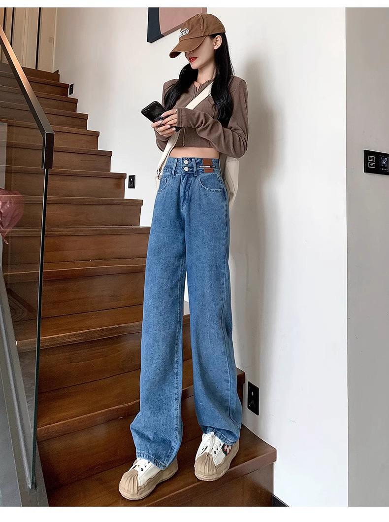 Jeans de pierna ancha negros y grises para mujer, verano holgados de cintura alta otoño 2025 nuevos petite slim rectos