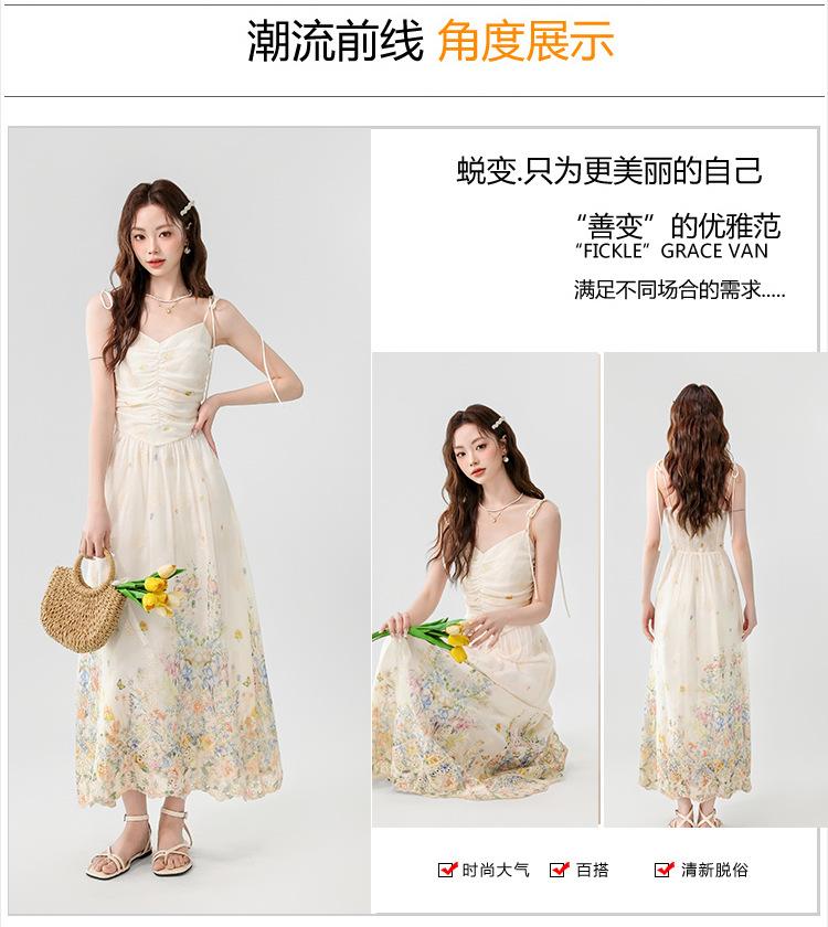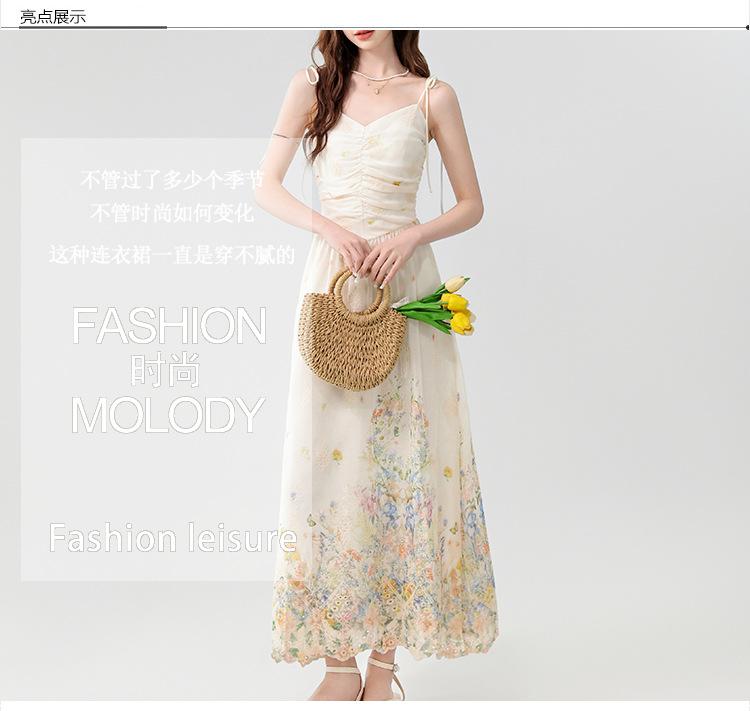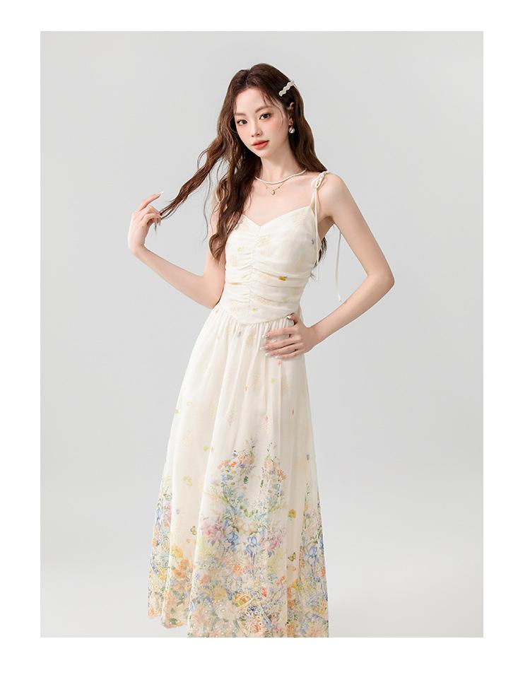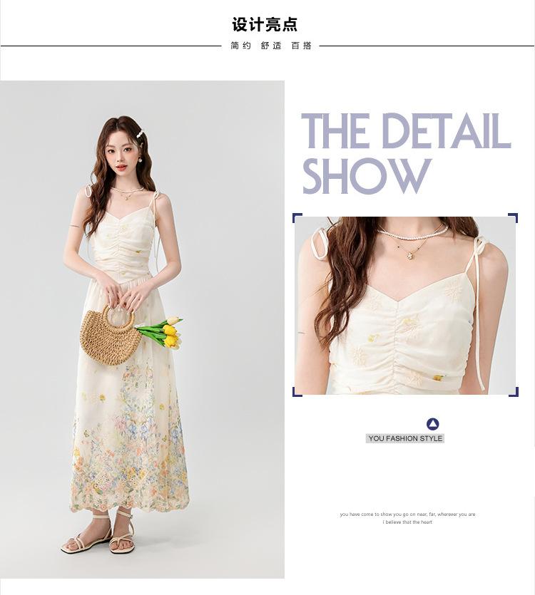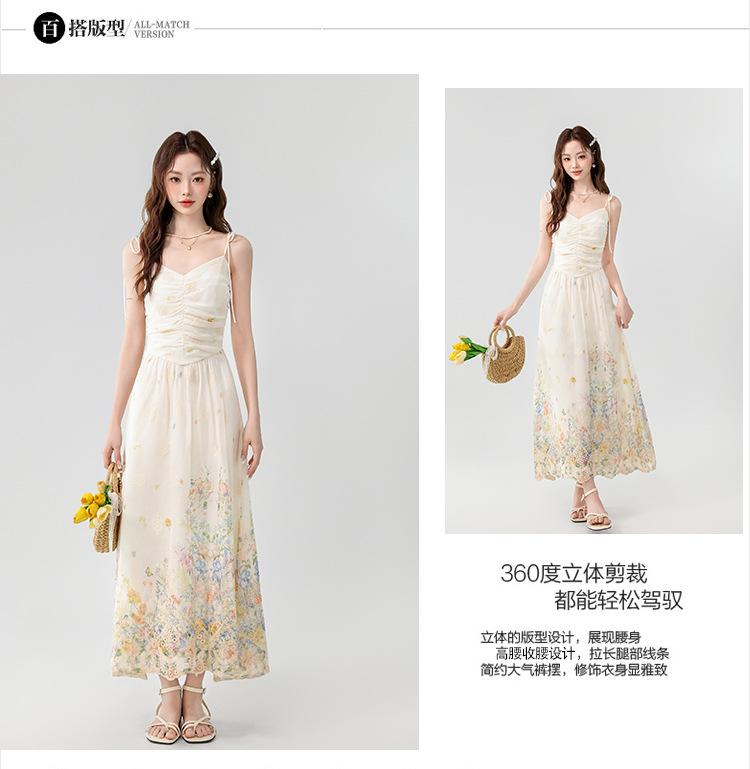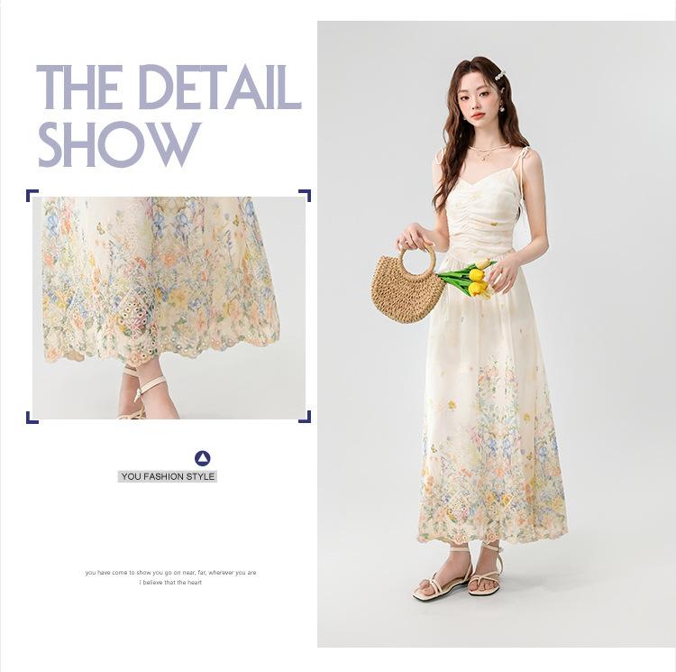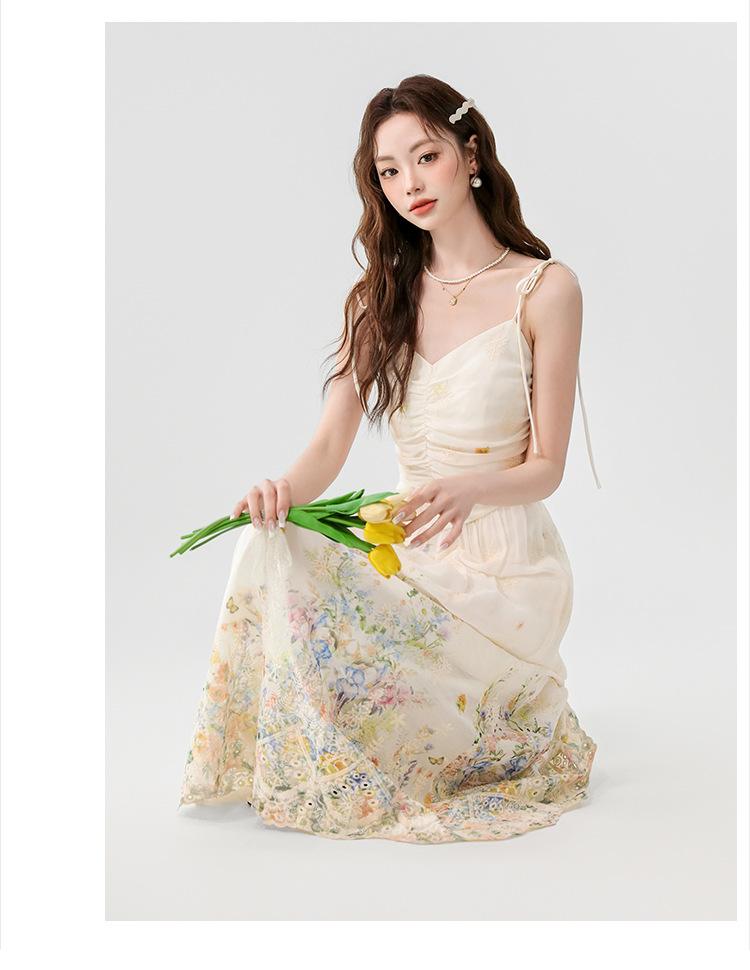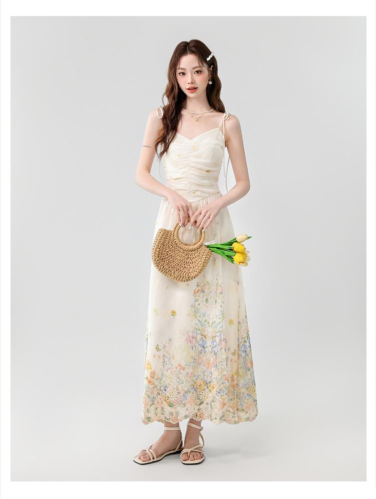Verano 2025 Nuevo Estilo Francés Romántico Cuello en V Bordado Pesado Estampado Ajustado Largo Tirantes Vestido de Hada