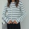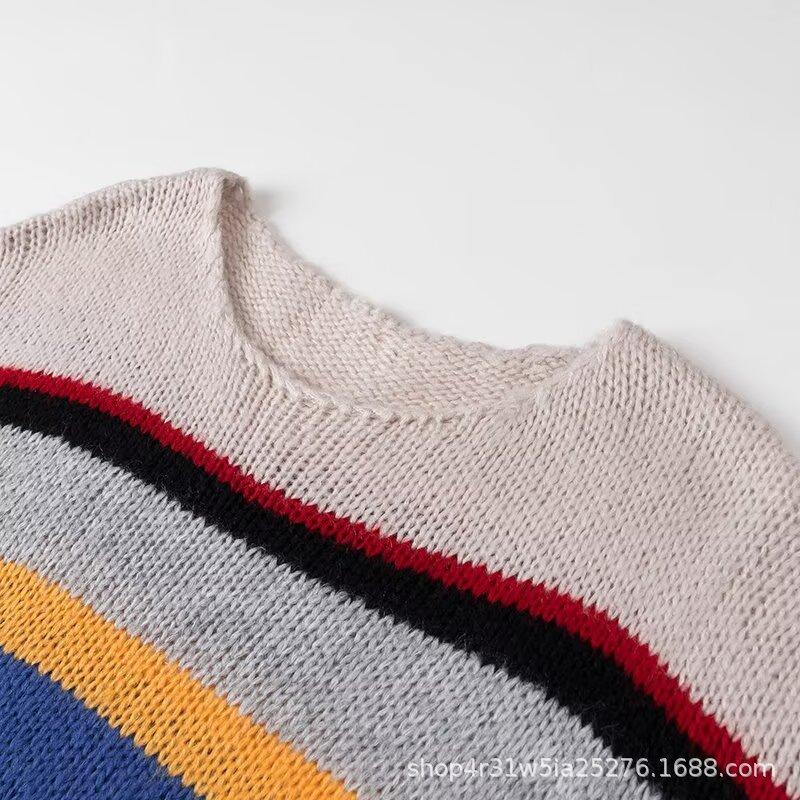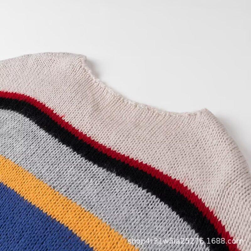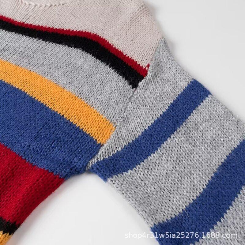Amazon Europeo y Americano Venta al por Mayor Transfronteriza 2024 Otoño e Invierno Nuevo Suéter Casual de Punto con Rayas en Contraste Holgado de Cuello Redondo
