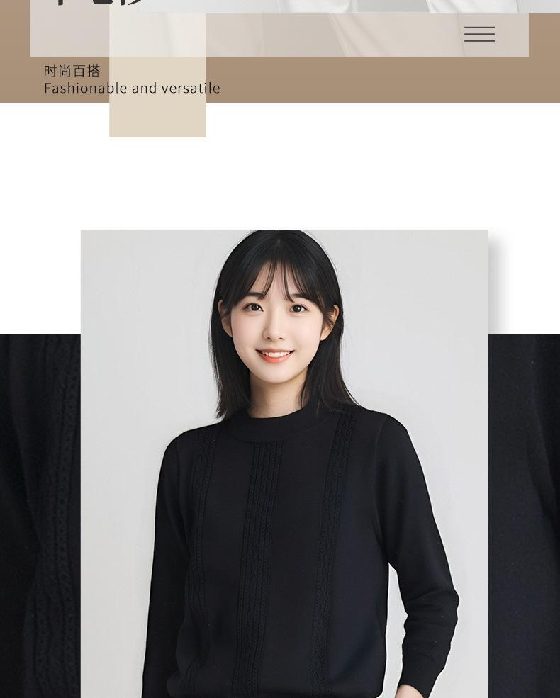 Suéter de Cuello Alto Medio de Otoño e Invierno 2024 de Lana Pura Color Puro Estilo Coreano Simple y a la Moda Nuevo Base Tejida de Cable Suave y Cerosa