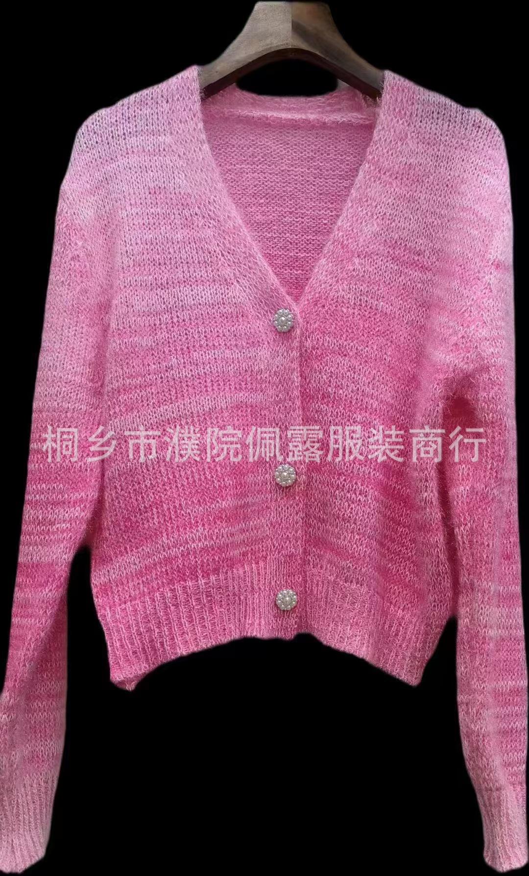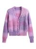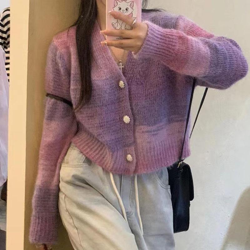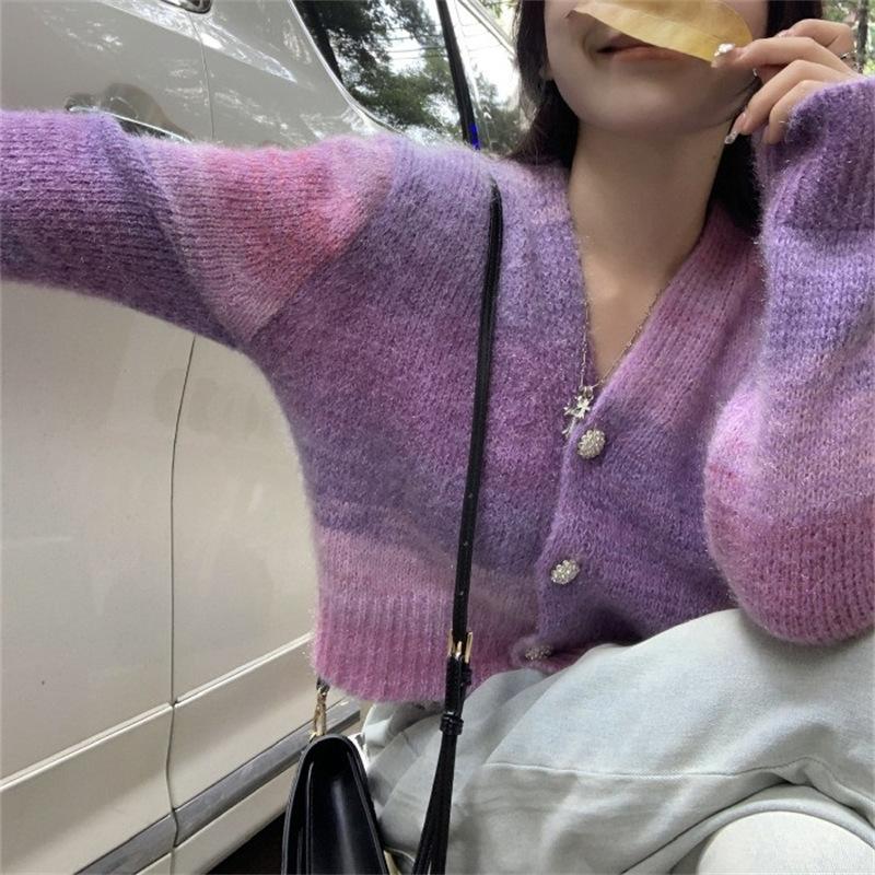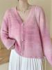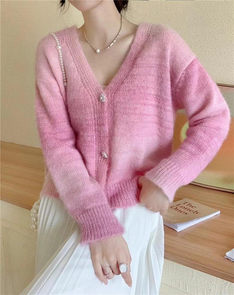 Prenda Exterior de Punto con Cuello en V de Color Degradado 2025 Primavera y Otoño Nuevo Estilo Único y Chic Chaqueta de Punto Suave y Ceroso Holgada Trendy