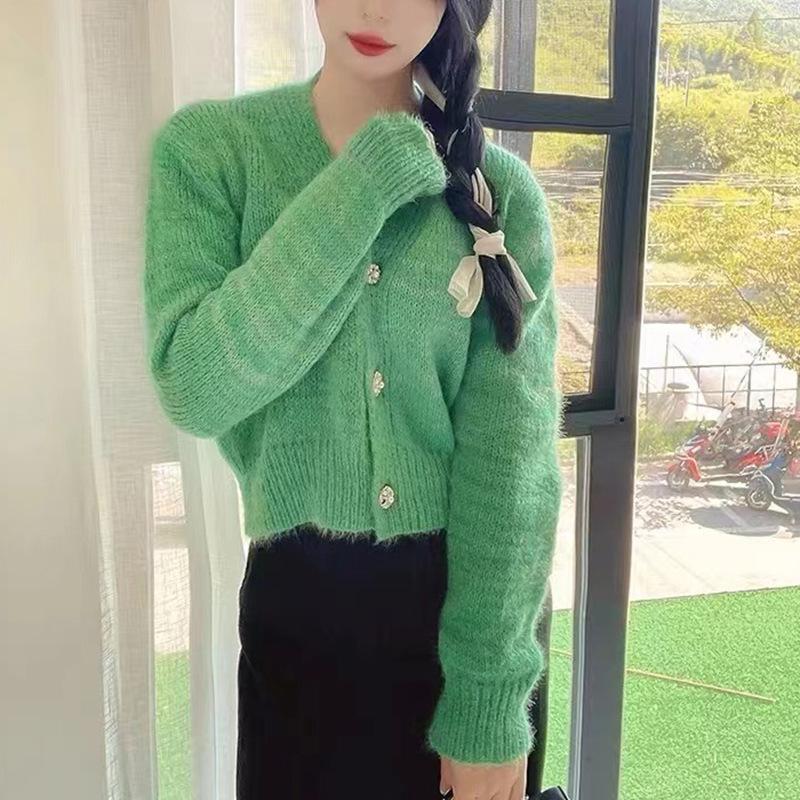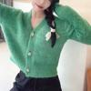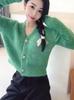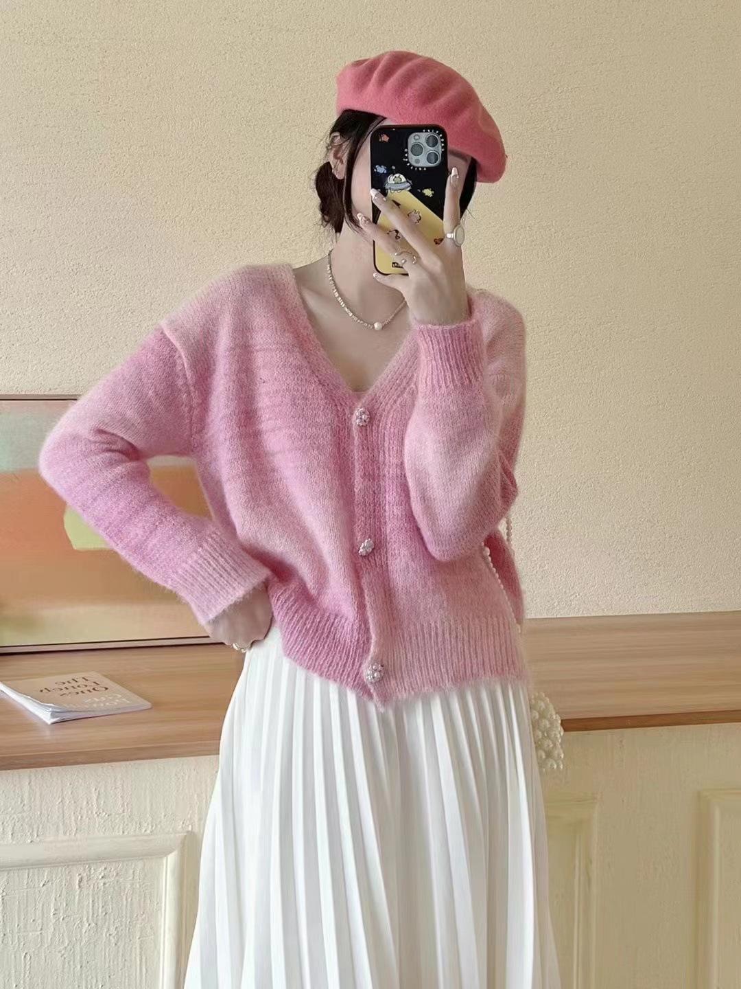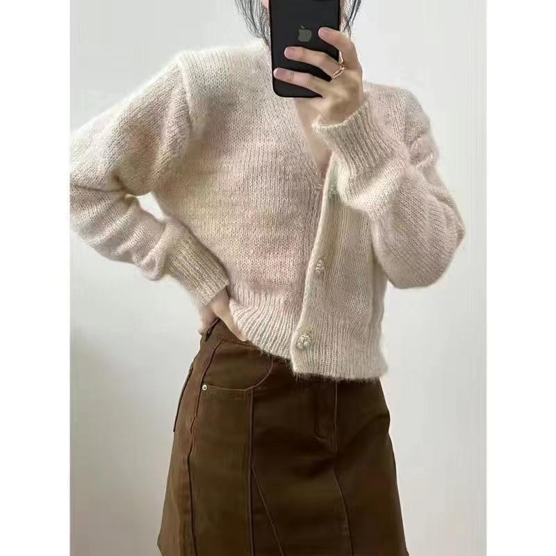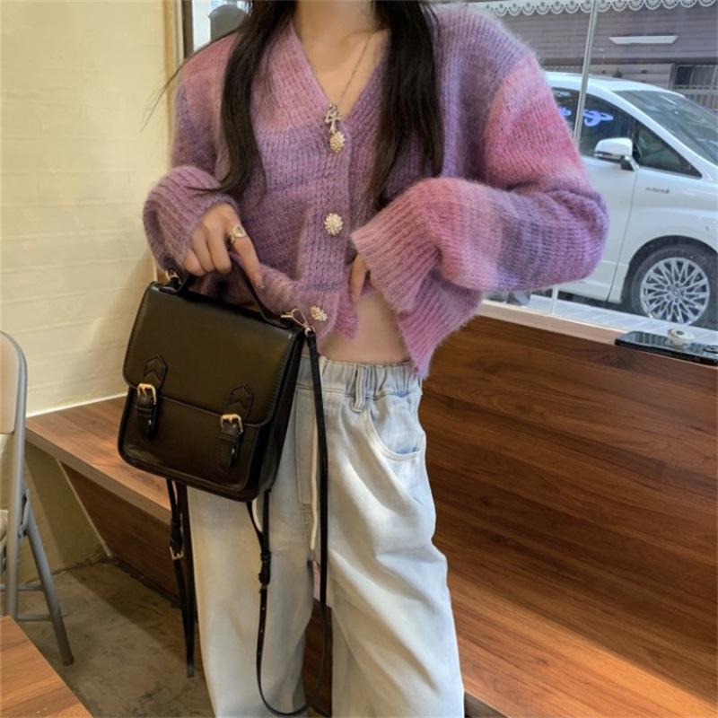 Prenda Exterior de Punto con Cuello en V de Color Degradado 2025 Primavera y Otoño Nuevo Estilo Único y Chic Chaqueta de Punto Suave y Ceroso Holgada Trendy