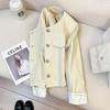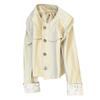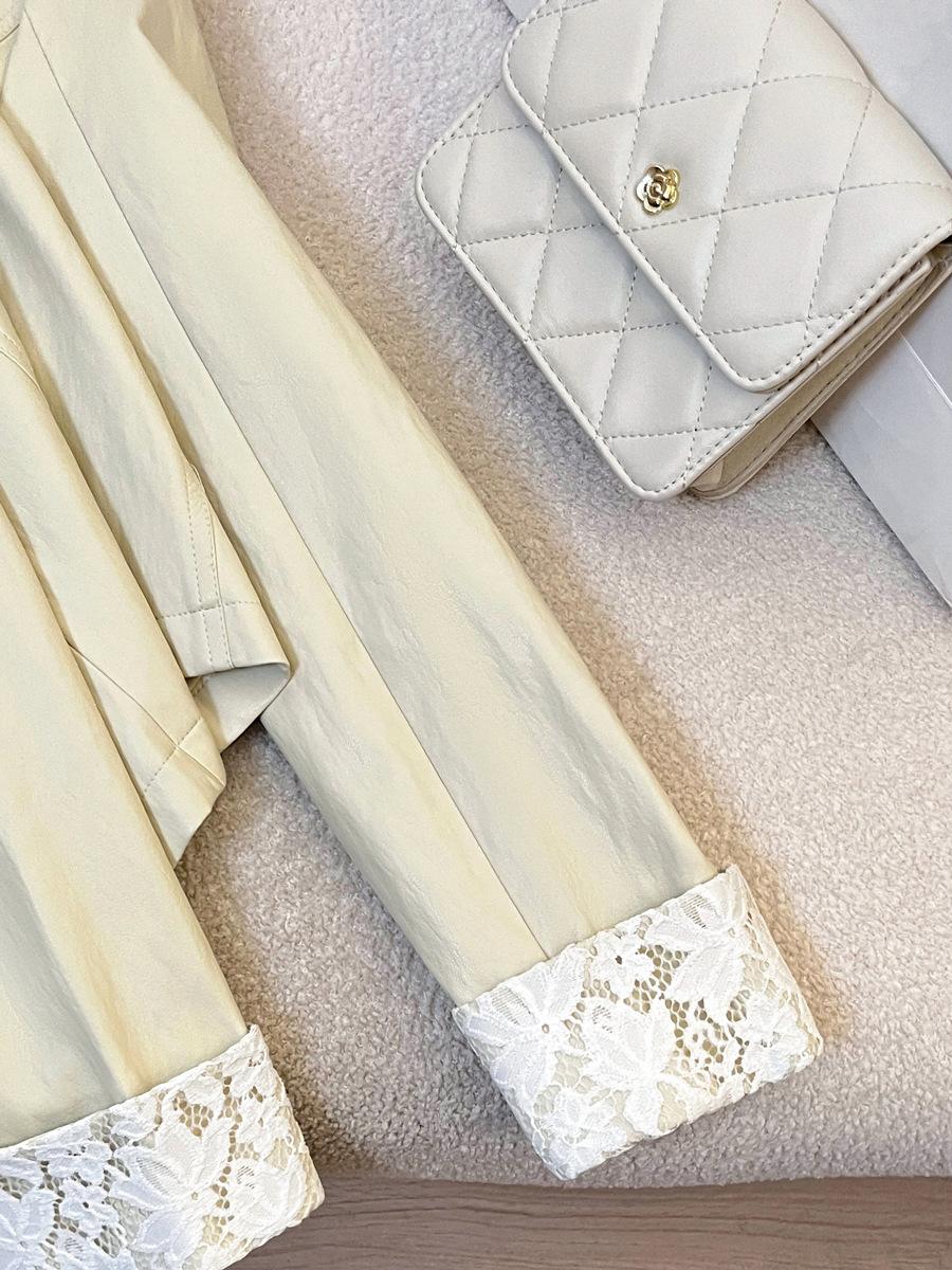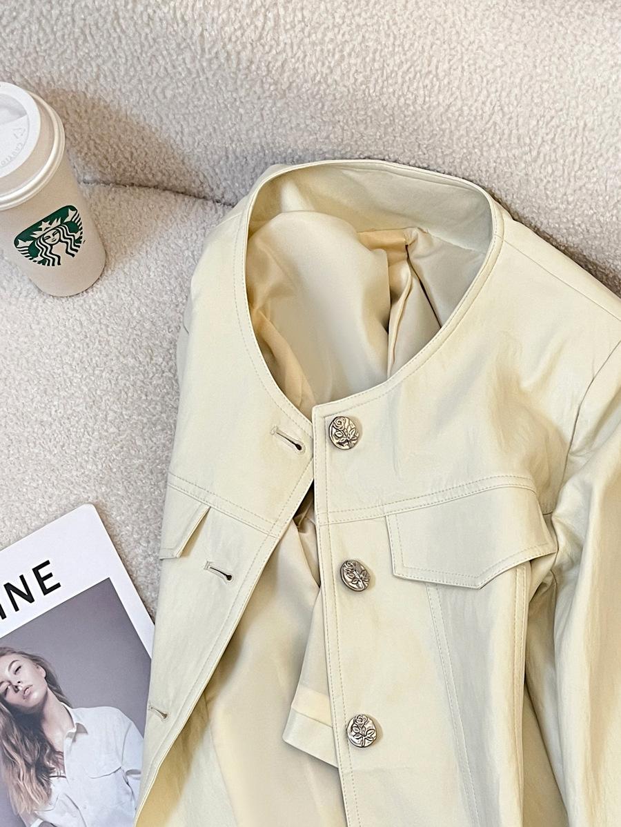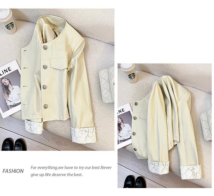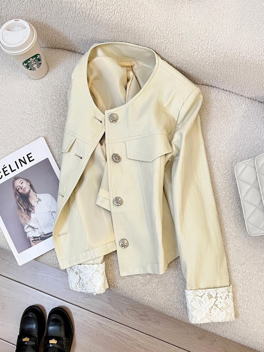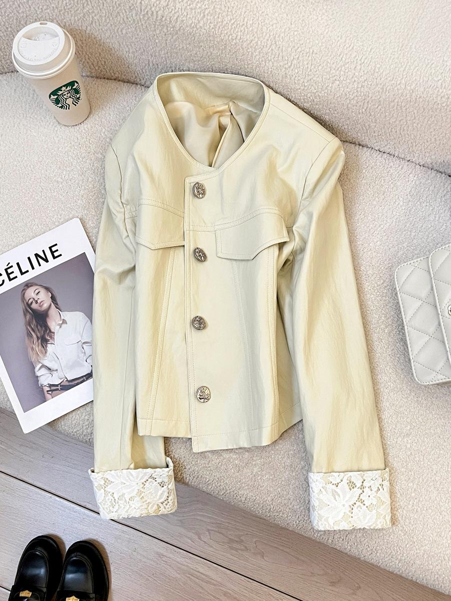 Chaqueta de Cuero Amarillo para Mujer Senior Goddess Fan 2025 Primavera Nuevo Diseño de Costuras de Encaje Elegante Chaqueta de PU
