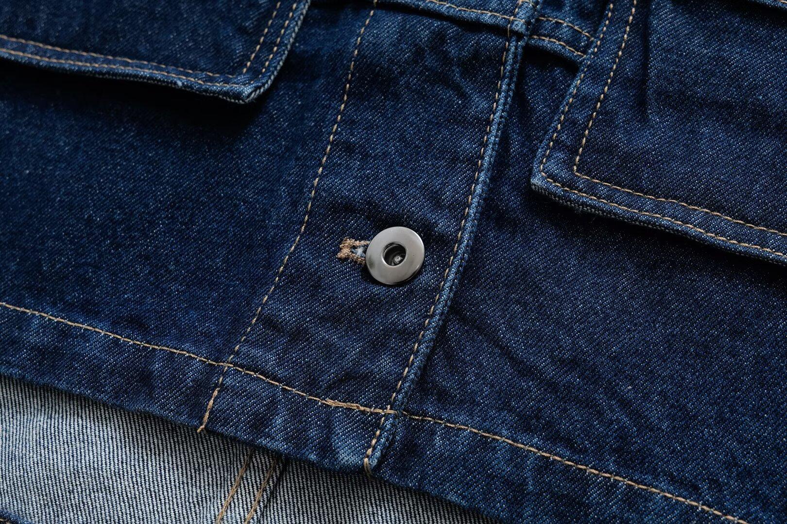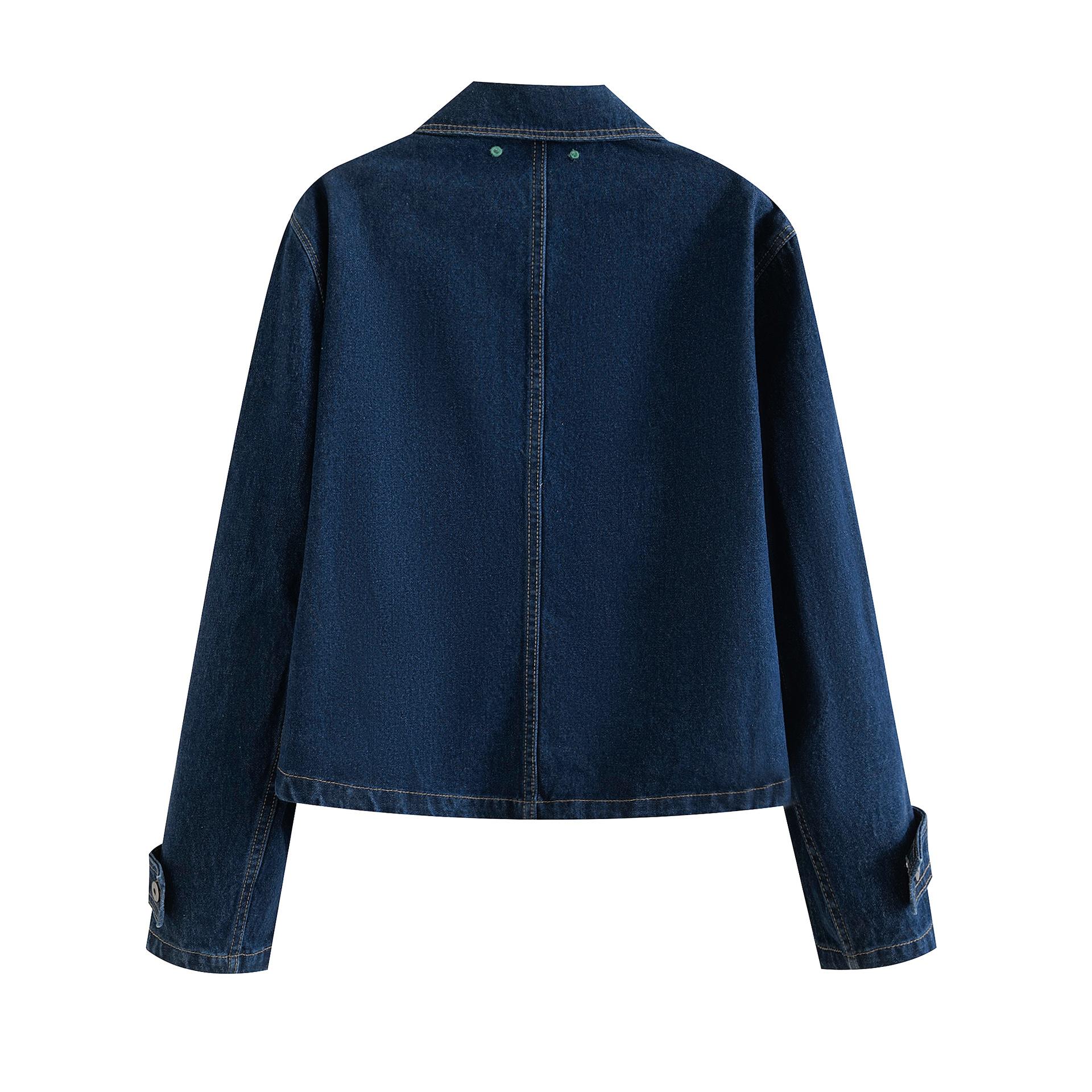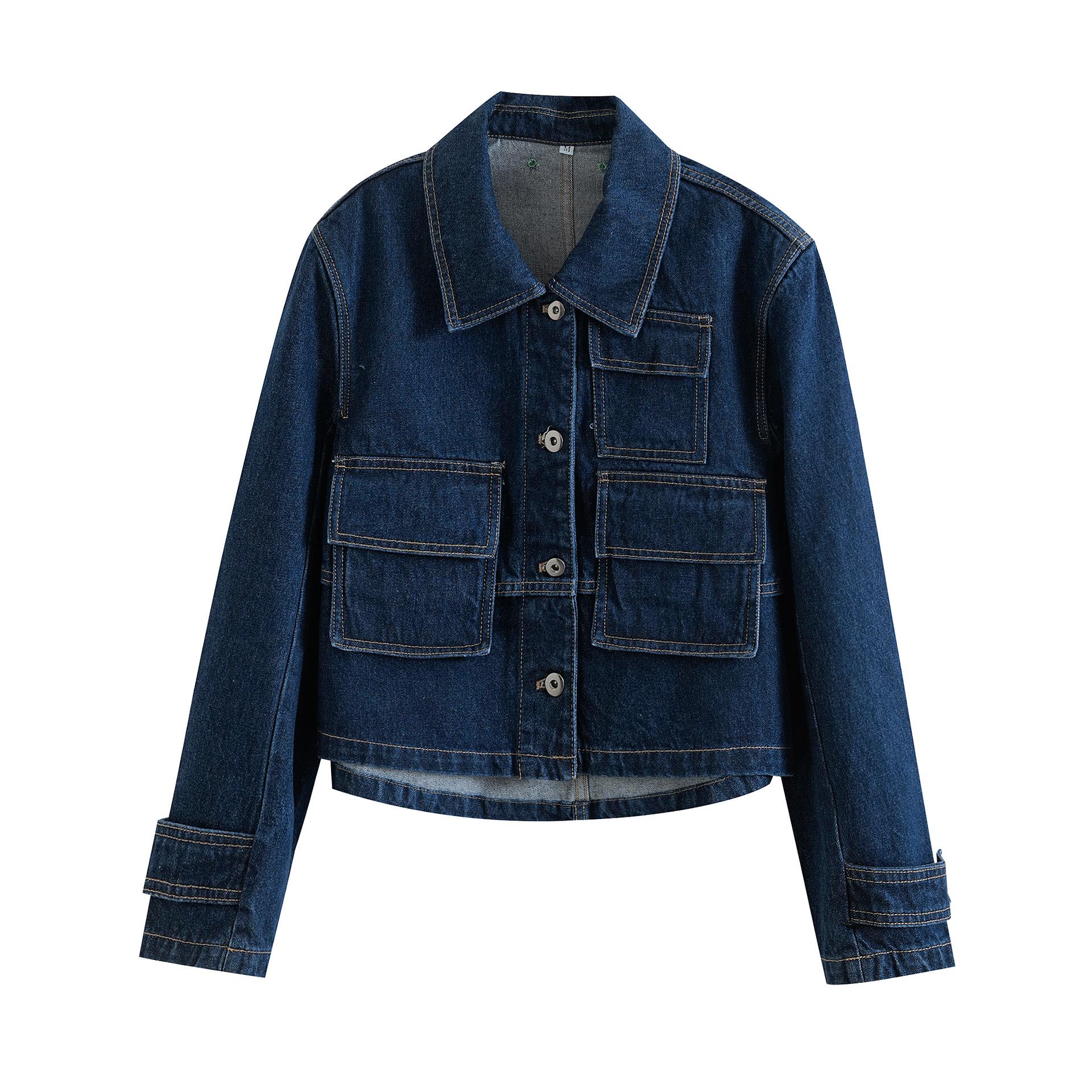 5002-Estilo Europeo y Americano 2025 Nuevo Sexy Pantalones con Bolsillo de Solapa Chaqueta de Mezclilla Solapa para Mujer Holgado Top Casual